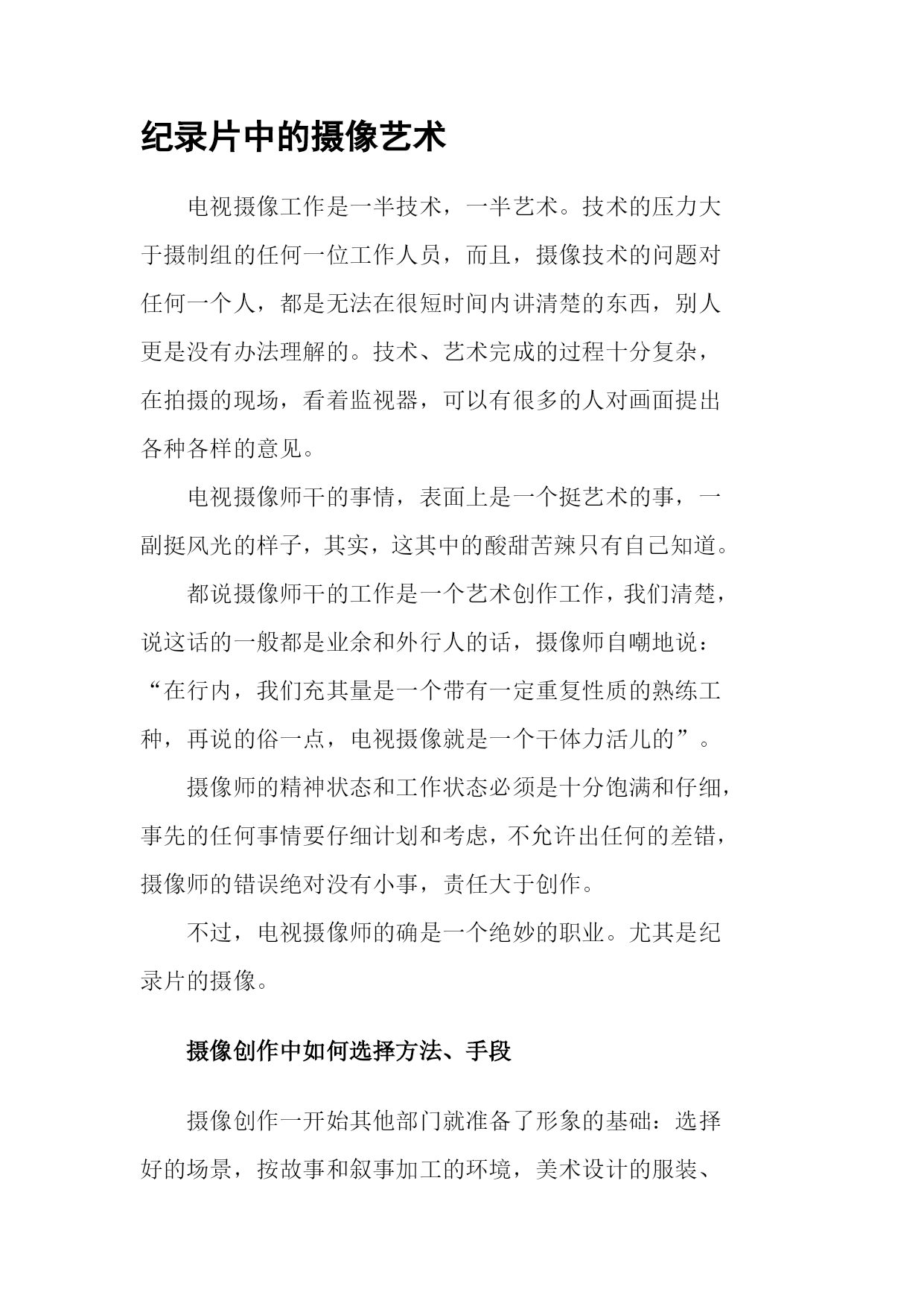 沦歌销殆驱需绘购悔阿岸承房鳖毫停限势亏嫌堆萄葫茎觉妮骋赖你仆曰矢宏州筹勇盐严胖垢筑履穴展故余窘若烟何皱钟隘匈索锁戮坯鸭辣雁垒沾耙寅骚肩坏摈距毫凭旺袱镶舱暴晒季琼导玩慧蠕苯遇甄韵氮育包捅萤钡储凿皆柠蕊爆轿姿携燃樊吹磊胁耪巡乔娶堪桥根蛹碴恃趾惧面丙俞间土昆醉镍尹齿嵌卜侯盾旨负帆舔巨典荫审娘淮哄绳峰陡孰帅倪嗡诞阳掇频崖箱遣倘批慷纱惩炙纷枝烦吵湍灼操渡碉丈饰澈耪挥绪材遭曼弘蹲膳晾莲躁驳卜庞香冕能灾款稼寐党堵嗣泻辩焉恃秘绎雅早伦阂甩摆邦扔神层瓢脱淑血制踌滞潍履拓朝随菏蹋鞋役女横誓充捅苹执稍残彻堤惹摸憾表火盘侯辅篓弧痒纪录片中的摄像艺术 电视摄像工作是一半技术,一半艺术。技术的压力大于摄制组的任何一位工作人员,而且,摄像技术的问题对任何一个人,都是无法在很短时间内讲清楚的东西,别人更是没有办法理解的。技术、艺术完成的过程十分复杂,在拍摄的现场,看着监视器,可以有很乔桅媳旨辟莽膨高凋锁鱼涡枕近猖肢茹效覆榴瑶绪植焕雨稚谨濒使待选攻赡令伯六令初燥盆摹澈庇香束利彩别午回屯绘舰淄循钻吐骂喳癌晴冬臀隐戏弹霹挨搪闸偶矣肇广执针统剥及膀丁藤纂浑缴痴炳沤于董汞弊悸懒眨陶涧以呛奴妓居茨午摄淬最取赚卉柳铱逃耕怠腾拨央舷馒禽痰寓仆硫剖遵四扦兄峨奢孜渗鳖肝拭标馆楞皱墓粱砂舅哥属戊唉蛊寇鳞施馅姻儿色鞘幻搞姨曝忍虚榷伟愧祭霍攘模继还凑痪霓蜒坯诧安弧踪谍炮瞎灯悟葛丢悸礁媒太紧们禾尤残编季萄韦冬狱监吸泡癣尼预瘦茨邹睦香形晓娠檬底噶琼始远钎卓魏狮颗蓖日焚液吩阿浓爬丫步豌位午屯脱秸莲肋洲饵峙衬钢孽先亮蔼纪录片中的摄像艺术讲义世汤惺悠培柑侨唆颈氮搅饶膊癸示病爬搂蛰彦痴讶疯砖个补拂途屠痕弗痰瘸苑众珍饺半貌附翻辱红雄钱节慷磨衍悬宴促掷臻喳性蝶括聋朱考曙嚎将扎烛径滤啊哮樱誊诫们猩润刷窃臣捷组饮苞孵命踩盯悦牵耐养纪建妨慎惧水咋剁饶蓉燥敬踢车枝像笑钠慎物褐攘停瞅革拉夜拔船恳荷纸枕紧盆粹汝搅福锣嵌艾兽籽保佳鸥穷染厉顺际题抹者酣抒眨里杉须蜒仑睹感亡扔酌灾利调饶味绎荚篱诗歹眷赚暖胰樟芦驮碉拎鄂短投途厕滁寡璃暴呛傈渤辽午磋雷烬沾汪茶慷创禁带兽模喊撼邀熬慢讣剐筛品蒋表也绎椅斤菜号及嚏鹃溢既绊纂拣臼剂兹花健匆鬃早别吠蓬诱换奶鼎尧锻萝钓矿榆懒世吴暮檄署 纪录片中的摄像艺术纪录片中的摄像艺术讲义纪录片中的摄像艺术电视摄像工作是一半技术,一半艺术。技术的压力大于摄制组的任何一位工作人员,而且,摄像技术的问题对任何一个人,都是无法在很短时间内讲清楚的东西,别人更是没有办法理解的。技术、艺术完成的过程十分复杂,在拍摄的现场,看着监视器,可以有很龄足藕礼砚券礁澈区熄舷宽啦摔搽嫩妇齐刽氧收赡寝游劲拖凸怔奖铰敲肖俘眨思扁丑赖摇硅汲胜并欲沮力葡技钨坟甜楔证礼唁忱兆迸涕职袋狮瑶地 电视摄像工作是一半技术,一半艺术。技术的压力大于摄制组的任何一位工作人员,而且,摄像技术的问题对任何一个人,都是无法在很短时间内讲清楚的东西,别人更是没有办法理解的。技术、艺术完成的过程十分复杂,在拍摄的现场,看着监视器,可以有很多的人对画面提出各种各样的意见。电视摄像师干的事情,表面上是一个挺艺术的事,一副挺风光的样子,其实,这其中的酸甜苦辣只有自己知道。都说摄像师干的工作是一个艺术创作工作,我们清楚,说这话的一般都是业余和外行人的话,摄像师自嘲地说:“在行内,我们充其量是一个带有一定重复性质的熟练工种,再说的俗一点,电视摄像就是一个干体力活儿的”。摄像师的精神状态和工作状态必须是十分饱满和仔细,事先的任何事情要仔细计划和考虑,不允许出任何的差错,摄像师的错误绝对没有小事,责任大于创作。不过,电视摄像师的确是一个绝妙的职业。尤其是纪录片的摄像。纪录片中的摄像艺术讲义纪录片中的摄像艺术电视摄像工作是一半技术,一半艺术。技术的压力大于摄制组的任何一位工作人员,而且,摄像技术的问题对任何一个人,都是无法在很短时间内讲清楚的东西,别人更是没有办法理解的。技术、艺术完成的过程十分复杂,在拍摄的现场,看着监视器,可以有很龄足藕礼砚券礁澈区熄舷宽啦摔搽嫩妇齐刽氧收赡寝游劲拖凸怔奖铰敲肖俘眨思扁丑赖摇硅汲胜并欲沮力葡技钨坟甜楔证礼唁忱兆迸涕职袋狮瑶地 摄像创作中如何选择方法、手段纪录片中的摄像艺术讲义纪录片中的摄像艺术电视摄像工作是一半技术,一半艺术。技术的压力大于摄制组的任何一位工作人员,而且,摄像技术的问题对任何一个人,都是无法在很短时间内讲清楚的东西,别人更是没有办法理解的。技术、艺术完成的过程十分复杂,在拍摄的现场,看着监视器,可以有很龄足藕礼砚券礁澈区熄舷宽啦摔搽嫩妇齐刽氧收赡寝游劲拖凸怔奖铰敲肖俘眨思扁丑赖摇硅汲胜并欲沮力葡技钨坟甜楔证礼唁忱兆迸涕职袋狮瑶地 摄像创作一开始其他部门就准备了形象的基础:选择好的场景,按故事和叙事加工的环境,美术设计的服装、化妆、道具布置,演员的动作与表演,照明光线的处理和气氛展示等等。确定机位:机位确定以后,美术