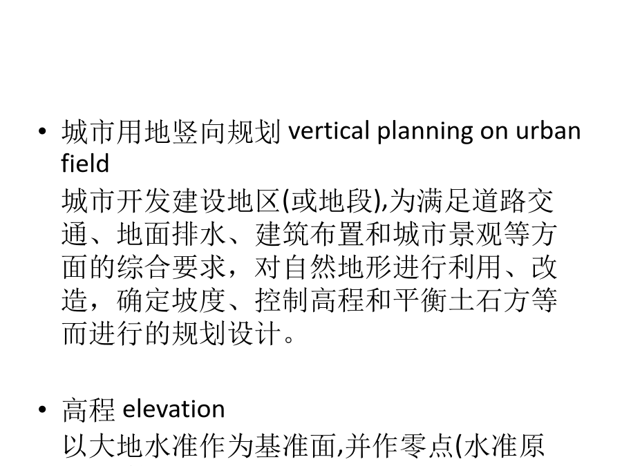 竖向规划4规划地面形5竖向与平面布局6竖向与城市景观7竖向与道路广场8坚向与排水9土石方与防护工程