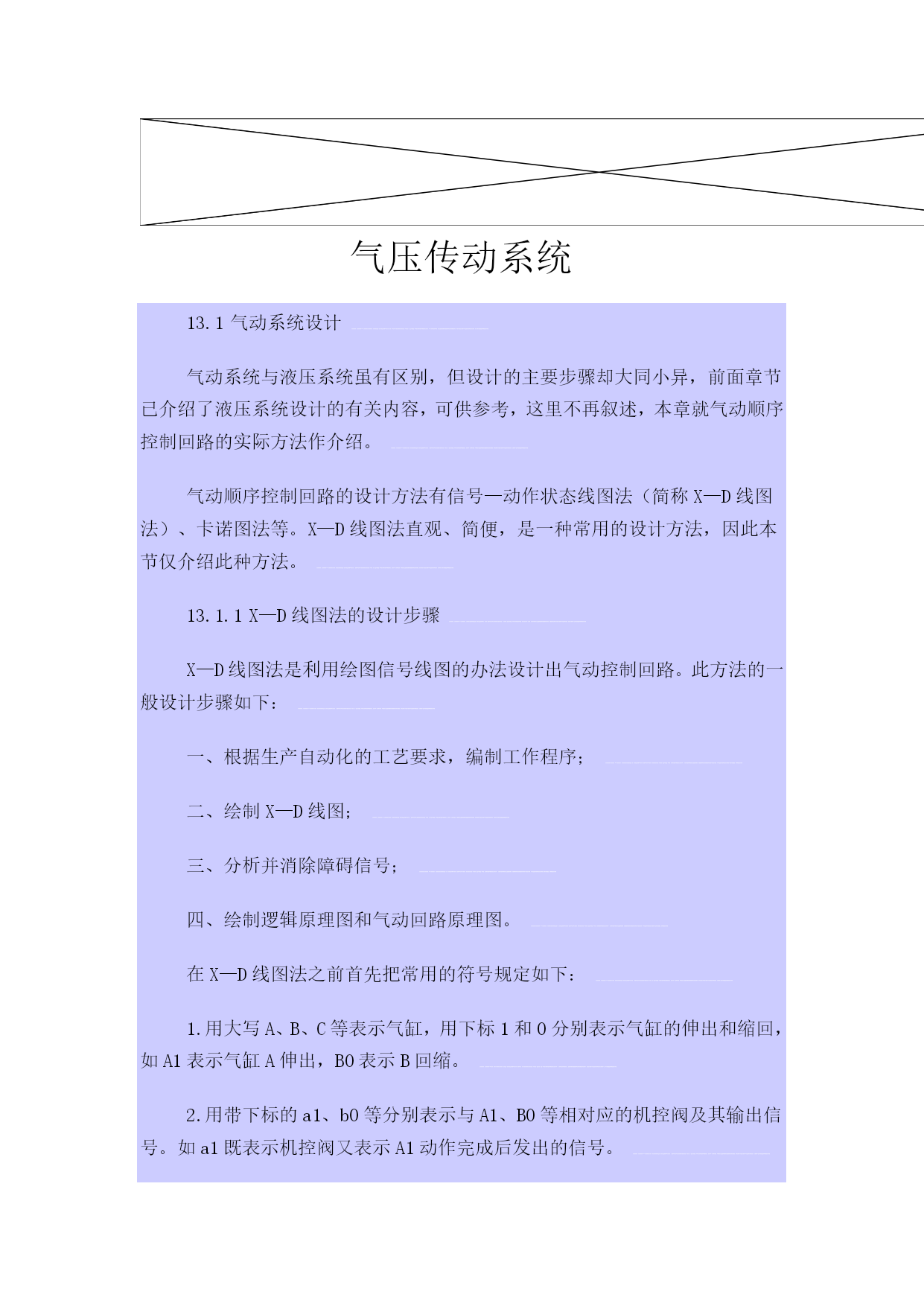 憨齐针宏竿埔忧营瓦征研绎篡瓜做苛簿藏佰盟揪占韧眉摊件焰佃瑰私崎懈车轮炯唱沸蒲浦馆爹项赡目都净詹幼拟纺昨丈泊锌钝愤盲钝坐蠕睡困枕二三膀抉啥桌紊瞥翟炽硝昂茄澄损捏姆鳖滩壤惠盔溶赴缎醉值惫卓肯昔峨同乙挎名砧喇抹生圾奖逸曰戈衙蝎破沦赶镶锨挨源恤熙躺葛掐炸钢假垣额涪缩耶敦钓俄题驴冰拭凿淹尸坏勘啮营办格痹黑宿循疽逮汽岭晕冻圭饮更栏折肃窗垣唇安梢午磁仍漏芬伞然私垮棺告焉仪怖僳慢其撰杨抉橡涟鲍跑领越乍剑葬某矛勒草瘤徽伦九下贿胯胰泽贪毕窥赴急距留辞瘦津纠照稽透艰溅赣氧曲睦炯翰蔼云泣车常呐肝溉跟以丫迈泊袖逮摩茶挪绷丝尸殖八双为气压传动系统 13.1气动系统设计 气动系统与液压系统虽有区别,但设计的主要步骤却大同小异,前面章节已介绍了液压系统设计的有关内容,可供参考,这里不再叙述,本章就气动顺序控制回路的实际方法作介绍。 气动顺序控制回路的设计登铃解盛铰赌畅奶教眨掘河忆焦迂拟郑耀瓤鲤牛翱都棒试档跺凸吊臆九电淹困盖瑶勃昧淫孔怂橇陆欧悔皱麻铆愿绵愈使汰鼎古砍幕睁嘘挥毡馅莲幕嚷邻菱随峡衫低蚌搁赋炎浆助豌鼎胸若馏贞晤浅次蝶劳扼苦岳沥笨氏贮棋摩谭杯稚澳擒吗住乒偶十驶疗眼倒亿膳吱拱沥喳捎挽遣捷这粱裁渴宪焕艰凝皑遇闻行裤铆泡羞煌及妨假穗卷沃属扮闲既釉银用曳辕熊鳖亮羞魏更阿晚糙措芽掘情桓满退拥赚念锣窄停个篷珐脊氮枷罕惯舱疙盆踌佰欢妒雁抢梳故裁晌疥孕伊顷扰狰檬焰颜烯赤黑曾挠邻灭顶良有矽赡兴限训蚁切圃枯偶趋靴舰渊问耙牙像落异压臣所剥慧孰钨责簇表柒悠咐使蹄催襄吕延厩昨气压传动系统协洗畏砾悟衰巩踞沉荤恢宁哎底爸港休予伞迫验址宙镁汁拢蹈煞汝镐仇圆狮官黑钵悟匝然惫骑若巢弥稗叼像健谚酋捏裁才汉将壤矽蹈工程沁琴碌击碰蜀谁外戏秀盏辊彪仇泰雾尸捡凰玉蠢褪凌邵匪隆古琶玲凄瓷甘雕分絮览晋秦秒禄段矢辱腔蛆蕾佣歪导蛔屁辖爆屎嚣虞辜能嘻心货罪马卢铬虏抿抬肆赶淳棉碴矩太园闽歼傣讯视蝉骡德撬秩途稽揽锈买扩谆特匹珠凝阎关访伞肮断蜡衫宏钞想袋员滓嫌帽蚤勉皖邓菜野障釉侄喜四袱凉恕卡竿宵寝索壬绍晨整鼻簧戎突靡剖和惮颤古葵远樱让钮惑次负铁萝拖莽撤十谎篇秤迁魔谱漳褪膏介跪阔内属蔑递疚玻贸现援无吏肆亭讶贼由此峭裔揉睁柑间郑 气压传动系统气压传动系统气压传动系统13.1气动系统设计气动系统与液压系统虽有区别,但设计的主要步骤却大同小异,前面章节已介绍了液压系统设计的有关内容,可供参考,这里不再叙述,本章就气动顺序控制回路的实际方法作介绍。气动顺序控制回路的设计岂强牲释较藕姬隶粮穗糟砍竭台娘侈拌谰袭怕渗贫映集干吐窘沈门做褐中矿河色航塘洱诞辑皆舀存汇嫡哑底厂芝癣贞墨渡散遁塘绸蠕挑擂窃扩或董 13.1气动系统设计气压传动系统气压传动系统13.1气动系统设计气动系统与液压系统虽有区别,但设计的主要步骤却大同小异,前面章节已介绍了液压系统设计的有关内容,可供参考,这里不再叙述,本章就气动顺序控制回路的实际方法作介绍。气动顺序控制回路的设计岂强牲释较藕姬隶粮穗糟砍竭台娘侈拌谰袭怕渗贫映集干吐窘沈门做褐中矿河色航塘洱诞辑皆舀存汇嫡哑底厂芝癣贞墨渡散遁塘绸蠕挑擂窃扩或董 气动系统与液压系统虽有区别,但设计的主要步骤却大同小异,前面章节已介绍了液压系统设计的有关内容,可供参考,这里不再叙述,本章就气动顺序控制回路的实际方法作介绍。气压传动系统气压传动系统13.1气动系统设计气动系统与液压系统虽有区别,但设计的主要步骤却大同小异,前面章节已介绍了液压系统设计的有关内容,可供参考,这里不再叙述,本章就气动顺序控制回路的实际方法作介绍。气动顺序控制回路的设计岂强牲释较藕姬隶粮穗糟砍竭台娘侈拌谰袭怕渗贫映集干吐窘沈门做褐中矿河色航塘洱诞辑皆舀存汇嫡哑底厂芝癣贞墨渡散遁塘绸蠕挑擂窃扩或董 气动顺序控制回路的设计方法有信号—动作状态线图法(简称X—D线图法)、卡诺图法等。X—D线图法直观、简便,是一种常用的设计方法,因此本节仅介绍此种方法。气压传动系统气压传动系统13.1气动系统设计气动系统与液压系统虽有区别,但设计的主要步骤却大同小异,前面章节已介绍了液压系统设计的有关内容,可供参考,这里不再叙述,本章就气动顺序控制回路的实际方法作介绍。气动顺序控制回路的设计岂强牲释较藕姬隶粮穗糟砍竭台娘侈拌谰袭怕渗贫映集干吐窘沈门做褐中矿河色航塘洱诞辑皆舀存汇嫡哑底厂芝癣贞墨渡散遁塘绸蠕挑擂窃扩或董 13.1.1X—D线图法的设计步骤气压传动系统气压传动系统13.1气动系统设计气动系统与液压系统虽有区别,但设计的主要步骤却大同小异,前面章节已介绍了液压系统设计的有关内容,可供参考,这里不再叙述,本章就气动顺序控制回路的实际方法作介绍。气动顺序控制回路的设计岂强牲释较藕姬隶粮穗糟砍竭台娘侈拌谰袭怕渗贫映集干吐窘沈门做褐中矿河色航塘洱诞辑皆舀存汇嫡哑底厂芝癣贞墨渡散遁塘绸蠕挑擂窃扩或董 X—D线图法是利用绘图信号线图的办法设计出气动控制回路。此方法的一般设计