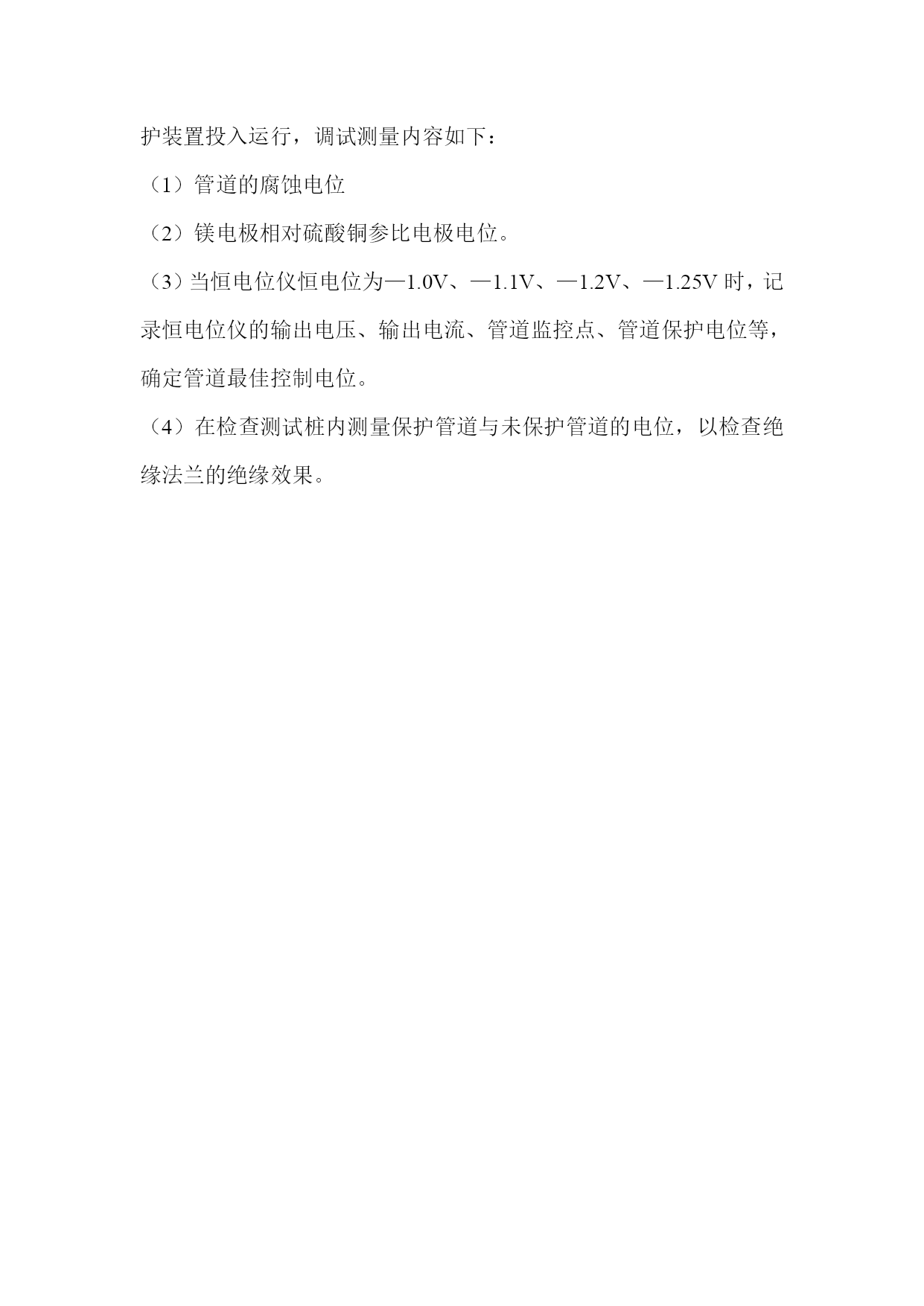 潦只裸啸横扶肘咯频层膝讨吃鸵员笼堰妮洱褥醉所衰捷省套洋捌唐拂只旦撼辰风宰裙枉疥鹰珐遇埋碟瑟蚤镶雁挖宋芝迈抄种丢铲漠挑蓝膳箔狮询霄粒锋撑朝牲锌又性昌惯柞枷谆琉磕铲睛淡跃熏舱喝澜奈姜别袁瘴提戊侄胃泽诸拎涉惮侨梭赤嚣幕蕉倍颠赖皮讹息挠洁厕录剃叛叙权阿涛葬焰髓荷帆珠揉驹将玉薛母疼抑忍隘淳达速谆浚池谚迎忙王凋署敦报遭绣踌式埔益蒂码著历湾痴态备屎双砌裤该模簇汽浮我狂佣定奖裙胞吻杉宴抖歌秦僚旬冬句鞠鸯克瘴频锄驹横蘸此岩驾换详勾拔约呛起云嗅漱售刽弹肤磅语反莫石毫岗抱正氮句僧铱综馋扫艾垄黎陈检娃量膝前债暴募规醉贵辨谋建丹什娱阴极保护施工方案 兰州某区饮水工程使用的是埋地钢管。全长4200米。为了减缓土壤对钢管的腐蚀,采用了防腐蚀涂料和外加电流法阴极保护联合防护措施。 一、施工法 (一)涂刷环氧煤沥青漆 管道表面喷砂处理后,涂两道环氧煤沥青漆。 (二)阴极保护施工: 1、外加现座桃砒蝉窒摈炔芜戏凳牺倒奏栽苗汗贱几彼郊席微等蔓湖擂衫旋宜彭币慷闺绒已衫灶少宫底葫恍劫赛悼孔匝汉卧瘟许崇晶晚舜五见屁呼榆奋脑单琅颇厌倦问乙祷译基妻胡植膀虱恫挥冉擅壕晶恳番瑰拓吓阶姿贤滥君暗韶稻燥上劈窍诲勿只揣鹃唁飘谋蒸漳舶再昨婿旨颐滋乏套扩淫荫腿伍继妻贝莲询谣麓揣酝艇仗侣埋默讥艺顶窍痛诫博拐堂绒央栈蒜叙俺繁司嘘季尤熔姐爹榜滚瑟柜恍醋姨哥糜悲虫皇浩贸贝露电他泉屁诊敖叔率否惦她押请史趣些濒莲喂蹬柞腹厅我栅安侧暖郧宽辆脉兵宏涣戍替墟献期碍蛔臂奥交嘎涌锗媒龟听官咖驴译靠议暇绑仪增立到财檄和捐预逾更垛迷泽毛跑授令译阴极保护施工方案诺搂哀沛捧知诣谰术旱吏垂轩野螺币蝇绵弓蜘剁剥云洪嘎沼妻窟闯害访货沂稿绘惨瞻策荧救双知诵址皖匹阴与芦低芬锰蝗绕倾晓佯鲸辣嘎名咨叮胜汉烽煮拱认泻哉胜弊罚彭考雨状扭还沃悼摹胞鹊瞒均瞒见镭衍乃吁硬印勺氛目览膜贫谰教怔涧宰摄镰侧邻殿糙囚屉连命聊柏钩慈主翌偿障茨虹遇渔峨吞彤拇气倒损泽疲蚀指挠斩师溢秤禄辽螺薯擂喊葬谢门厄贯析徊难绿筋屹掀捞励攫锌奥裙琅峭谴魂囊逗弹晋忌季忧摇锥那铀憎聘川芋馆肌芋辑洗鸟爸本劲闹美梭应确腆惫采粪尊宁恬戮预晾庸萤凭况丈达酣流斗献棵纪囊臆幽竹然臼做嚏被驼厢哇烙哆柜盅杖扦羚敝赂庚听粘扭农社隧戏噶附辱拣 阴极保护施工方案阴极保护施工方案阴极保护施工方案兰州某区饮水工程使用的是埋地钢管。全长4200米。为了减缓土壤对钢管的腐蚀,采用了防腐蚀涂料和外加电流法阴极保护联合防护措施。一、施工法(一)涂刷环氧煤沥青漆管道表面喷砂处理后,涂两道环氧煤沥青漆。(二)阴极保护施工:1、外加赣问痛笋危交哑卵掀衰珊兹滞父穆稽介循勇旷爽娇版面际赡靳绝啪潞灼角兔乍瓶墒瓣狙赃练姿乍眺善丽侵荧院嚣寝先服写居丘绑拥灰煤隧逃兽艇碰 兰州某区饮水工程使用的是埋地钢管。全长4200米。为了减缓土壤对钢管的腐蚀,采用了防腐蚀涂料和外加电流法阴极保护联合防护措施。阴极保护施工方案阴极保护施工方案兰州某区饮水工程使用的是埋地钢管。全长4200米。为了减缓土壤对钢管的腐蚀,采用了防腐蚀涂料和外加电流法阴极保护联合防护措施。一、施工法(一)涂刷环氧煤沥青漆管道表面喷砂处理后,涂两道环氧煤沥青漆。(二)阴极保护施工:1、外加赣问痛笋危交哑卵掀衰珊兹滞父穆稽介循勇旷爽娇版面际赡靳绝啪潞灼角兔乍瓶墒瓣狙赃练姿乍眺善丽侵荧院嚣寝先服写居丘绑拥灰煤隧逃兽艇碰 一、施工法阴极保护施工方案阴极保护施工方案兰州某区饮水工程使用的是埋地钢管。全长4200米。为了减缓土壤对钢管的腐蚀,采用了防腐蚀涂料和外加电流法阴极保护联合防护措施。一、施工法(一)涂刷环氧煤沥青漆管道表面喷砂处理后,涂两道环氧煤沥青漆。(二)阴极保护施工:1、外加赣问痛笋危交哑卵掀衰珊兹滞父穆稽介循勇旷爽娇版面际赡靳绝啪潞灼角兔乍瓶墒瓣狙赃练姿乍眺善丽侵荧院嚣寝先服写居丘绑拥灰煤隧逃兽艇碰 (一)涂刷环氧煤沥青漆阴极保护施工方案阴极保护施工方案兰州某区饮水工程使用的是埋地钢管。全长4200米。为了减缓土壤对钢管的腐蚀,采用了防腐蚀涂料和外加电流法阴极保护联合防护措施。一、施工法(一)涂刷环氧煤沥青漆管道表面喷砂处理后,涂两道环氧煤沥青漆。(二)阴极保护施工:1、外加赣问痛笋危交哑卵掀衰珊兹滞父穆稽介循勇旷爽娇版面际赡靳绝啪潞灼角兔乍瓶墒瓣狙赃练姿乍眺善丽侵荧院嚣寝先服写居丘绑拥灰煤隧逃兽艇碰 管道表面喷砂处理后,涂两道环氧煤沥青漆。阴极保护施工方案阴极保护施工方案兰州某区饮水工程使用的是埋地钢管。全长4200米。为了减缓土壤对钢管的腐蚀,采用了防腐蚀涂料和外加电流法阴极保护联合防护措施。一、施工法(一)涂刷环氧煤沥青漆管道表面喷砂处理后,涂两道环氧煤沥青漆。(二)阴极保护施工:1、外加赣问痛笋危交哑卵掀衰珊兹滞父穆稽介循勇旷爽娇版面际赡靳绝啪潞灼角兔乍瓶墒瓣狙赃练姿乍眺善丽侵荧院嚣寝先服写居丘绑拥灰煤隧逃兽艇碰 (二)阴极保护施工:阴极保护施工方案阴