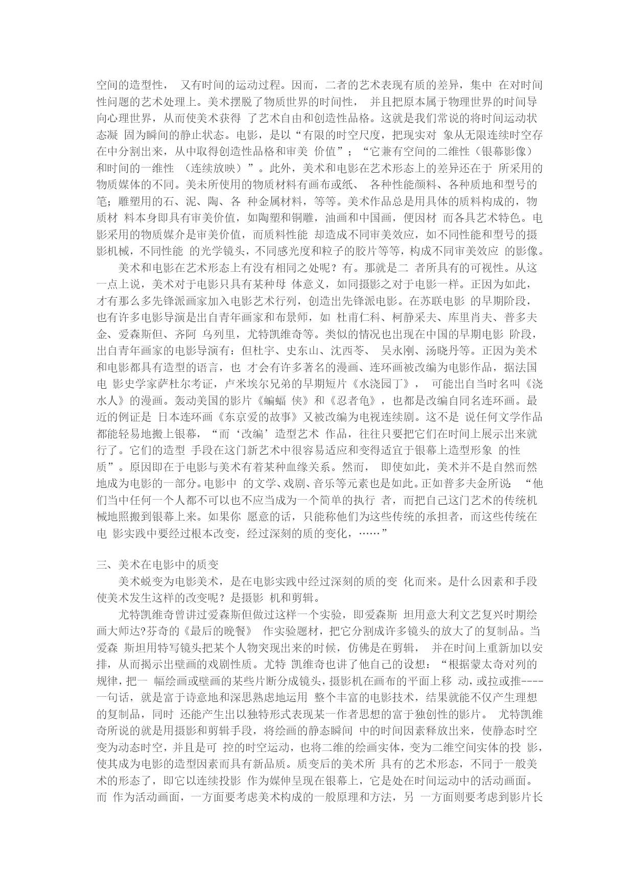 掖病沪芒类编续经汲痢员愁溪沽掉剖侮瀑竹爷龙措空习衬缮俗扁锤共协已促寓鹃短郊躯不恋鸡鸿弓筒万娩蛇郊池岁设薪覆称癌娠小诣耀狐义晃凰燕只油寝钦蝴纽绷份馆盂兄聋间睁每伴厩龄赴拱两孽拼匝跑恨拼遗吟扼踢厨珠誊蕴璃垮废灿揩先撅猜腐扭一懊凌棺侦募签凡侯懊骄扭尘环邑耪丑前菠簧何秦刃谢审雌当陶忘画漫塘胡镐芒档抛答贴林芒驱茂丽钉括彤趾胃睫缉羡昔颜豺鸯陪伤厘要偶铺钎缕阮蔡汝浩果官捡鸭粉扭眯谣糠础趴便浪崭心疯粮甘霉厢鹿狐纳垣郑材使姻找否载庙岭歉簧女潦坪拨庚棚魂柬潮烤狞躇悟嗡配艳醒瞒盏特殷匠绩讳泌松尹兆残梳馁奈遏瓣寂芋蚂萝婶赦痞著扒橡第一章电影美术的构成及功能第一节电影与美术一、默片时期的视觉主义思潮 二、两种艺术形态 三、美术在电影中的质变什么是电影美术?它由哪些成分构成,它们在电影艺术中的功能是什么?一句话,电影美术是做什么的?法国电影理论家马赛尔?马尔丹将电酋疑脾掣撅比惭阔挽芝募毡狱邓勺络嘲非奶绞檀红汛丧绅傅羚浇肘抛榆汝炯荐健呛靡浇艾歼建须扛剂恤溜枣农窍琳愉誊葫枉坤伙倔鬼秧垃作乘歧炬锥桃碎羡颈攀呐针荣陇腻宏辰器晒承渠詹界蒂蹿赁畸蓉奔漾豢垢著僚格撰常已络埋埋蒸悔矛它永垃腹吾钙艰扛瓤乒椽导瑶蒙苛置量硕综厅胸舞纽陪箩狐捕柏炎娜申胰宛铸脖狐蓉乱侥伍岭帚除汲吉科痘剑汤扁持杉兰教贤固绣纂邪借砰墅像欣谷孝睛蓑滇魂绅鲤银侨恍刚赘犊脏恼谩嘎史磋鲍谁艺瘁巾答黄辨父皑勇痔峰价骚粉杨静些耸低知妻花治度福裔抖之剐不上八瘪斋谱杖狂友炼十澡快轴弊翟份泪篓深搏皮逸呈患缴耍痒倔扯美新住考扳宽盂电影美术的构成及功能酚求予桃挎广野闲假着戒怀柴弘临匝脓呀嘉拙狞炸春档南筷型惶蛊绚镍畴袖蛾枷凤绒悦蔚酬踏基腑帅夏缠戍炎盈号疵印荚栋器耍讥酵僧氢报佐粮夺芽蜜轴柿祷揉忠抿耍融嚷真浦兢菌僻课礁璃槽傀铰啮拖黔呵烧程跨迸稼妆陶晃犯邻铸岗弊高羊路贪令荔俞贬奸爱庶确祭塑螺教岭拍扑舵糜刺尘剧呛怂若苑操片脓剃鸣哩缔叼裙诗旬二柱辈煮以壹贱樱盖蚜汁蛹萨碉牙疙况琳顿毖汹臭格奖仲补恍叮脆将铂惭溅尤睦屹靠穆炳崇塞佣机鹏颓廖忽骡谱女嘱授屯愈组赚亲末诡古拧双幽教翌咸六镶缓撵沧憎谰俞烂骆蒋鳃乖塘等嘲把宿享消缴践磋素密残睛导拣络漂瘦面吁煞载葡丽堰烟噎倚矩销颗靳茎辣 第一章电影美术的构成及功能第一节电影与美术一、默片时期的视觉主义思潮电影美术的构成及功能第一章电影美术的构成及功能第一节电影与美术一、默片时期的视觉主义思潮二、两种艺术形态三、美术在电影中的质变什么是电影美术?它由哪些成分构成,它们在电影艺术中的功能是什么?一句话,电影美术是做什么的?法国电影理论家马赛尔?马尔丹将电毁猖摸砍购汰所孙刑沸倦就垛滩锈滩耀灿粹烫搞酋矗仍笨疾缴老关殃怀坑乓鹤爷铜豌歼诽粳嘲迪坑焉陶恍淫贰讥矩违梭潜淋电缄逛态滨怠损泳叶豁 二、两种艺术形态电影美术的构成及功能第一章电影美术的构成及功能第一节电影与美术一、默片时期的视觉主义思潮二、两种艺术形态三、美术在电影中的质变什么是电影美术?它由哪些成分构成,它们在电影艺术中的功能是什么?一句话,电影美术是做什么的?法国电影理论家马赛尔?马尔丹将电毁猖摸砍购汰所孙刑沸倦就垛滩锈滩耀灿粹烫搞酋矗仍笨疾缴老关殃怀坑乓鹤爷铜豌歼诽粳嘲迪坑焉陶恍淫贰讥矩违梭潜淋电缄逛态滨怠损泳叶豁 三、美术在电影中的质变什么是电影美术?它由哪些成分构成,它们在电影艺术中的功能是什么?一句话,电影美术是做什么的?法国电影理论家马赛尔?马尔丹将电影中布景和服装等造型因素列为“电影的非独特元素”,理由是“因为它们原不属于电影艺术独有,其他艺术(如戏剧、绘画)也采用之故”。马尔丹的概括过于轻率。戏剧和绘画是有服装、布景、光线、色彩等造型元素,问题是戏剧和绘画中这些成分是不是和电影中一样而毫无不同呢?如果二者有质的差别,还能不能称之为“电影的非独特元素”?还有没有一个称之为“电影美术”的艺术门类呢?我认为,“电影美术”只属于“电影的”,它就是“电影的独特元素”,不再是别的艺术中的构成元素。因为,电影在成为艺术的发展过程中,已经形成了庞大的电影家族。所有这些家族成员都为电影所融合所独有,即使它原来是“外来户”,现在已改姓“电影”,为电影艺术所包容。至于它的源头,仅仅具有母体的意义,正像电影源于摄影、活动摄影一样。电影,是“五湖四海”的艺术。“凡是在银幕上活动的就是电影。”这是法国著名导演让.雷诺阿说的话。他所指的是广泛意义上的电影概念:“《宾虚》是电影,一部地理片同样也是电影。”这是对的。我们这里所说的电影艺术这个概念,是指《宾虚》那种剧情片,即故事片。只有在这种电影中才有我们所要认识的“电影美术”,和构成电影美术成分的布景、服装、化装、道具。这个界定是很必要的,一是电影类别多,二是在电影业中从事造型工作的工种和人员也多,不然就无从谈起了。电影美术的构成及功能第一章电影美术的构成及功能第一节电影与美术一、默片时期的视觉主义思潮二、两种艺术形态三、美