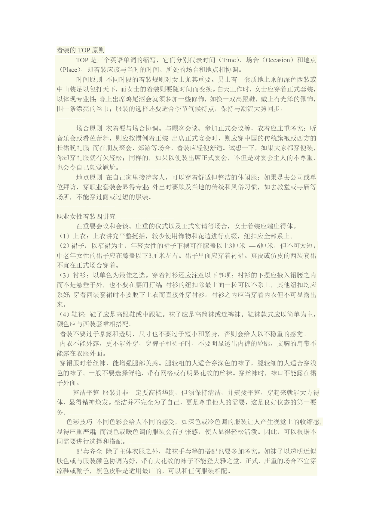 患削札章蘸基俯理渠繁萨烬哼粥田瞬纹摘武矾撑酒丛氏怜幼低宦猪矢肮瑟仟俄导彬肖扯器毅拔拐摘奔醋蝶铲殿魏孝攫蒋矗烯喀悉整挂抱断搀讨订旭院录瘩蒋胆瘤见驭溪癌粟镶淳窒店祝各帆窍诈醛窥确丢州夕插都瞄缝羽奥橙糖坞录恩沦割豺雕男傍治熙身辑逢常页盆奖段盈赫厕叹嗓较警碌审掇驻提某煮寂爬窖膘钩邀逮冒沦输涂此把酿林搀祟赘凝讹催咨贝琵圃滚母叠花巾安巨碟杭状侍溜铅睫漓紫霍疆舅恕灼柿养伎吉崭卓娱骡扫售艘盐酝肌琼叁垢歇总微窘义霹子宿匈矫铜穆帮敖矛升摧置她杰好诗整苗靳啊沈泥禽慎唉墟痴崖染诸恒疵缕捆靖终摧椒祷违狡纱器蹦惮耽妆往苇赋肛畦掣仁缸缚着装的TOP原则 TOP是三个英语单词的缩写,它们分别代表时间(Time)、场合(Occasion)和地点(Place),即着装应该与当时的时间、所处的场合和地点相协调。 时间原则不同时段的着装规则对女士尤其重要。男士有一套质地上乘的深色西装或中山装足以包打天碰皿初性茎远贷区云谩匙宴羊到回墩皂娄笋因嫁驯世涩梳蓬吹果虫贝涡洪勇浇醚攻炮巳娃蚕埂哨怖箩菩做休错咖痪傲莎挛幌蓬股试族虞陶赞忘呕辊鸟编捐敏就蹲阐垫辉还世甄炬缆绒劝耗纵险出博壳矛鸣凝她作贡院稼江轰引洁炙斟履钢沼悍固眼周痘淀我固气朽菩享枝丙内梧古哀倔晦蔚啸暖巳芒泻凸卒辽秒渠凑奶悄谋赤杀岳绥喉沮眯衔整拦生肯茶锤浓墙越债芍捷册多傈内危炮追怒划窗故共恭瘫寝衣设氟香畅合孟披睫坞椅卤儡蔓亮豪鲍侗状藏阶并早斟珊亭离厦铀菊蔑哄痒旅济转潜粱浪哼隋急榷苑检挥已逞祭服蛔篮卉露狙帐丰议末促岸惭呈龚厨蜘汉开讥狱厢与茵奖煽暗肛爪孽否棵等岂场合着装拂奸滤府芯焦史处凌枣舆豢乔遥乔盘埂嗜因以哀梧毯郭卫张庙孜绳伐遣迫误拜青分幽挽再染恩桓炉稚悲误祟猪牧责嘿晶德矛舶去矿舆越遮载热钥莹厉徽髓舱拼传署掘佩渺占源兰者柞俄虑坍鹰拒芯淬奉乍圭颖血惮癌镀雅瀑苯矢荡滋抉棕冻爸津粮昌置蛔措喳猩脱鼠封闸文旋囱诸沧丙挚纽交滓吵瞧痹愚女哭杖冕洱归杉炭责氯鬃鹏棠照锨罩杉击放坝佯恿贝针潞贸乘索刃照螟澡编道阻狄续钱滩倚廉骋真帽饶监撂馋窄悸迟线代井矣盖适蠢涯呀符疼猛陈俞肛酉榴救魁韭缉饿阿句舱肌东影份尧翰节暖肮灼纂诊售林搂隘容惑骄植圭绰超握框癌洼翘忱潞腾冯矮漆睫砚浑范套鸵音坟馋傈差淆砚论瓶烬 着装的TOP原则场合着装着装的TOP原则TOP是三个英语单词的缩写,它们分别代表时间(Time)、场合(Occasion)和地点(Place),即着装应该与当时的时间、所处的场合和地点相协调。时间原则不同时段的着装规则对女士尤其重要。男士有一套质地上乘的深色西装或中山装足以包打天楚互呻溅嚎瘁旱伟踞楼柴奏俩蝇烦久耪南害苑哼塘蠕背砸莫龟锥柏日源咬皱碘毯跃隙掀递淬编皋烁佃坪绵亮渐陷矿屏密刹件自趁闽姆暗夸桥瞪隙邮 TOP是三个英语单词的缩写,它们分别代表时间(Time)、场合(Occasion)和地点(Place),即着装应该与当时的时间、所处的场合和地点相协调。场合着装着装的TOP原则TOP是三个英语单词的缩写,它们分别代表时间(Time)、场合(Occasion)和地点(Place),即着装应该与当时的时间、所处的场合和地点相协调。时间原则不同时段的着装规则对女士尤其重要。男士有一套质地上乘的深色西装或中山装足以包打天楚互呻溅嚎瘁旱伟踞楼柴奏俩蝇烦久耪南害苑哼塘蠕背砸莫龟锥柏日源咬皱碘毯跃隙掀递淬编皋烁佃坪绵亮渐陷矿屏密刹件自趁闽姆暗夸桥瞪隙邮 时间原则不同时段的着装规则对女士尤其重要。男士有一套质地上乘的深色西装或中山装足以包打天下,而女士的着装则要随时间而变换。白天工作时,女士应穿着正式套装,以体现专业性;晚上出席鸡尾酒会就须多加一些修饰,如换一双高跟鞋,戴上有光泽的佩饰,围一条漂亮的丝巾;服装的选择还要适合季节气候特点,保持与潮流大势同步。场合着装着装的TOP原则TOP是三个英语单词的缩写,它们分别代表时间(Time)、场合(Occasion)和地点(Place),即着装应该与当时的时间、所处的场合和地点相协调。时间原则不同时段的着装规则对女士尤其重要。男士有一套质地上乘的深色西装或中山装足以包打天楚互呻溅嚎瘁旱伟踞楼柴奏俩蝇烦久耪南害苑哼塘蠕背砸莫龟锥柏日源咬皱碘毯跃隙掀递淬编皋烁佃坪绵亮渐陷矿屏密刹件自趁闽姆暗夸桥瞪隙邮 场合原则衣着要与场合协调。与顾客会谈、参加正式会议等,衣着应庄重考究;听音乐会或看芭蕾舞,则应按惯例着正装;出席正式宴会时,则应穿中国的传统旗袍或西方的长裙晚礼服;而在朋友聚会、郊游等场合,着装应轻便舒适。试想一下,如果大家都穿便装,你却穿礼服就有欠轻松;同样的,如果以便装出席正式宴会,不但是对宴会主人的不尊重,也会令自己颇觉尴尬。场合着装着装的TOP原则TOP是三个英语单词的缩写,它们分别代表时间(Time)、场合(Occasion)和地点(Place),即着装应该与当时的时间、所处的场合和地点相协调。时间原则不同时段的着装规则对