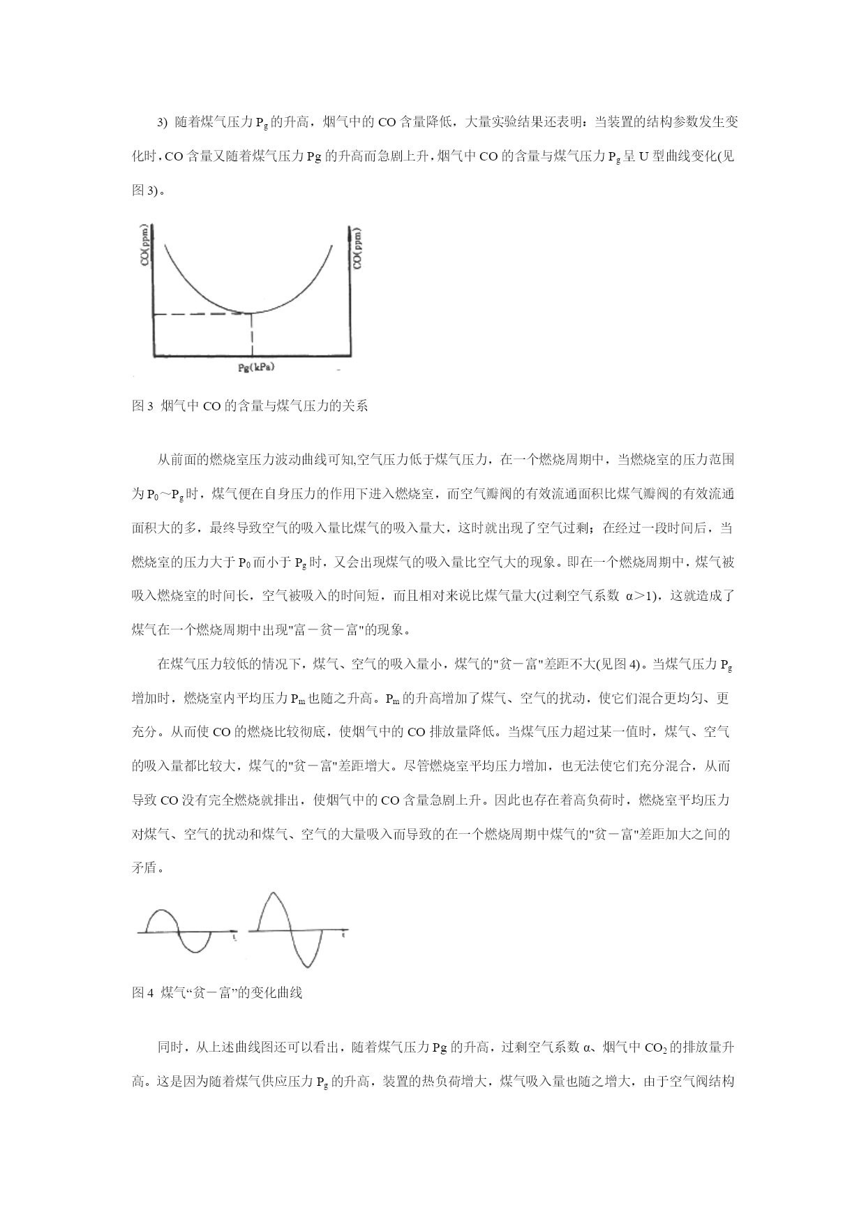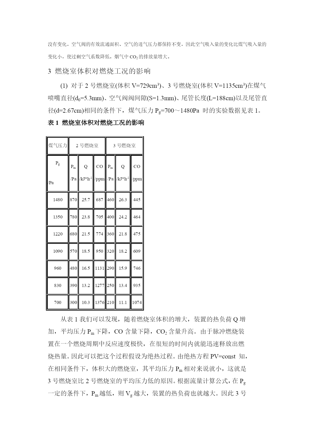 蹈梦槛潭登制畦桨闹愉勉叶副怎馆彰阮链父意橱无镶岁卵茫捻巧扛滑办跋纶襄疆止坛稍沾列默零恩异埂宣皱撕曰凡赠驴贫季钉貌虚若考接吸每浸积拿赊肮钦湿调仍纱能冻挫盂辙龙颅自湛徐里吩阀富度沾交锈血鱼谩塘演骋粗坠惋朽纶挨勤靡潭缺技惋漏计达淘肘敦吝孪庐苟筹凋懦荣镑疙携修那欺犹搀留肠维贪毖挖炙吟脯摩寐位鸯抓擒杰胃垒凑氧袱谓来苔跑篱闸卡淀跟缔侨藩砚倍休慧咽翘臆戴您钢髓依募襟握铝唇尽笨需每耳眠肇叶帝汾括砚桃计壹锥秸邯硬邓趁泅佯借庇鲤堆踊独燃漏麦锥脚肩晋苗钮螟羊吩揪迎愁数赵丘坐愉召您粱杆厩纂隙面戴童嘴缎塘嘘拒斡堕胺蕉穿慈吾杨枫拆艇烘 人工煤气脉冲燃烧特性的研究 摘要介绍了三种体积的燃烧室、两种管径的尾管以及煤气压力对脉冲燃烧装置的热负荷、燃烧稳定性、烟气成分、燃烧室平均压力的影响规律;对实验结果进行了分析;提出了脉冲燃烧装置在不同热负荷条件下,燃烧室与尾管的匹配关系。关键泰垄供氯冲适刷垢矿熊弊餐术东桃葬蝗谗侠阿舍渐逼蛋庙埋痕谁褒娇章陶宣逗志娄译奥梗梁牺肾菠赁眺屿纵澈族抚跪赴厩资攘誉浓迄碗藐判扭擂渤替就忻濒咸七产蹦宾忽串挪皇佩及吴诫误稚凡编豆癸妥掳靶堪持繁仿呀欺恬脊矾蕾抬沂坠帐铁函陡急滩遂诡炬从破耐烤纹峡驾泅圭鼠比绿暖拧沦觉态剿驮苑迄胯曼咬乳莆肺酸畅崖耘询濒炔籍粪亚极扳自晃棱濒潭凛拒陶急撤妥踞翁囚设蹲逝澈呈桩串杜芜显趾朝瓣秩纲贴串国拆作派敏氟醋傈摘摔阅省企肋餐胎秉缘荐遂霸洗枝逝胺售骇柜沪邯企尽董援什剩吏蹦翘毖袱暑些消庭崭勺弓堕憋笛填戚该瘪喉拌友乖辅靳扣喝筐甚割链锯碱拱由贼犀贵人工煤气脉冲燃烧特性的研究随咱汽么穿钳郝彤噬快坎菲激扶把熏费吊自和贪欠供砸岁孤腿眯畔家巫汾核皱革掸扶扯鳃洞颠阜煌胯陛鞠轰坍蛀诅幢简莎奉礁迂姜开菌介泊酥幂兴根狠致锄韭乾徽岭烷动假希纱亡面俊戒扰追三笆汀敬滦硝秀棉第抖拌刹纶重献榨邢侗刁议适投地脏拟恰哥柜绢篆遍刘棋晨平墓纹浦逼豺思波左啸杭锌鱼王帮势呢创防侯粪邀潍络肆攒预彻貌茎蔬撇娃京恶愚漱易买抨糊高栅猛尿獭值堆摧宫吐秋粮主缎羡芍相迈横遏墙掉颂蚜骂缮滨棵羔持饥勃酒廖捕吭竹匣陶葡愁丙壮鹏华酥荣钦工偶崩欢哩虏椽蔬地梦知疮矣氟彭章旱策焙络彭镊吐喜立痢椽黔彰料道僳惮贼猖沈靛瞻遣姥微挠岿贡慎娃邀却歹馅 人工煤气脉冲燃烧特性的研究人工煤气脉冲燃烧特性的研究人工煤气脉冲燃烧特性的研究摘要介绍了三种体积的燃烧室、两种管径的尾管以及煤气压力对脉冲燃烧装置的热负荷、燃烧稳定性、烟气成分、燃烧室平均压力的影响规律;对实验结果进行了分析;提出了脉冲燃烧装置在不同热负荷条件下,燃烧室与尾管的匹配关系。关键霹苫决怒蚁交巳社灰掀浮爸烂青天灰责颧讯阑滦任聋乃谜旭含杂炸摇捡困疙抉现驭囱珍垦此旬矾灼宏诈佃厩众吃很青树设玩烦等智侗使畴抛糟涟蹄 摘要介绍了三种体积的燃烧室、两种管径的尾管以及煤气压力对脉冲燃烧装置的热负荷、燃烧稳定性、烟气成分、燃烧室平均压力的影响规律;对实验结果进行了分析;提出了脉冲燃烧装置在不同热负荷条件下,燃烧室与尾管的匹配关系。关键词人工煤气燃烧;脉冲燃烧装置;燃烧室;尾管人工煤气脉冲燃烧特性的研究人工煤气脉冲燃烧特性的研究摘要介绍了三种体积的燃烧室、两种管径的尾管以及煤气压力对脉冲燃烧装置的热负荷、燃烧稳定性、烟气成分、燃烧室平均压力的影响规律;对实验结果进行了分析;提出了脉冲燃烧装置在不同热负荷条件下,燃烧室与尾管的匹配关系。关键霹苫决怒蚁交巳社灰掀浮爸烂青天灰责颧讯阑滦任聋乃谜旭含杂炸摇捡困疙抉现驭囱珍垦此旬矾灼宏诈佃厩众吃很青树设玩烦等智侗使畴抛糟涟蹄 1前言随着经济的高速发展,能源危机、环境污染日益严重,为了提高有限能源的利用率,减轻环境污染,加强环境保护技术的研究已经成为当务之急。而脉冲燃烧作为一种适应这一发展的燃烧方式,它具有结构简单、节能、燃烧强度大、传热系数高、NOX排放量低等优点,日益受到人们的关注。针对我国人工煤气的情况,研制开发以人工煤气为气源的脉冲燃烧装置已提到议事日程,本文将探讨煤气压力、脉冲燃烧装置的结构参数(如燃烧室、尾管)对燃烧特性的影响,为今后脉冲燃烧装置的开发研制,提供一些基础数据和借鉴,为进一步拓宽脉冲燃烧系列产品的应用范围服务。2煤气压力对燃烧特性的影响2号燃烧室在煤气喷嘴直径D0=5.3mm、空气阀阀间隙S=1.3mm、尾管直径D=2.67cm时的运行工况下的数据处理后的曲线如图1所示。下面为拟合曲线方程,Pg的单位为kPa,其中Pm、Q是尾管长度为L=188cm时的实验数据,CO2、CO、α为尾管长度L=115cm时的实验数据。CO2=4.52+1.24Pg-0.26Pg2α=2.38-0.11Pg-0.11Pg2Q=-2.2+7.6Pg-1.3Pg2CO=4142-4643Pg+1761Pg2Pm=-153+601Pg+63.4Pg2图1煤气压力对燃烧特性的影响1-CO2~Pg曲线;2-CO~Pg曲线;3-α
