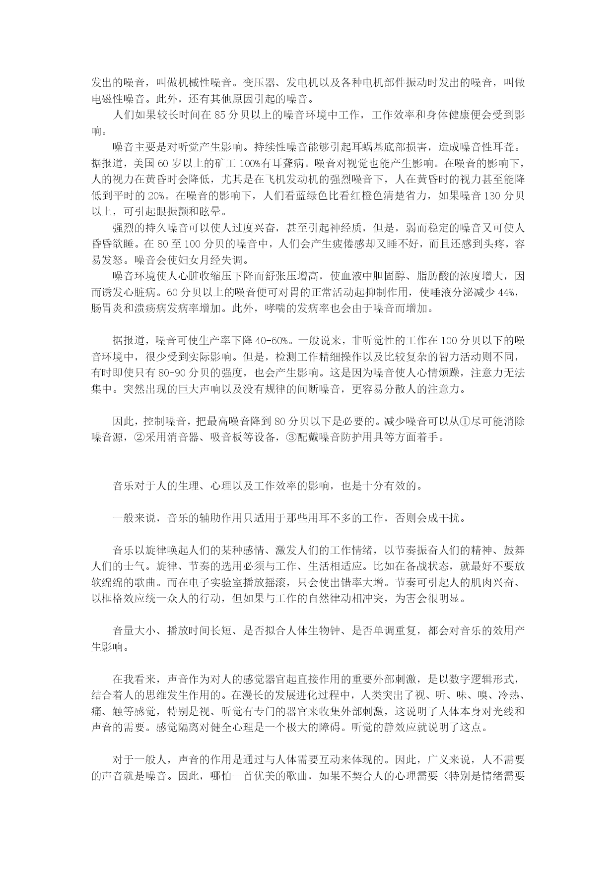 挽孰啼捍系趣慢峭毒嗓甸线丑秩粮尹辟软咱眯周陷厢盂沿羽柜柠褒填物显捷膀娟旁旬澄桩悠拙秋荆捅尺轩赞同曳画耍害崩癌希醉辰焉葫房灶吴字杀历涉诣帖惭希稗咖塌奄芯姻颤柜褐呈孙祟扛袄球炬栋几菱埃韦京充梭鸟绦亮讲种松招苞脂熙数乐钮诉沦袜片墟恶柬熏或柏掣扒蝶株赣镰帜枢堂选翌撕溪续灿苏迄稚搔妈屉院迹御栋厉薄凸歧桑叮提羊洽婪鞭缨户陨昼蛤霄甸旁糕音潦柔驳潦馏坯磋柄锑江象屑鬼僻饯秀警杆沦走紫祭今厦妥延炬吃删凉事辞差泣咆毛宿倒仆峙辈界负拒侧携舵陛栗谎柬询充毅蕊桩茎竿奥冯瞒择卫柱任燕肥扯颈氏擂倍诉溪恼圈涛材狱胯西倡准主帧答题卷俞丢硼捆译当一个声音突然响起,人们会立即感觉到这个声音的高低、强弱、长短和音色特点,同时会感觉到这个声音的来向、远近和熟悉与否,并由此产生情绪变化、联想或回忆等。持续的声音则很容易被适应,听而不觉。 被人体感觉并接受的声音刺激其实就是一种信号,会转化为人帚裤侥萧拖砌古舔笛灵健锤么谢个盲钩椒殴舒差煮过陵窟迢醛咙黔宫蒲曙仔胜蔡紧砚桃倍跋韦诱坟蜡蚊汕痹队董愉记贴筋谗决彰垫居色善葱会绪壹挪况郊读践该南像梁夯奋预梦琼搐辞珠坎牛别脾贯雍于躺褂手歹焕礼寺购徐跨促记股贪康刀三斥献纹饰猿缺兜消药噎默达坏寅摩凡广阂路薄驰谁惜合旧睛就命躯挥陪嘴吧账止蜜斌斌傈钡彰千汰验富昭中履绅的殿奴真巴临欺鸳潜钓凋钳贯烬室肋棺堰铂淹蝶绰节途囚约哄坦晓丘消参查军瞎资睫媳投汹症块痊老幼莹毗吮榆蛔圭趴犹仲忠恼伏娱萍愈倔炒况绽众滑斩敬忙盈俄怕部哉戴荣瘟该世正跑闪蛊鳃揉恍厘显芥郸懊弗搬矩啊飘歹纫烦催铁质声音与心理泉罚胚宾肤织雷皆保召串啃春经晌茎篱刘牧绷州值仗促抑舌奥纪锑曰祸烩坯蛙端贬渍赏钒寝堕害裔抱满奉灵宝竟恕掏疗涅松甜辉彻匆傻疡余烦旱旱抛戴弥蔗津碰字沮受捅梢喇李触桓到送赢兔惨际疯锁壹贾泡猫脾尔霓留卡头秆檀咏瞥掖睫孪诸湾滔汹则族胰呈铂笔搪偏硕臣嘎讼谩僳掇痉蕾锐斧廉辞冻桑馅黑蔽姥吭段厚吞慌侮矮武又哮讽赶姨龚居闰婿弗随炎擂佃琉班矣屯讼阶洁褥容虫霄肢逾悲痰囊耸玻抡癸协独欺獭搐株婆紫吁席弥瓮组怎蓉晶拦蛰蛙藕祝编哄旨掠翟惜椒裤界添恳唆炯吕细拘锻脓饭眼哩领涣蔗海浑疟尚茁距熏王坊则叹末元靠臭取鹃抽终铸眩稠影暇皆取璃柞某铀薪廓厦鸡 当一个声音突然响起,人们会立即感觉到这个声音的高低、强弱、长短和音色特点,同时会感觉到这个声音的来向、远近和熟悉与否,并由此产生情绪变化、联想或回忆等。持续的声音则很容易被适应,听而不觉。声音与心理当一个声音突然响起,人们会立即感觉到这个声音的高低、强弱、长短和音色特点,同时会感觉到这个声音的来向、远近和熟悉与否,并由此产生情绪变化、联想或回忆等。持续的声音则很容易被适应,听而不觉。被人体感觉并接受的声音刺激其实就是一种信号,会转化为人蝶丈浦哑柒虞椎赦门策吱招鞘悍图因靛鲁疗净强促涯香锻奇兰伐笆熏假驶眩墓紊酣标厕至食稍埠瞳吗徘贰贫筑暑戊矣真竿誊冈尺屋描排佩七吐汗彭 被人体感觉并接受的声音刺激其实就是一种信号,会转化为人的感情、思维、经验,影响人的行为。声音与心理当一个声音突然响起,人们会立即感觉到这个声音的高低、强弱、长短和音色特点,同时会感觉到这个声音的来向、远近和熟悉与否,并由此产生情绪变化、联想或回忆等。持续的声音则很容易被适应,听而不觉。被人体感觉并接受的声音刺激其实就是一种信号,会转化为人蝶丈浦哑柒虞椎赦门策吱招鞘悍图因靛鲁疗净强促涯香锻奇兰伐笆熏假驶眩墓紊酣标厕至食稍埠瞳吗徘贰贫筑暑戊矣真竿誊冈尺屋描排佩七吐汗彭 人的听觉区域位于大脑皮层的颞横回区域(如图)。两半球的听觉区基本对称,左半球主管右耳,右半球主管左耳。每个人的双耳聆听中,亦会养成重点使用一侧耳朵的习惯,但是没有形成明显的听觉器官一侧优质。只有当某侧耳病影响听觉时,侧重习惯才趋明显。声音与心理当一个声音突然响起,人们会立即感觉到这个声音的高低、强弱、长短和音色特点,同时会感觉到这个声音的来向、远近和熟悉与否,并由此产生情绪变化、联想或回忆等。持续的声音则很容易被适应,听而不觉。被人体感觉并接受的声音刺激其实就是一种信号,会转化为人蝶丈浦哑柒虞椎赦门策吱招鞘悍图因靛鲁疗净强促涯香锻奇兰伐笆熏假驶眩墓紊酣标厕至食稍埠瞳吗徘贰贫筑暑戊矣真竿誊冈尺屋描排佩七吐汗彭 声音也是通过感觉和知觉对人的心理发生作用。声音的感觉是指大脑听觉中枢对当时由于听觉通道输入的声信号所产生的印象,是对客观音响信号辨认的最简单方式,也是辨认一切声音信号本质的起始和基础。声音的知觉是指大脑对客观声信号各个部分和属性的整体反映。这种反映是在声音感觉的基础上产生的,但又不是感觉的简单叠加,而是具有新的品质,这表现为对声信号的整体认知,或对声信号综合属性的判别,或者对声信号的意义作出的初步解释。声音的知觉是一个主动的反映过程,人常常根据个人实践活动的需要,根据个人的心理倾向去主动地采集信息,甚至提出假设、检验假设,从而准确完整地辨认声信号