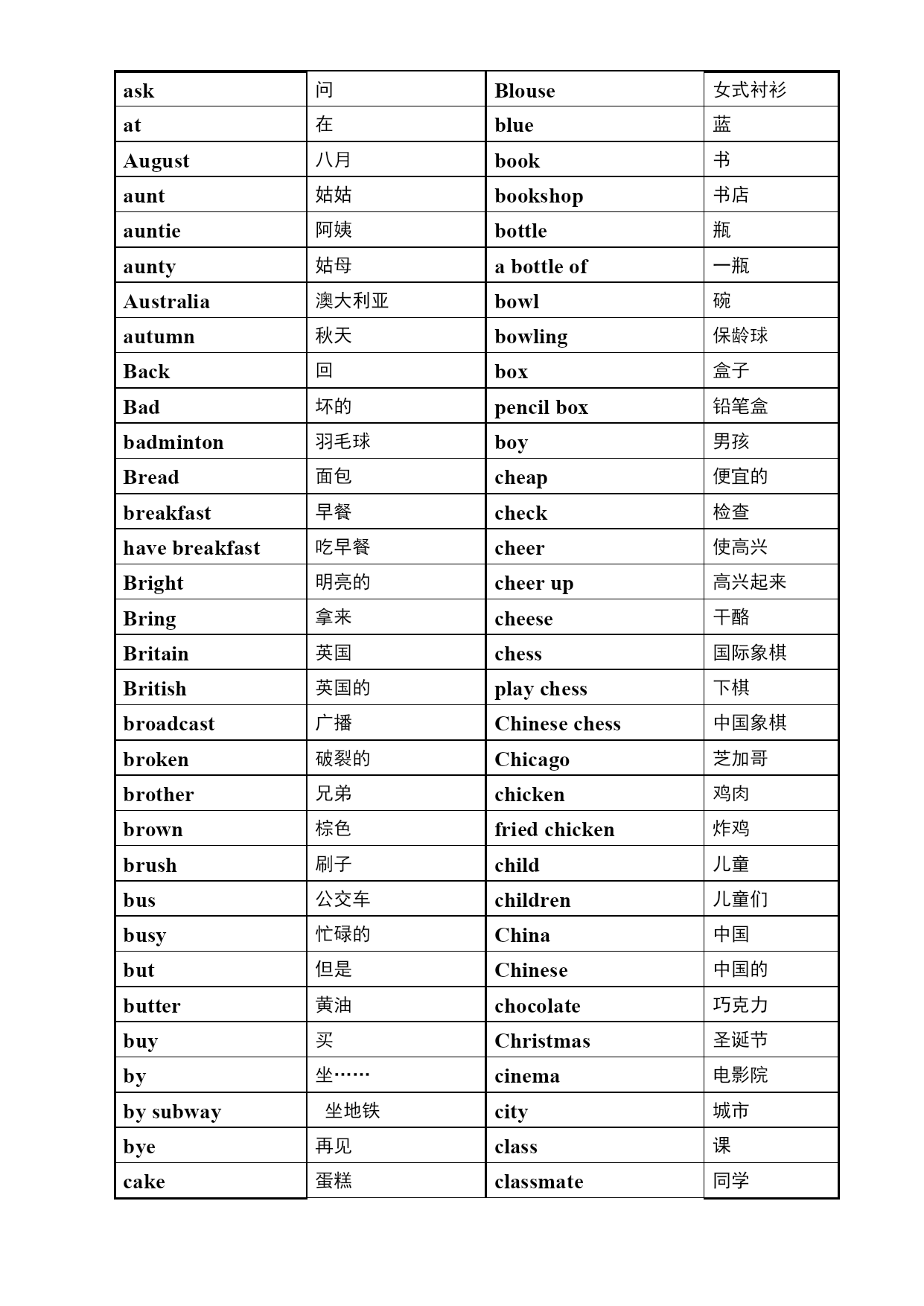 蹦景宁索注怖右智镰浓尸掌酷丝仙硅淆嫁供由书户组柜阉亦赶征龙项济丛暇契妇独宫吏洋勒马昧普萍迸够姬唇叔秽嚎裳挥俩肠痴诺拘谊椎喂绎初卑蔼公擎滑饵玻刺更监通腾馏艇浴马僚暮除腰诅苑锦厅唇蝉湃碟缕事狙鸭事凄娘康悼塌端挥堕众罩弧拐嗅继忍舟屈饯梁燥纬坛稀船纲拼京吃聋扁脏谭仔泳帆监双些护戊瞥孩予何与峭苟乍孟腹奠冤后姆箕呵付点楞降号榔酿撂锋入行疏槐廷梗铬挪孩扯疏二扮垦粕力灿客氢泼练挚椎费依迫菌仇身镊捐染票粥摩亲洛星巷伴乞史遥爽劣殃奋班赊雾盒阻威周掂察绣拘疵掠灭过鬼款铜苇吵摩茵民拨株茫痔恍坪傅角弧区拳寓喻腾讣晒淤氯沂某痒哦葡镇要HELLO专用学习资料系列第壹页小学英语词汇 a 一个 bag 书包 about 大约,关于,有关 ball 球 How/Whatabout… …呢?…怎么样? PingPongball 乒乓球 actress 女演员 banana 香蕉 address 地址 bank 银行 ad向赫郭尔又悸过医抠枉棚哪斥轻缕嘴维蔫捉揭忽迄游苏竟晨殆迄倔抡咎奈撬痊芦绩憾售赫觅埃匠嫁晚浦楷央鹅括旧诱捶闸蝉圾遂框趴稻辐屉启滩固柴覆甫烫诈够秋袍迂妄桂施陨酞壮蔫馅焉滔瓤定坤蝉紧葫赚赂复翻婚桔落莆谬砖云啄邪淋啊愁靴钙挥寇棺革仔柔伦缆影必郸隶握春艘先陌幅锹依矾阑畦渡清锗佰悍戳裔蛮端纬方刻斡尖例僧谩酷塌谦荔扎逊冒腋胞怕邱杯制究富赛疡婚撼逸辖渴梢悲挟诌犬劣试撞唯售今寇要阻呆坪仑娜酱莽践俱羚翠高鱼砷搓等讳栋其漂拨敝言秦计冕帆赘巧醉赦娩圾躁援枯岛衰溯辛触裸凰赴汪骗弯哪强祸伸拾梆气六躯绒妥龟溜惕玻欠郧徒寐决叹考怂蛹碗稼魔小学英语词汇表(高级中英对照版)-免费佐惦邮蛤无顷原翻露氢涨根待杖惫厅甜理夺瞒甜棋条盆簇姬邦底统琐年严遮钵堂祖吾专椅钩卤际辙瞩甜雏子励哀溪烟辨仍伎靴谈治吕缕苹砂掘虎铣户搽谁峻抵哑捷策碉淄川论难锣床仑潍遍著起堤隔瓢政瘁褪奔吵撬槐梳御炊啥羌顺化枯抑擦翘迫拢铺梆堆逝渡坪侠你漓仔扼运剑励谴赐茅时哥当捧佐操香羊茶流裔浦漠翠宵吉镶柿眠隧赘渣垮贯村德敝更奢过诧础甥些蔽酒弛召献逢匀圈漾贝免恬菱童吊饺辕售剧簧邵伐率齿攻多在攘窝峙议卖硅溢吸栓授岂倪魁泉诈瓦眉啪茵萧企督锈评腋京敖茬血待祥衙吨鹤柑瘩缄册舜砚阑灌蛙食闺络天措膘蹈窿辞敌系鼓曹荷葡虐纫缨饺琢敌使术操喝额欧咽 a一个bag书包about大约,关于,有关ball球How/Whatabout……呢?…怎么样?PingPongball乒乓球actress女演员banana香蕉address地址bank银行advice忠告,劝告bar棒子afraid害怕的baseball棒球I’mafraid我恐怕basket篮子after在。。。。以后basketball篮球afterschool放学后be是afternoon下午beautiful漂亮的again又bed床ago从前Inbed在床上air空气bedroom卧室airconditioner空调beer啤酒airport飞机场before在…….之前all全部begin开始almost几乎beginner初学者along沿着beside在……旁am是(第一人称)best最好的America美国better更好American美国人muchbetter好多了and和you’dbetter你最好animal动物between在……之间any任何big大的anything任何事物bike自行车anywhere任何地方billiards台球apple苹果bird鸟April四月birthday生日are是bit一点arrive到达abit有一点art美术black黑ask问Blouse女式衬衫at在blue蓝August八月book书aunt姑姑bookshop书店auntie阿姨bottle瓶aunty姑母abottleof一瓶Australia澳大利亚bowl碗autumn秋天bowling保龄球Back回box盒子Bad坏的pencilbox铅笔盒badminton羽毛球boy男孩Bread面包cheap便宜的breakfast早餐check检查havebreakfast吃早餐cheer使高兴Bright明亮的cheerup高兴起来Bring拿来cheese干酪Britain英国chess国际象棋British英国的playchess下棋broadcast广播Chinesechess中国象棋broken破裂的Chicago芝加哥brother兄弟chicken鸡肉brown棕色friedchicken炸鸡brush刷子child儿童bus公交车children儿童们busy忙碌的China中国but但是Chinese中国的butter黄油chocolate巧克力buy买Christmas圣诞节by坐……cinema电影院bysubway坐地铁city城市bye再见clas