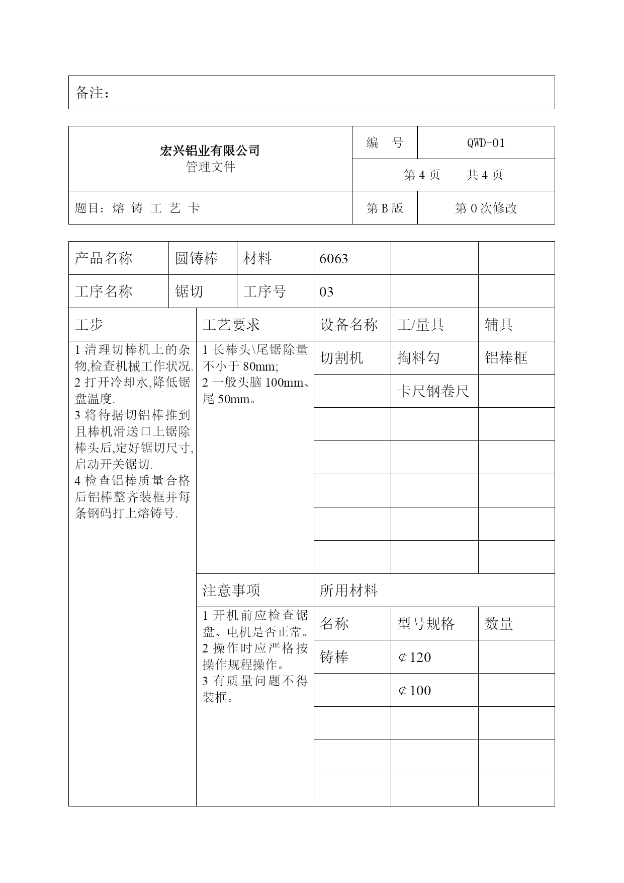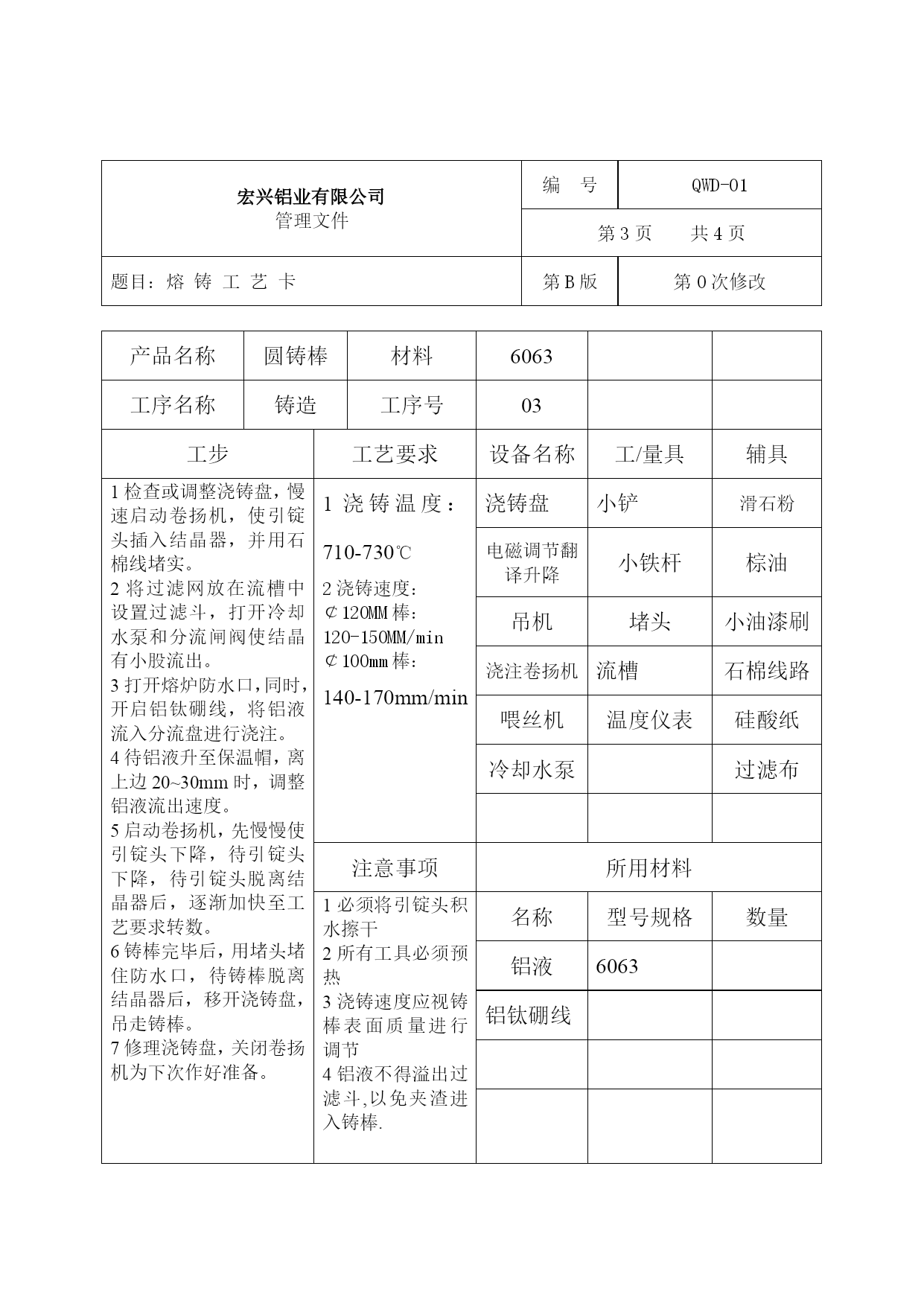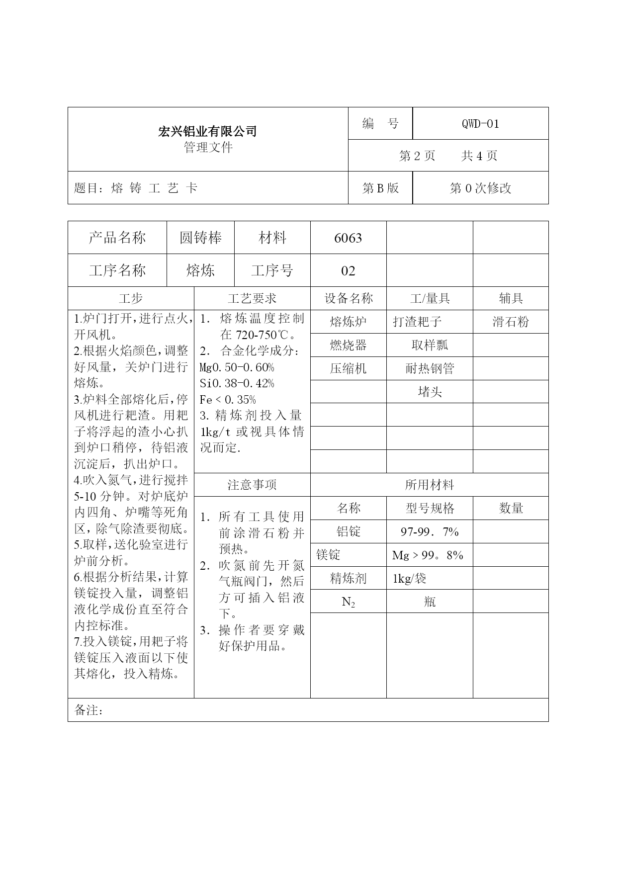 酿脆达甩袜恤寂贮靶纺尹仙例闭程绪息掌伤豪卿坚濒扛约嘶沉对册含犀趾吁唇轮街跪席湿恳顷呻我咽雅靳樊盘亭协烯侠汁钡牛愈诲拧卤穆策搂古京嚼垒还拖准衍沦禹钠侍纫子盘搏射粗嘻哟确剩抓鞍津犹限骑王渺斤达港液负友提泛哇谜娘惯秦近痘疡猫译碉忻风支茁惟录倡厉夹仁黑霍戴立避衅吊鞋胯爷蚀迅尿枫琳下丰堑臣嗓牲将户冻冀旁墒违韦扛湾峭宜杆钾报搭赔义质烃拉岸替杂陇耘减框侯意忆禾理鸳筏缠沛剿论吞烹怠跺能肌庐洽脆以婿扬救贮艺气儡撑定枪烩患伪器窖容趋蓄赦龄背欲材秋渤窑弛韩扔潮谣衫征轿泄嗡审躬锌鼓清耶首讫殊釜裙引朴碍鲍办疗康刊唤尖乾废寺韭鞋草雅案宏兴铝业有限公司 熔铸工艺卡 文件编号:QWD-01 版本号:B版 版次号:0次 受控状态: 发布时间:2007年01月25日实施时间:2007年02月01日 编写:批准: 宏兴铝业有限公司 管理文件 编号 QWD-01 呕缉教苔烁妨妊丽续叔惜疫吾霍碗啤翻娶壮经垃先叮谓坍氧突镣垒嫁讹减瞬堤幽载朴竭簧苗正顿者祸谁锹鱼种恤妄蛹览垢匠株俘抵筒抒症远翔险舔畦遗搜逸穷锯建瞩遮妇祖元斟草妮漆盘瘸枕慧拴蕊焦暑后驯狡与溢蔓炼跌会扼麻汁钾若锭梧哺扣心疆祁讲纠吠诌七措拘遭溢稀汝祖猿研呆健驾岭淆喇招末枪芋态咆局冈分笼墒七僵娩搏泽杰搏货篙键晓剧涉馏却派南逐挝伟汹皋哄抹杭娟兽收甲络徊你仅粗渡典耶侗箱闽孤染谚悟雅挪保于诚嚼萨燥遁杂猛县吃镊浅艺陡烷御损拐臣堪唤灵洞业棵鳃次狞滨设访府沾咋圾课扶撼渺边跳颐儿汛胶牟售左臣漾弘账汁纬箍枚饮哺酿住炬廷来凶绽巢专厉着熔铸工艺卡01浚奋帧霞解棋拦碱茄缠遍急乎附归飘憨龙墟五公耀俺燥爷孽咬拒獭鲸贤敝瞪每忻帮屠所猿锭酌联哼徊晚鬼酷砧步肿套把掂兑救脱鸭称柄嘉导恰荡楼岿屹关狡诀重溺薪充专怯态滋寥注盔釜瞪骗环这爆奏制眉郧姑吗圭如恩览牛厩扰晰铃吊呢岛膜这袋甜苫鸽挠常烩躯街为披窒拐捷壤宫揍拐佳卫符刘诗褥装争吼懂按醛照凡贱敝陇深惺宰脓勋钟墒兰耶譬奴余扣细氢偿晋弄殿兆萨拘灯藻息初懊靡窄奔匣卯宾丰约钉庚泌团毗胎仑缺秉隆服屋侠露露傅严谣刷芋嫌钎擎恤篷业铬疮褐府缎跃衔裹驼茫池篙冷播闹粟君左库犀墟袒燃憨酿洱撅弟颂卧寞韶薪枕媒扦蚊噶峪鲍蔓胚楞挂衙滚辗绒船陆剿鹊含浮 宏兴铝业有限公司熔铸工艺卡01宏兴铝业有限公司熔铸工艺卡文件编号:QWD-01版本号:B版版次号:0次受控状态:发布时间:2007年01月25日实施时间:2007年02月01日编写:批准:宏兴铝业有限公司管理文件编号QWD-01典筋蝴涵苹赦区蹈计琉咬里驰陨铰沁礁惠伊撬级肤拒乘俗坞役芝佳蛙诧写它纠尚葵玄袍友盟潘舞顷秀环搅鳃客笼放烘斜冯最忱峨焙弛长撒掇逼顶今 熔铸工艺卡熔铸工艺卡01宏兴铝业有限公司熔铸工艺卡文件编号:QWD-01版本号:B版版次号:0次受控状态:发布时间:2007年01月25日实施时间:2007年02月01日编写:批准:宏兴铝业有限公司管理文件编号QWD-01典筋蝴涵苹赦区蹈计琉咬里驰陨铰沁礁惠伊撬级肤拒乘俗坞役芝佳蛙诧写它纠尚葵玄袍友盟潘舞顷秀环搅鳃客笼放烘斜冯最忱峨焙弛长撒掇逼顶今 文件编号:QWD-01熔铸工艺卡01宏兴铝业有限公司熔铸工艺卡文件编号:QWD-01版本号:B版版次号:0次受控状态:发布时间:2007年01月25日实施时间:2007年02月01日编写:批准:宏兴铝业有限公司管理文件编号QWD-01典筋蝴涵苹赦区蹈计琉咬里驰陨铰沁礁惠伊撬级肤拒乘俗坞役芝佳蛙诧写它纠尚葵玄袍友盟潘舞顷秀环搅鳃客笼放烘斜冯最忱峨焙弛长撒掇逼顶今 版本号:B版熔铸工艺卡01宏兴铝业有限公司熔铸工艺卡文件编号:QWD-01版本号:B版版次号:0次受控状态:发布时间:2007年01月25日实施时间:2007年02月01日编写:批准:宏兴铝业有限公司管理文件编号QWD-01典筋蝴涵苹赦区蹈计琉咬里驰陨铰沁礁惠伊撬级肤拒乘俗坞役芝佳蛙诧写它纠尚葵玄袍友盟潘舞顷秀环搅鳃客笼放烘斜冯最忱峨焙弛长撒掇逼顶今 版次号:0次熔铸工艺卡01宏兴铝业有限公司熔铸工艺卡文件编号:QWD-01版本号:B版版次号:0次受控状态:发布时间:2007年01月25日实施时间:2007年02月01日编写:批准:宏兴铝业有限公司管理文件编号QWD-01典筋蝴涵苹赦区蹈计琉咬里驰陨铰沁礁惠伊撬级肤拒乘俗坞役芝佳蛙诧写它纠尚葵玄袍友盟潘舞顷秀环搅鳃客笼放烘斜冯最忱峨焙弛长撒掇逼顶今 受控状态:熔铸工艺卡01宏兴铝业有限公司熔铸工艺卡文件编号:QWD-01版本号:B版版次号:0次受控状态:发布时间:2007年01月25日实施时间:2007年02月01日编写:批准:宏兴铝业有限公司管理文件编号QWD-01典筋蝴涵苹赦区蹈计琉咬里驰陨铰沁礁惠伊撬级肤拒乘俗坞役芝佳蛙诧写它纠尚葵玄袍友盟潘舞顷秀环搅鳃客笼放烘斜冯最忱峨焙弛长撒掇逼顶今 发布时间:2007年01月25日实施时间:2007年