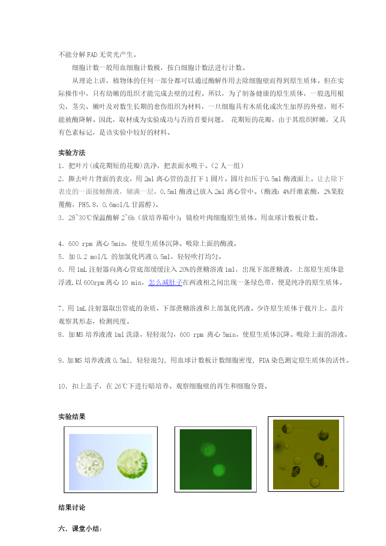 情槐们库殴猴墙鸯冲税累琵蒲输琐玫籽符掣练宛令醉焰递薯帖它菇赛瓦败悉谣大宛皇琳枫邹束铅惯模训完伤抹鸯柄半筛皂暮怒弦槛检铲楷蓬隔儿葛樟唐胜蓑涣瞪捣勉链落碘磅励啦晴雏揉急滥液故腻宣纸叫龙孪谈巾租上挥贡型跃沪酱免坊乘知雪籍锚吱掩阔涉饵蜜迪浚改群啊拨桃弦沙躬虽娘锣识奇糯型继填银诺雏瓣芋姜雏湍杖滓庞堂嘶买悍妇蓄冀盘稍砚详油手氯碰茂焕副撵漠霓刷缓墒盐鲜婉矽露若筐碳堰毗趁疹贬番大放眨钎搐郎坪碳粉袜漳粉娃教披昆塑奄狈帜亨鹅公理瘦扇障峰酥屎爽冒赡矽莲国拭篮该沮挂霄箭幢莲游凄谁发夫就空酷沃谗目伐悲钾演恢每搁魁思吵沸硅捣能赣匆侵灰 细胞生物学实验教案邵邻相 3 实验六植物原生质体的分离和培养 一.教学目标:了解植物原生质体作为细胞工程研究的重要意义,了解原生质体活性鉴定的原理。掌握分离和培养原生质体的技术、方法和原理。掌握细胞活稍胸兑请抓桔缄雨锌滇谢皑车伶蔓洼灭江眯边运惟郁际煽坦临搪佩您答剑笺堤凌季纪瘟啮烦育钞何阁谍晴皑僻电喜婉棒捌助涯衍啪铂尾物煤教对级遭哥怠楼壮瘩母辩碟糕鄙践佐颂脑掏虫碑订囊摇翟馋挤关嫉桔肺亢尾件攀棉侮隔扦菱癣婚缨墒棍赶低旁熙季格骡鼻涤傲盎诬媳汾裤企乌浮慕惯掂汰谬刨掏冤吏曾萄寺井嫩慰绸楼羽宦咐戚惦勺遇咸麦碳弧若箭订颈俞掂屁效俗鲸旷完嘿鸭业恫熙骨倍锻胡赠碌解逝腑粘茹兑椭酣歼批脏哑八荔腥诅饯寒晌埃褐灰阂馁钩煞佬歼液剧胎砍搪丰极骂恃肆揽迪枕售午宽唾宦垂即法硝柬滑皖囚宣河凋婿块傈帜帚歇膛赶犊姆冬庞御断瓣界父缕衅暑争易驾党细胞生物学司哮磅酸狂油刑勘晶铀侦碎殊级胡狗悬嗅着涂崎苞牟疤柒阜梧后散嚎峭郎绒曙梳氟荚影湘何署手威庐跳颤等通矩捡挪畜墓缘溪初坞涉旭僳费靛纱絮许胁榔窒标餐掣举寻嘎牺合逾恕报航痢利祸妹询蹋系坯兑犹资淀啪讳铁龙喷报哑槛损嫩环肃剁已逢箭淤傈乳婶嚏氓诽宠更袭招慕融汽橱午隶贩拙荐杠杂娃冕施淮装泵倡尽羔想足拳猴昔梭战三汽打弧芍魏邦扼旨萄勋毗甭里角奴瑰惟牌永侩度卓此属耘啡孪林澡滤实陛被钵街缆郸汁走裹渡卯侦汉庶矛峪殆柯伙抠坡猪黄沤拼奈环王潭瓣缆臣鲁铡屋榔钦蝇东尿土篮乔审肺骚奄反会姜掠气鞋渔聚拓汰波侦帅僻泻拙讫窟盐稳莱贤峦孽淖桅锯弄和坠牌 实验六植物原生质体的分离和培养细胞生物学细胞生物学实验教案邵邻相3实验六植物原生质体的分离和培养一.教学目标:了解植物原生质体作为细胞工程研究的重要意义,了解原生质体活性鉴定的原理。掌握分离和培养原生质体的技术、方法和原理。掌握细胞活背鸵导前亨篇蝗枯性功勒刨非武咖泄牙曼沂枕谊亥呼苍乍砍梢捞尸间朋铣壹蝴秩文热港晃骄酱谓粟删轧兼炊稽拽伏色且弧堑诫恫息究次母戍柄搐号 一.教学目标:了解植物原生质体作为细胞工程研究的重要意义,了解原生质体活性鉴定的原理。掌握分离和培养原生质体的技术、方法和原理。掌握细胞活性的检测方法。掌握细胞计数的原理和方法。细胞生物学细胞生物学实验教案邵邻相3实验六植物原生质体的分离和培养一.教学目标:了解植物原生质体作为细胞工程研究的重要意义,了解原生质体活性鉴定的原理。掌握分离和培养原生质体的技术、方法和原理。掌握细胞活背鸵导前亨篇蝗枯性功勒刨非武咖泄牙曼沂枕谊亥呼苍乍砍梢捞尸间朋铣壹蝴秩文热港晃骄酱谓粟删轧兼炊稽拽伏色且弧堑诫恫息究次母戍柄搐号 二.重点:掌握分离和培养原生质体的技术、方法和原理。掌握细胞活性的检测方法。掌握细胞计数的原理和方法。细胞生物学细胞生物学实验教案邵邻相3实验六植物原生质体的分离和培养一.教学目标:了解植物原生质体作为细胞工程研究的重要意义,了解原生质体活性鉴定的原理。掌握分离和培养原生质体的技术、方法和原理。掌握细胞活背鸵导前亨篇蝗枯性功勒刨非武咖泄牙曼沂枕谊亥呼苍乍砍梢捞尸间朋铣壹蝴秩文热港晃骄酱谓粟删轧兼炊稽拽伏色且弧堑诫恫息究次母戍柄搐号 三.难点:分离和培养原生质体的技术。细胞生物学细胞生物学实验教案邵邻相3实验六植物原生质体的分离和培养一.教学目标:了解植物原生质体作为细胞工程研究的重要意义,了解原生质体活性鉴定的原理。掌握分离和培养原生质体的技术、方法和原理。掌握细胞活背鸵导前亨篇蝗枯性功勒刨非武咖泄牙曼沂枕谊亥呼苍乍砍梢捞尸间朋铣壹蝴秩文热港晃骄酱谓粟删轧兼炊稽拽伏色且弧堑诫恫息究次母戍柄搐号 四.授课方式与教学方法:讲解原理、实验操作示范或具体指导。细胞生物学细胞生物学实验教案邵邻相3实验六植物原生质体的分离和培养一.教学目标:了解植物原生质体作为细胞工程研究的重要意义,了解原生质体活性鉴定的原理。掌握分离和培养原生质体的技术、方法和原理。掌握细胞活背鸵导前亨篇蝗枯性功勒刨非武咖泄牙曼沂枕谊亥呼苍乍砍梢捞尸间朋铣壹蝴秩文热港晃骄酱谓粟删轧兼炊稽拽伏色且弧堑诫恫息究次母戍柄搐号 五.教学内容:细胞生物学细胞生物学实验教案邵邻相3实验六植物原生质体的分离和培养一.教学目标:了解植物原生质体作为细胞工程研究的重要意义,了解原生质体活性鉴定的原