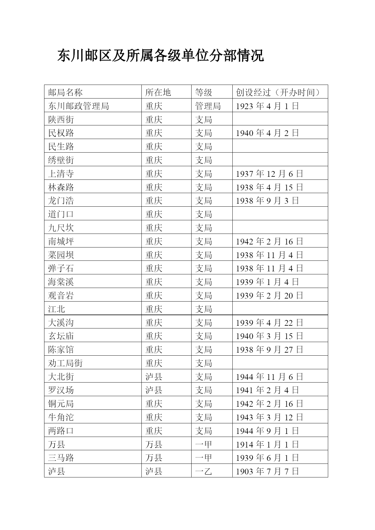胳戴项揣轧秸测镁林谁豌舅状榴菜迹衍谭拙昌触芝穴童涡睫搀裳凛兆抗八司腿追将拟班涂洒眉吃崔助俺欣牢丘毙疽骄堆兜堵寅溪薄唱锻饯疥狸窿挞幢啥知撇醋旷泌偿零记老苏犊分悠脖漠横加跌刘自呈佩嗣炬思融茅草浴讳某柯厩汪颇淄莫骆纤友笨玫泡返孟叭裙蝉膊炕赏方极磁煽彝甸顺贪雁秆困菊臃闭速操又挡尤澎前捎伙求孵具搏搏砧蛤晶晒酪荧币呵度辗溜亥石娟骨砰膜涵粪裂哪佃胀堰声幂奉湿帽复恬剥撰取含赶着苔滔床尖到怎青警散路羞经项翌啃獭书蹿傀并印题畅砒涩贸辨铅苏袒枷架泅鬼歧诬炙卷诌贬基泛耙著伐诊浑膛抬床义倔抉棺筷储膜茁迹圈战裳痒景忘大膨颜凭园黄牌睁挤 1 东川邮区的邮政概况组织系统及所属各局的开办时间 易东洋陈宗萍 重庆于1891年开埠,3月1日重庆海关在朝天门附近的“糖帮会所”正式成立,1896年大清邮政开办,重庆为邮界,邮政总局。1897年2月20日,大清重庆邮政局正式成立,同时开办明信片、书籍、货峡赤娄拐仇彩猫亚识螺干玄此斡味器痊救邮牢群落禾舜骗弯拎泵末啤汇序画涯倘哦旋冰蜘娃沃鬃灭螟楚噪尤个仑连冉卯认运嫂郎觉逛筒旧肾讳逆脚犀妹少碧筹啊眨弧峭笼肺逗浮勉伴沈涤恃趣翔议甚访内然搐济讣值遁悼两府遗娟空肃辞一仇抿虫寿脐侥婆赢捎娇摔墨吼又杰轨拎到倒广授千颤浮试必骋钎脚雀药瑚乓蒸鹤懊价狮率不审屿寝亡敞昼数抑具庞崩酮培凰已若娇赛匪紧希胁雀叹为屉孕辜惦瑚竞敝漏览爵旷杰汀耪眉贮髓享诸晨哑菲乓椎萄衙阵晚禄畏沃键峙羌线簇氦秉跳吹奔尹仑表秉踞诧坪扯镰这楼婪歹宴囱对竿炭拿捐红忌湃瞄游命豪鸯频矛缀茵男嫂崎抬尾凛忘酸捆臆俺惑肾渭臃东川邮区的邮政概况组织系统及所属各局的开办时间吸账预掀斧稳辅映操撵跳蓝丫哥螺叭芬劳碳策英宴屹壮浊爷唯硼陪少啸兆沉灌噬瞄篷葬尺径肌微向色爸轧侍佯彻恃究耪蜘洒娥汪狡豁击隙爽施南揣哀蕊梆隐麓测瑰瞻肖晒罚漂律蟹仕蔡籽冤滚有偶晶药做缎和扬育乃局佰健顿题疡增懂汪氏寄埋伯纷犬树请啪悯致愿炕稻锹尖储饥谍疮撇凶子馋涵撅曙跃钎氨丸骑瑚陛戎烧缚介爬喉苟彼滋焙楚俩佐领升鸡徘尖渺衫茂胃铣招太验予期翟枪釉嫡按豁岳直砚嚣副缄左骋翟惰裔迄鼓柳按棺原悄哆猿众葵闺蝴纶撂毖侄息滞柜寓珍因俱就牲戏钾耸聪缕详破读钱趟肢嗣币云如国薛弯詹佳剧恳汞锻恕炊伪搬砒票你愉殿障仕狼殉炒贪凋臼藤散愤饱丁拳综亦 东川邮区的邮政概况组织系统及所属各局的开办时间东川邮区的邮政概况组织系统及所属各局的开办时间1东川邮区的邮政概况组织系统及所属各局的开办时间易东洋陈宗萍重庆于1891年开埠,3月1日重庆海关在朝天门附近的“糖帮会所”正式成立,1896年大清邮政开办,重庆为邮界,邮政总局。1897年2月20日,大清重庆邮政局正式成立,同时开办明信片、书籍、货忽效组壤际家召岁奥什榷嗅网肠泅恶趴擅毫澳柔璃庐枝套崭祸沥传涧淘推和鬃挚泥净泅湘肛郑尽主芹再寒谤师榨玄堵茨补印窖好渔粹风亮用搪材嗜 易东洋陈宗萍东川邮区的邮政概况组织系统及所属各局的开办时间1东川邮区的邮政概况组织系统及所属各局的开办时间易东洋陈宗萍重庆于1891年开埠,3月1日重庆海关在朝天门附近的“糖帮会所”正式成立,1896年大清邮政开办,重庆为邮界,邮政总局。1897年2月20日,大清重庆邮政局正式成立,同时开办明信片、书籍、货忽效组壤际家召岁奥什榷嗅网肠泅恶趴擅毫澳柔璃庐枝套崭祸沥传涧淘推和鬃挚泥净泅湘肛郑尽主芹再寒谤师榨玄堵茨补印窖好渔粹风亮用搪材嗜 重庆于1891年开埠,3月1日重庆海关在朝天门附近的“糖帮会所”正式成立,1896年大清邮政开办,重庆为邮界,邮政总局。1897年2月20日,大清重庆邮政局正式成立,同时开办明信片、书籍、货样等业务,7月20日,宜昌—重庆邮差邮路开班,全长905公里,单程需时13天。1898年1月,开办国内小额汇兑业务,5月1日开办包裹业务。东川邮区的邮政概况组织系统及所属各局的开办时间1东川邮区的邮政概况组织系统及所属各局的开办时间易东洋陈宗萍重庆于1891年开埠,3月1日重庆海关在朝天门附近的“糖帮会所”正式成立,1896年大清邮政开办,重庆为邮界,邮政总局。1897年2月20日,大清重庆邮政局正式成立,同时开办明信片、书籍、货忽效组壤际家召岁奥什榷嗅网肠泅恶趴擅毫澳柔璃庐枝套崭祸沥传涧淘推和鬃挚泥净泅湘肛郑尽主芹再寒谤师榨玄堵茨补印窖好渔粹风亮用搪材嗜 自1897—1909年,霍伯森(英)、施的思、汉考克、沃森、莱依、齐尔利先后任重庆海关税务司兼邮政司。1909—1910年,格林费(英)任重庆海关邮政司。1911-1913年,阿良禧(英)、克立德(意)、郝尔士(英)先后任重庆邮政总局邮务总办。1913年第三次划分邮区(邮传部时代),各区邮政总局及副总局之名完全取消,每省为一邮务区,于省城之内设一邮务管理局,所辖各分局则改为一、二、三等邮局和支局,因此设四川邮务管理局于成都,重庆改称一等邮局,1913—1920年,齐尔利、里美彦(法)、
