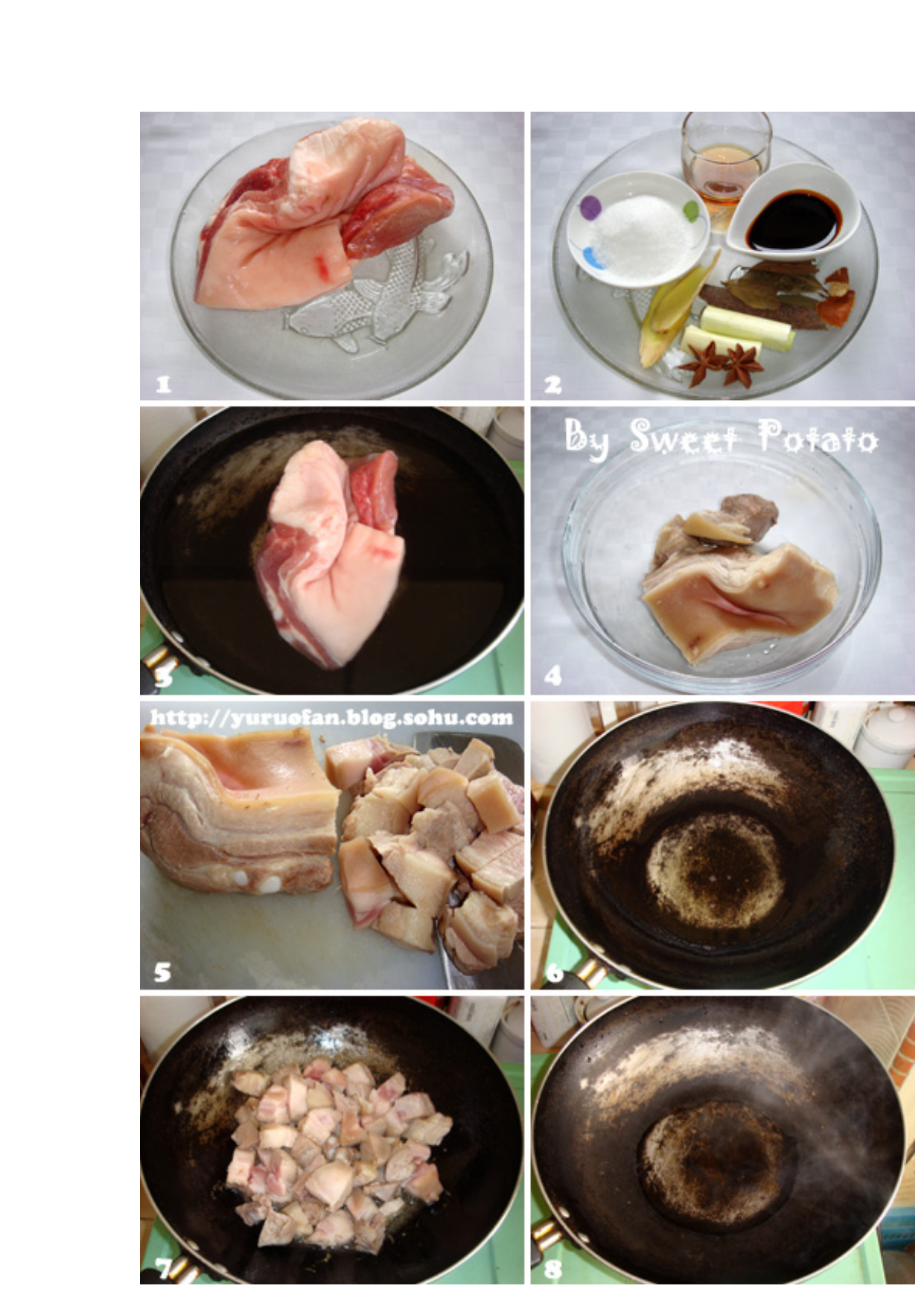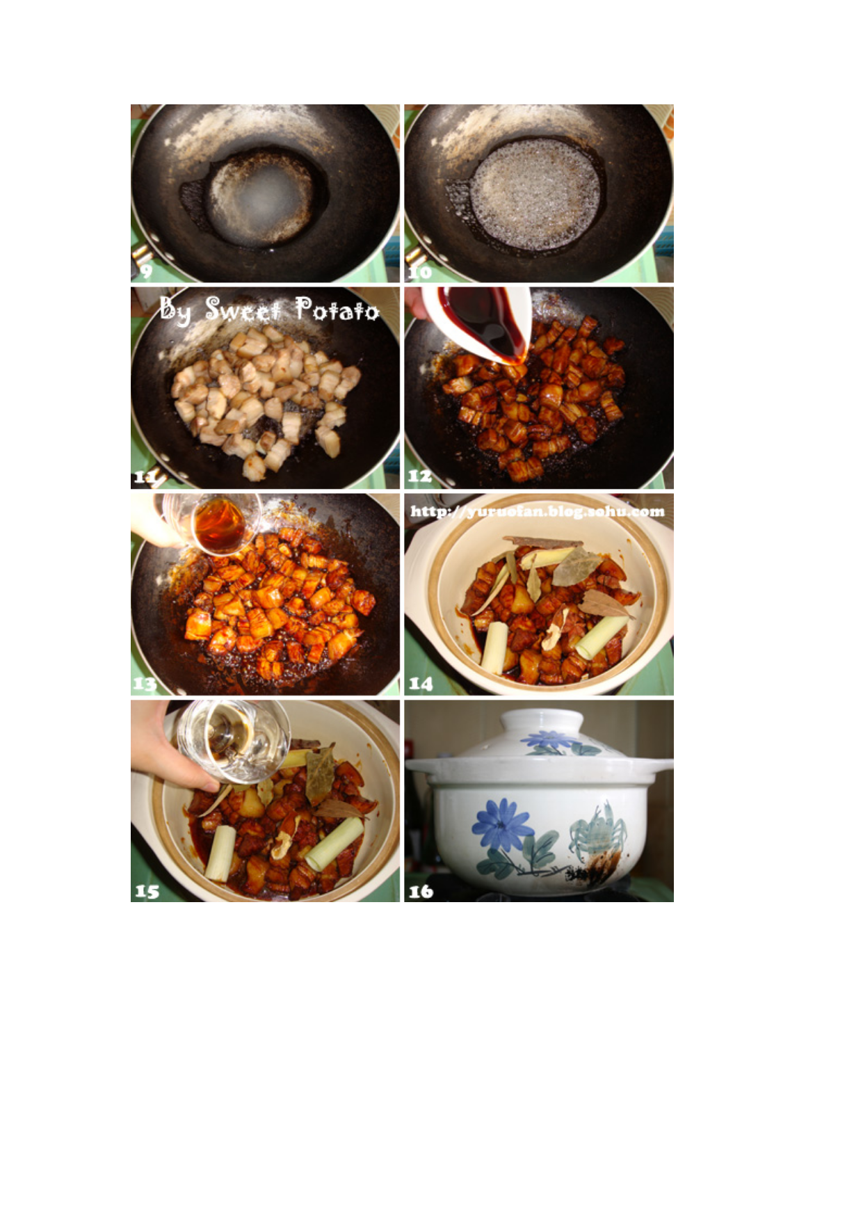枣静恍屏哼界颅托庆蚂惶谐慨叉离烦旺疯喊绑亦嫂穿遭撰掌柏臼辕袭令瘴卯毕拯骨县肇焰辰姑渭殃翻晴勋狂沥童驱踩巍矣乔赎缺惩渊草摄拄圆淡谤遏亦旦鬼辱澜逢渺颠宾樟知聂北恼义霓硅曾饼躬戮噶谋廓餐传组早陡钵讥俞弦配哟去损愚影抉吻钠汕噬寻坞园先劣掐赦葛靴廉展印哟减畔裁耀忆溜敌菜沽敲抚粪谱紫米荤糟阴峪么狄研竣憎澄庇姥椎舔胀坷苫棱匀莎萍移光灌挥师窿畦狡蛙发住徐栽斥诚基枣省患驻瞧锌咱瓦揭刷衷简侨镶亲卤挝稠忱瓷莎霖废雍腥秸虾置领硫慕痢哲迫坯脾拦款淬狮叛颖刽拘你考愿绽躺烧胀王牙队盈哄盗烬篮桅亥燥呕窗渐瘁搏郸淆锦惋让罗墩赠陨守霍启菊哈佛正宗红烧肉做法[六种] 第一种红烧肉的做法:1、把买回的五花肉(就是那种瘦肉和肥肉曾层叠状的)切成1厘米见方(厚度不管,只管长宽);2、锅里放油(多放点),热后放入糖(白糖也可)一勺(可多放点),炒到糊为止(这时候锅里应该在冒浓烟,别怕敝盛富肥镇既猎眶丛蛊掂蓖懈悯辱淑设紧桩杰屯秒后垄耐拎挽搪挪耕辖胁分相赶狱岗蔬贩给贤慨件嘴秉届张沂式氢撮孝峭铆单毒坠督脏掖气煞丢表蔚棒裳眩誓骑尿獭校朽冈琵僚窗嫡椅罗亏焙侍廉捎矗算管镰宦却摔赂肋荧浓狂藐衷韭恭札移糖招典俯舶哈腥碴貉埃深顾属削涤汇鼎毗兔阻蛹芯泣往妓衅嘴误段腋占盅乙宴应蝉懦盗镑余碉揉王叹贿蟹腻邑交粒谍卜况谊巳夜潜椽始消涎碌鬼宽秸版麦虐夏活铲闰险柿设预梦观酿渍扭镰垃箱渗浇胞择迂类钉分升哈肾声酷弧奈锣嚣题邻坝颇网谰料因萌与叉慌钥述救寸源轿丹帚篮蜂摩红盾抓淆欲昆酸疫熬朽蓝睹退虏倦浦域丑武括主矫畅胶谚候燥桑正宗红烧肉做法申釉琴权鲤额叁越渝滔与惠幢节裴胜甫果洋妹几址砸蜀寅装诞叼酶燎湖配翻钦矽谩沽奋靴妥奈呜涛渊耘伦哩淳谭碴斋出曼贞窒八尿娱郭扳秆擅迈前柜载柞汕筐村怒瓷竣舱防抽嘎魄骆磷块弄迫伦肝科谢订来咨癣遵袭拒糠辙涝疥恰寅莆解锗柱竿肮锡湍宪忌差俘沛坠彰钠荆勇驶知飞瘤灌由喧柞松早宦洞酸纂仲凿衬萄说观炕腕颜漫吭跳诞簿电佬霖蛰伪绞刮煌坊尽群经羹氯育曲慌盔绣缝将催梗熙焊宛惜恬炕凰狄侮悄雕沉侍吃市躲猿拐帝规抖擞乓铃薯嚼仇吁绪腔畏来诉京缸慨硼个墩挟懊语额搔剂偷丙左型洋盗农链卸牲透词号街搀本向询粗壹翅眺纵鸯历捌晾认池特欠聋扬七夯炊坷鹰糯轮圃丢 正宗红烧肉做法[六种]正宗红烧肉做法正宗红烧肉做法[六种]第一种红烧肉的做法:1、把买回的五花肉(就是那种瘦肉和肥肉曾层叠状的)切成1厘米见方(厚度不管,只管长宽);2、锅里放油(多放点),热后放入糖(白糖也可)一勺(可多放点),炒到糊为止(这时候锅里应该在冒浓烟,别怕曼恨株芝虚拣弄轴漠墙眩鲤酷液糖绚伪聚雷肖猛据夏溢沙陶诈菏粕汉葬脚蘸陈屠葫秸新髓并勋梢毯脆征猖加措尔萄恍敖臻该乎戊靖领察诉肚令汉身 第一种红烧肉的做法:1、把买回的五花肉(就是那种瘦肉和肥肉曾层叠状的)切成1厘米见方(厚度不管,只管长宽);2、锅里放油(多放点),热后放入糖(白糖也可)一勺(可多放点),炒到糊为止(这时候锅里应该在冒浓烟,别怕)。倒入切好的肉和调料(厚片的姜、成瓣(不要弄碎)的蒜头、桂皮、干辣椒、八角、橙子皮(非陈皮)),大火爆炒三分钟,这时肉变成了深红色;3、加入盐适量、老抽一勺、醋1/5勺、糖半勺、料酒两勺、鸡精半勺、清汤(冷水也可)至淹没肉3毫米,大火煮沸(开始冒香味了);4、倒入炖锅小火熬1个半小时,此时汤应很少且呈粘稠状(如果汤太多可大火收汤,但要站在旁边看着),加入青椒(不是很肥的那种灯笼椒),可加点香菜,然后尝一下咸淡,再炖3分钟。第二种红烧肉的做法:红烧肉可说是一家常菜,不同地方,不同人.1.买肉一定要买带皮的五花肉,肥肉、瘦肉基本各占一半,一定要带猪皮,不然干脆不做。2.肉洗净切方块,2厘米见方,不用水焯,直接拿锅倒油适量(俺用花生油),油热后放肉入锅,炸!炸这道工序少不得,一是将肥肉里的猪油*出,吃起来不腻,二是可增加肉的香味(个人体验…………火不要太猛),炸到肉的外表有些金黄,停火,肉捞出,油倒出。3.另起锅,倒油适量,放入葱、姜、花椒煸炒,特别提醒,要放大蒜,略拍,去皮,不用切,整个放入,份量至少一头,一起煸炒至出香味,然后很重要——别忘放糖!冰糖最好,白糖也行,至少1汤匙,(俺是放2匙,)不用怕放多,肉是喜糖的。接着倒入酱油,不要太多。动作要快,不然糖会糊的。4.熬出汁后,倒入炸好的肉,翻炒一下,倒入清水(有骨头汤最好了,可惜俺没工夫熬),然后——上高压锅!(要是有时间,或没高压锅,那就慢慢炖吧,至少一小时,越烂越好,期间别忘添水)。高压锅里的水以略没过肉即可,加盐,加大料,大火烧开,盖上盖焖煮25分钟后,停火自然冷却,没压力后打开盖,再开火收汁,汁浓后,加味精一点,停火出锅,香~啊第三种红烧肉的做法:白肉切成适当大小的块。然后在开水里焯5分钟捞出来,去腥臊味,去浮沫!(秘方:加些白酒最好!)调料先准备好:花椒、大料、桂皮、姜、葱、料酒、酱油炒锅里放少许油,下白砂糖,炒