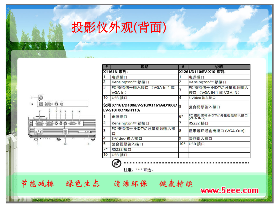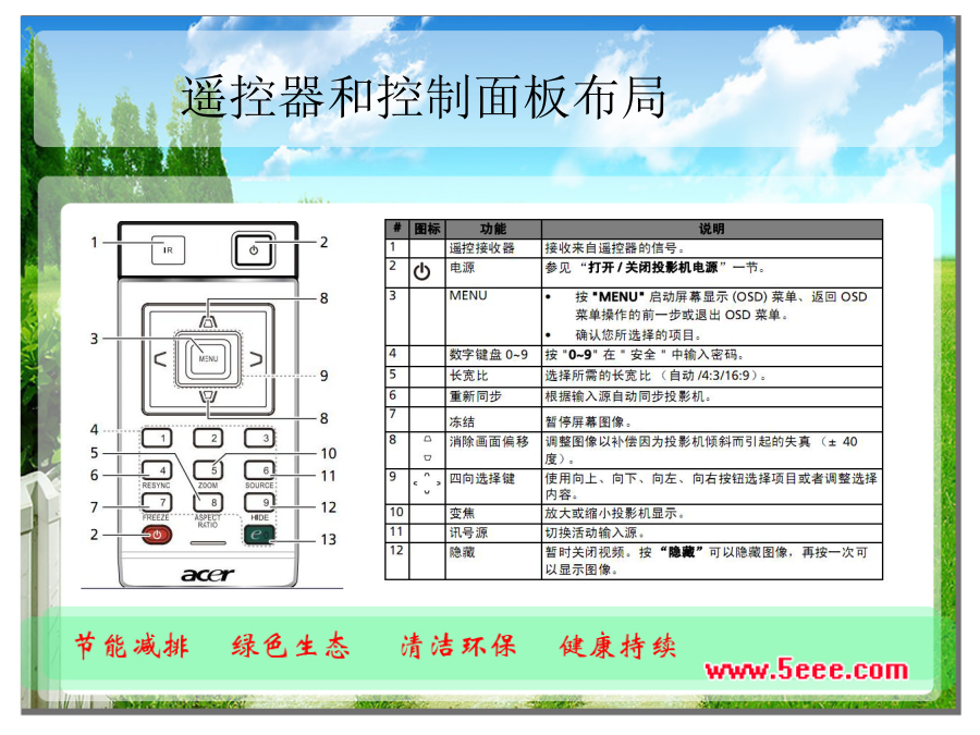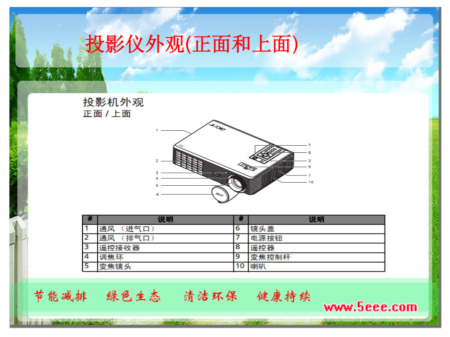 AcerX1161投影仪使用手册投影仪外观(正面和上面)投影仪外观(背面)
