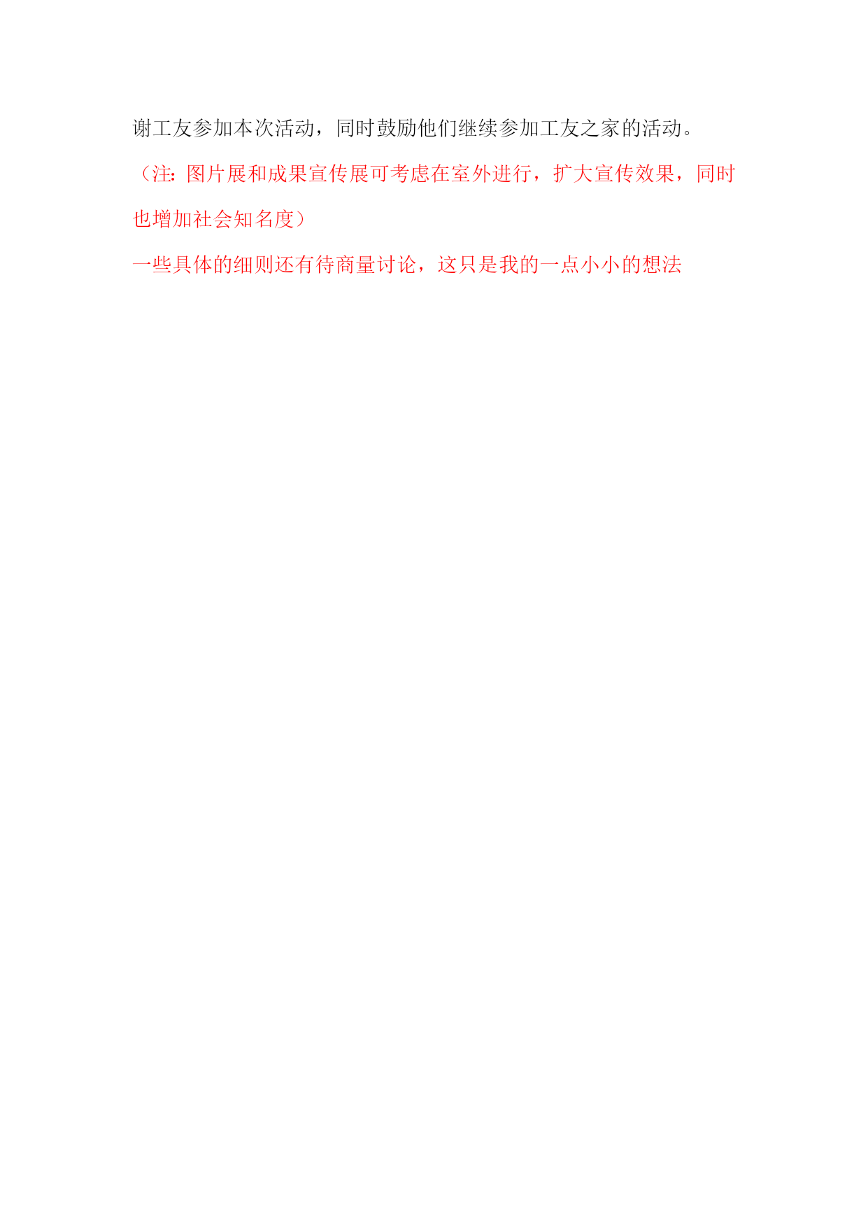 国仁工友之家技能交换活动策划书 活动背景:每个人都有一技之长,每个人也都有想要学习和提高的技能,在如今这样竞争激烈的社会中,掌握更多的技能可以为你增添光彩。技能交换,如今已成为学生和白领中流行的一种交换形式。与以往的实物交换不同,技能交换者只需要拿出一种技能,与别人进行纯技能层面的交换后,还可以学到自己想要的本领。技能交换是一种绿色的学习方法,许多白领为了给自己充电,同时又避免缴付昂贵的培训费和刻板的学习方式,纷纷另辟蹊径,到各种技能交换网上寻找对象进行技能交换充电。 活动主题:技能交换,你我共进步 活动形式:小组交流,两两搭对 活动时间:第一期(2011年5月1日——2011年6月30日) 具体开展: 1.活动准备:技能交换信息公开处、便利贴、宣传册 在室内提供技能交换信息公开处,主要准备大的底板一张,让工友们把掌握的技能和想要学习的技能写在便利贴上(例如:姓名,掌握技能:英语,四级水平,想要技能:画画),工作人员同时要登记好工友信息(姓名、联系方式、交换技能、需要技能、空余时间段)。 宣传册是方便工友了解技能交换相关介绍。 2.活动流程: 张贴技能交换信息——寻找合适交换对象(可以错开交换,我将我的技能教给某工友,而向另一工友学习需要的技能,ps:该实施方案待讨论)——登记交换对象——工作人员负责联系协调双方时间——技能交换——6月末举行一次技能交换成果展 3.活动宣传: 宣传册:作为本次活动进行前的主要宣传,让工友们了解技能交换活动开展的目的和具体流程,吸引更多的工友参与到本次活动中。 网络宣传:通过网站、QQ群、微博、博客等让社会各界了解本次活动,可在网络上公开技能交换信息,同时吸引其他各界人士加入到技能交换活动中。并针对活动的开展进行长期的跟踪报道,扩大影响,也提高机构知名度,形成品牌活动后,可开展更多期。 媒体报道:跟踪本次活动开展,形成新闻、视频等宣传文本,联系各家媒体进行公开报道。 4.活动总结: 6月末开展一次技能交换的成果展示,展示包括图片展、成果展、技能交换成果晚会。 图片展:主要为活动开展的记录,可从前期工作人员的准备、工友现场登记信息、工友技能交换过程等的图片记录,在工友之家开展为期一周的图片展览。 成果展:交换技能为画画、书法、文章等书面形式的,工友之家为其提供成果展,同图片展一起对外公开展览。 晚会:为一些诸如舞蹈唱歌技能交换的工友提供展现交换后所得才华展现的机会,晚会期间还可安排各种小游戏,提供一些奖励等,以答谢工友参加本次活动,同时鼓励他们继续参加工友之家的活动。 (注:图片展和成果宣传展可考虑在室外进行,扩大宣传效果,同时也增加社会知名度) 一些具体的细则还有待商量讨论,这只是我的一点小小的想法