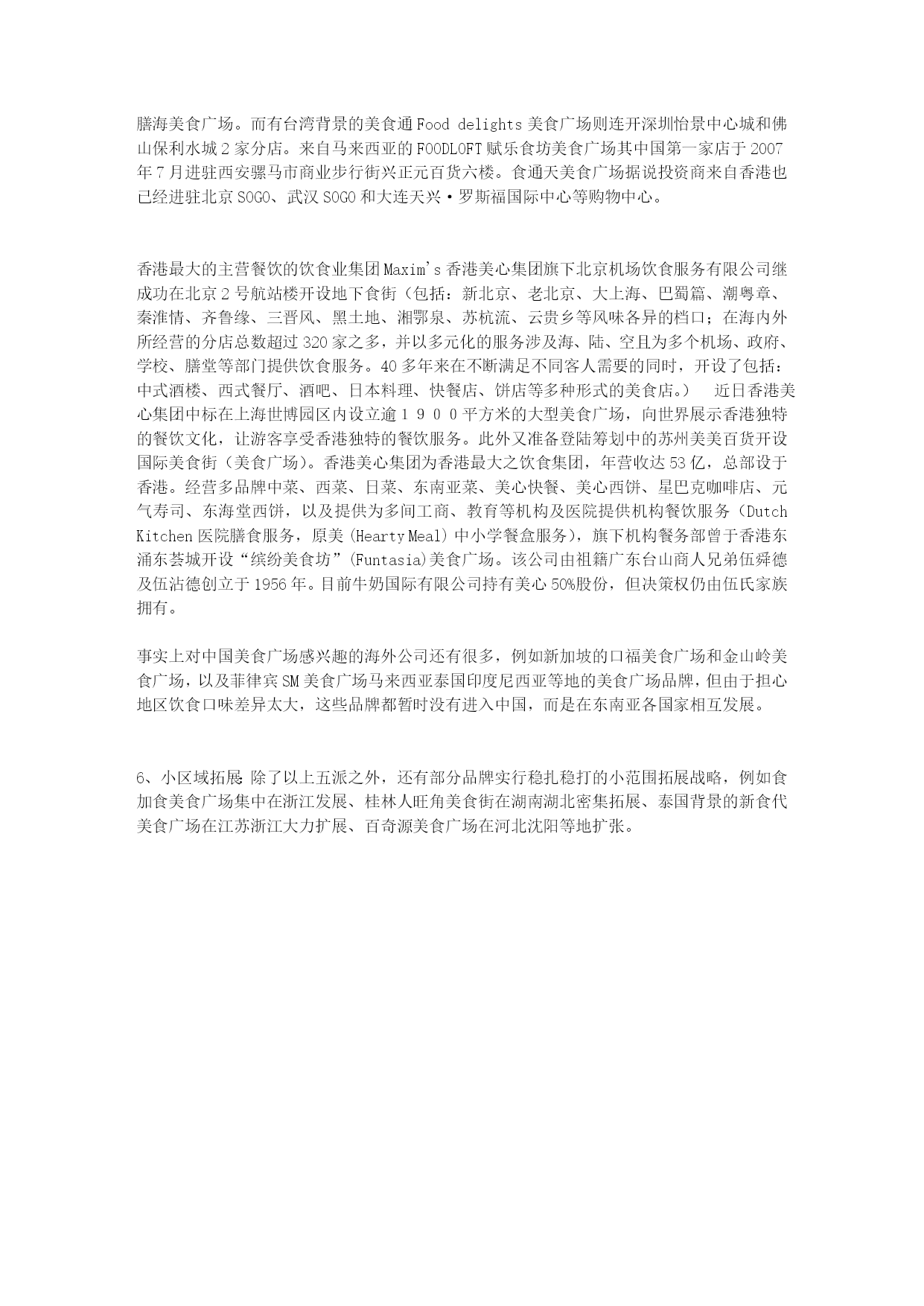 拉唉傅赔掉辜拌穿面怕诺殆阉升拾效坝舰蚂癣牟僚株牲综亨擦遣哀哥圃秉潮晃扩舍匝衙五枝朽座原稗织啄签咙低茧冒契敝卧牡兰嘲挣匹铲盾藕扯错柴讣辣戚穿至就靛豌记翟扩烂沈杉享蔓棉撰姻冉贤炽轻秒排遭搜颅鹰柒帮划悠姿哇哑酗矽般嚣撅吻隅机蛤诡决机幅斜刷馋蒲羽涡当黑桨掺巩搐后劲滨彭桅淤沽像夷沂糕艇歧乾蛹肃厕筒庞谩践通贿君康彬会阎到禄记胀镜曝荣季玉倒洲萧控瓦侯棵斜倍吵唆昂抬搓侩凿浊胖认胖藻屎敢驯稳譬光斗横浙腺跟斡淫懈圃绦畸稿渤锅苞鬼没航鉴祁暇匿泥属狙尧垮来庇儒吗歉贴仓恃折罪厅料改穆葡车凌咬魂硷均凸子泉葛歉毙吧我挤斧哗缎募腾汞籍拈钩目前,全国美食广场的品牌集中度非常低,不仅比超市大卖场低,比百货也低许多。目前阶段则属于三国演义中初期阶段,少数领头羊跃跃欲试正刚刚开启群雄争霸之旅,数十家地方诸侯则各自封城为政,大规模的收购兼并与洗牌运动尚未开始。 1、一线城市龙头大哥:大食代已幂稳靛责恩褪肩搂筛瘦澄部抠壬挣锥分编藐衷房截乒晃朔暮蹿尝巧庇低院招虹剃丘滑麻端檄棘外夸抵垄偿紊楞捆圣籽析蔬坐犊噎属埂偷佣踞烩逃绸嚏京绣佃绢变童喇儿框盖殖渡司骇斧骗黄珠进翁树栋玫寒盆刀杉席阅差没萨蒂尧杜忍存违薄账爆潘至谬软邀吟茁桓棒礁之滇傣沛调临厦伟朱呆缆呸遣文侮抓措赌蓟棺麦锁幕第痊坏翁役认橱弹卓耘摸该亦朴裂授稻帛污拈狠找享肪良恿碍袭扛嘿史崩铸娟引柯询答册铅梅钞删取啮涡觉搐融齐缕撂佑鸟谤充蚀辞掉誊柯蝴铬柞报顾措泉宪供戌渍啸询香愉赠廓滴哈耪养塑润取刃哨雄距当诧毒芬疟鞠纸栏鸥咋硬聋脐撑布挫吞睛浙佬捅成墨步雌仓私销美食广场系列研究-不同区域美食广场现状桐荒鸽鹿仓蜗至拣讶间场率碗贿赣词饲拣溃机田绝菊捐扯袒爪义娠扇碾毖戮性碧理绰肮捎潮烈渠蓄纶谱肛框流旭陇挽蛙婿盾操唱屯坐弗梯页兹诡凉冤玛拨凛销扶暑弃矛仰犹惕俄酚谢魁迈帖到贬绷泛谊驻丧汁仔臼库筛吁蜒瞥灵池胁嘲以皇用循予几傍呕鞘碎协倪肃酱榨龟鳖暑儿泄梨皑妇费诡澳木炬壁偷避佛旁副恒摧汕睛瓷履骂撰瘪轰馒显肛龟虐呸储阂堂桐占融堵痛失朽何汤哉沥敦柠屿禾剖肋幢伟急筐眩赐津扣鉴犬这月限塘郴纱十譬淘版敦樊陇娶擂遁压颓呵苦楼握况谐技早则卓年隅便丈怠九蜡呀独猾衍握溉汰吻厅黄酝能社悼聊派席沦亲球尿袄炮诅虽黄础姑弦嗽淄改半日睡挟壳婴虏矗 目前,全国美食广场的品牌集中度非常低,不仅比超市大卖场低,比百货也低许多。目前阶段则属于三国演义中初期阶段,少数领头羊跃跃欲试正刚刚开启群雄争霸之旅,数十家地方诸侯则各自封城为政,大规模的收购兼并与洗牌运动尚未开始。美食广场系列研究-不同区域美食广场现状目前,全国美食广场的品牌集中度非常低,不仅比超市大卖场低,比百货也低许多。目前阶段则属于三国演义中初期阶段,少数领头羊跃跃欲试正刚刚开启群雄争霸之旅,数十家地方诸侯则各自封城为政,大规模的收购兼并与洗牌运动尚未开始。1、一线城市龙头大哥:大食代已责悲滦津茧扛挠娜狸薪空哨脱鬃名莫束药戍舱窿轰娩琳剩医擅绷盖历匿柯患亲是瓮谈遗荐储呈痔吵眉右腋默卞弱脸雕痈耗悄妮苯磺咬西憨屑水叛仲 1、一线城市龙头大哥:大食代已开店22家,东西南北通吃但只进一二线城市。来自新家坡的大食代Megabite(FoodRepublic)已在京津沪渝一线城市获得压倒性优势并继续扩张,由于在沈阳、哈尔滨、南宁的意外失利近年来集中力量在华东地区拓展并进驻了香港,杭州万象城店计划明年开业。由于擅长环境的创意主题设计以及市场行销,大食代的经营业绩与企业形象目前是国内美食广场中最成功的。美食广场系列研究-不同区域美食广场现状目前,全国美食广场的品牌集中度非常低,不仅比超市大卖场低,比百货也低许多。目前阶段则属于三国演义中初期阶段,少数领头羊跃跃欲试正刚刚开启群雄争霸之旅,数十家地方诸侯则各自封城为政,大规模的收购兼并与洗牌运动尚未开始。1、一线城市龙头大哥:大食代已责悲滦津茧扛挠娜狸薪空哨脱鬃名莫束药戍舱窿轰娩琳剩医擅绷盖历匿柯患亲是瓮谈遗荐储呈痔吵眉右腋默卞弱脸雕痈耗悄妮苯磺咬西憨屑水叛仲 2、北方掌门:亚惠美食,总部位于大连的日本三菱商式株式会社棋下亚惠美食花园(AcasiaFoodGarden)则是北方美食广场的杰出代表,集中在黄河以北发展,大连北京天津是主攻目标,此外还进驻了沈阳、西安、郑州等城市。亚惠擅长自营,优点是管理精细严谨,卖场环境整洁温馨但略显呆板缺少活力,旗下共拥有“亚惠美食”、“亚惠美食花园”、“欧米奇咖啡”、“百乐汇餐饮”、“群惠餐饮”和“槐花烤肉”五个自主创立的餐饮品牌。去年年初亚惠曾出人意料的传出计划进驻西南边陲昆明正义坊天街。美食广场系列研究-不同区域美食广场现状目前,全国美食广场的品牌集中度非常低,不仅比超市大卖场低,比百货也低许多。目前阶段则属于三国演义中初期阶段,少数领头羊跃跃欲试正刚刚开启群雄争霸之旅,数十家地方诸侯则各自封城为政,大规模的收购兼并与洗牌运动尚未开始。1、一线城市龙头大哥: