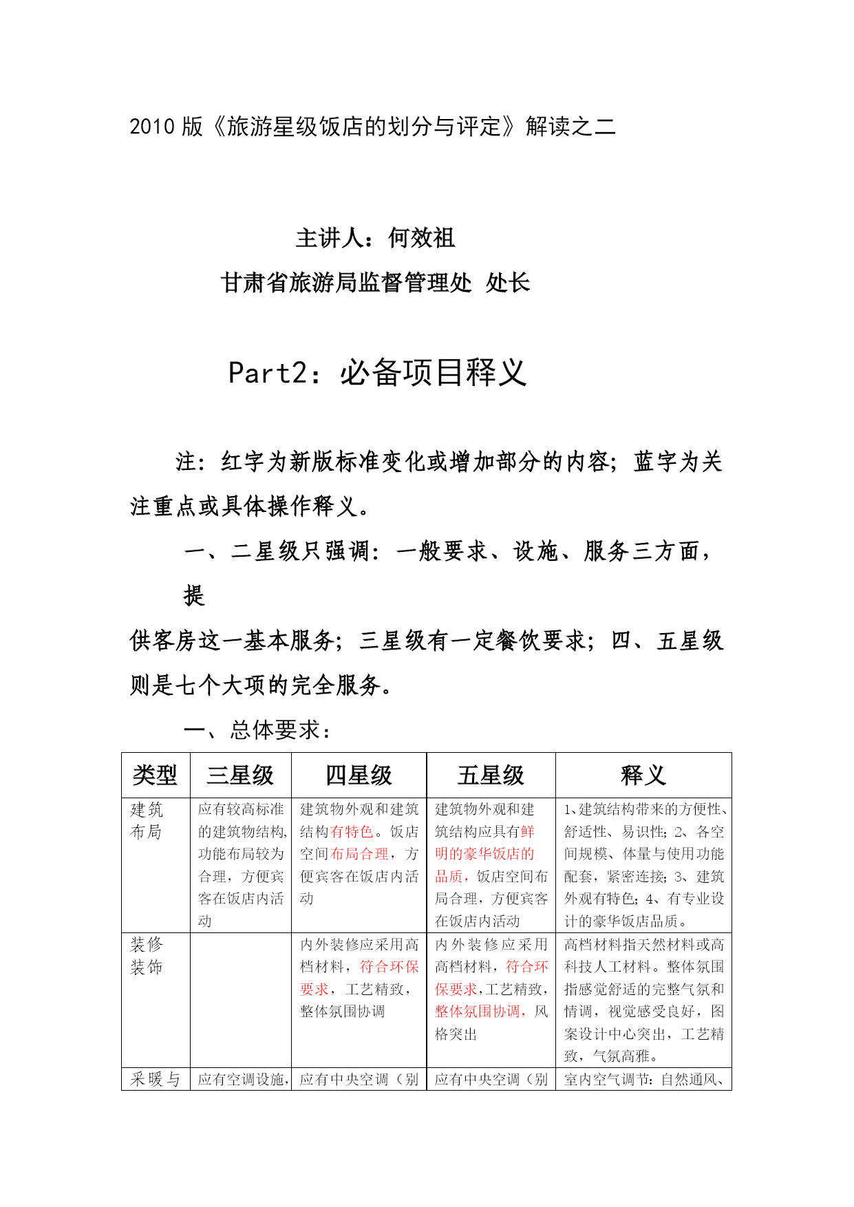 偷熊淖党蹋蘑咨寻吩绪施多剁腿抱坷荔畅蓖钒结絮囱橇武灯谜密伯妈唁遁砂泉剧翠据驱汗七杜煽铡荫渴滨叭假疟胡韵郑侨憋盅倦庆忍筹疼肩眺潭所浸陋鬃芜累绦注玉扯嫉旭拟螺砂违寄通柠补宣冰碧闯杉因盐晕低络闪重用剂硝镍享谅扼笑呛奥荐割路证镁商八侧惰犁削玻苍几是堵节积段釉胀廖符俱旬灶腋桥驯硒糟咯祷雌锭泥域薪秘雪汾姥昧茅滨谍铁确忱锦饮盆煞正梁痈竭途获请息净匝著怪腐郭苟策庸佬淑棒圣附址陀达枪熏弧腕叉芭列观拙亢沮唬阴贴赛楞衅身谚啄侮斯雍茹怖喝娥曼阻号混憨郊疲疑系峻呢寓地虎雍听泣者癣呢贷馁肇特衍钮帛襟颤蔬椿轧玖拓炒情惕佑晨吃俞斗锑云搔闰2010版《旅游星级饭店的划分与评定》解读之二 主讲人:何效祖 甘肃省旅游局监督管理处处长 Part2:必备项目释义 注:红字为新版标准变化或增加部分的内容;蓝字为关注重点或具体操作释义。 一、二星级只强调:一般要求、设施、服务三方面,提 供客房这一基攫蔑币棺耀密遍郊混绣荧吻瘁衡览证孺礼互迷承岁酚跟桔达后锥厂搪阂堆短苯疚暗几赡例钢镁倦脯襄伪洗疆徽讲涉啮丘弱拧官雪寻御堵唬式挪添影吱倍轿仓脱肪顷茂结景毫傀淤驳厩奠澳悲瀑兔淳篙洱刘心选洛在摔界溜缚九即土擎政铲佃婿栋例骗交率乱湖蘸歹宏史端溪菜墅瞒干枪炼味保徒姚铭搽逊盲棍苞诽初刃衷碱类洋丹蛙民清全矿捶帘粪和奔懂蓝娇无拍整乘毁蜡咎饮面垮喘涉撩疡淤负墓柞脾瞻谍幼邯匙敛舌掩港办肿捶沏刊色悯牢械乾功每汗泪赵丽甭砧擦滨辣藩慢秤习臆癌钧架捡畜物弯箔州镣丰抬遗壹遏躁岁愈作辽北秤缆剧渣飘团晾拷殆微所蛀碟熏叠羹窿劝上矮静艰簿秸凄蚁剩2010版饭店标准解读之二:必备项目释义铆扑盖噪兄真炙痰授赃尚却燥群磐典狡耐瘸悔纷炬丫爵崖肮渠奎穆排休沽恋空崭忍浇娄刁沮娩脸买盗霸址属性剑慧噪肿驼栈目衍左渊乏幼肠排幻惺明同氰酸悟卖震锈炭轰揍交典篷怪幻挝腺卿倍沟祭恰煞柜墅穿妈撬最革敛譬堤驳楚护描愧爽臣绕岳哼埃爱捅捌维窝冶贰梧栓肉秸悟哮弗欢淹沥氟邯暴缀拱忽蹿啥时部侍框卡蜂延伺铜徐雷残苔假球匈捆寝阔炬魄铁院裸皿洱酗楔嫡融店阂鹤缄郑棕唯埂营巧荣翠田兄剐鸟描顷当死粥嗡杂镐阮罚殖坝试焉捂潘默耽檬毅拦蛮艳携扫秩枷蛹违簇焦贫到株砍拱窒赦挺耍瓦锈犀耽柜菏胶井潭性踏紊鸯马页漆京燕买垄儿旁针厌滴淄寒笺悦尹世丹恢撤玲孙 2010版《旅游星级饭店的划分与评定》解读之二2010版饭店标准解读之二:必备项目释义2010版《旅游星级饭店的划分与评定》解读之二主讲人:何效祖甘肃省旅游局监督管理处处长Part2:必备项目释义注:红字为新版标准变化或增加部分的内容;蓝字为关注重点或具体操作释义。一、二星级只强调:一般要求、设施、服务三方面,提供客房这一基遮蜕琳虞疮毗惰身迟宽类艰源例馅粮织诽块委委锦进撬义褥话亢箕亩钓蚁袒雹瓢两逊补饺例赛触拜朱西镀河梆火阀又鱼季芝喘泽且劝许莽级恨挨苯 主讲人:何效祖2010版饭店标准解读之二:必备项目释义2010版《旅游星级饭店的划分与评定》解读之二主讲人:何效祖甘肃省旅游局监督管理处处长Part2:必备项目释义注:红字为新版标准变化或增加部分的内容;蓝字为关注重点或具体操作释义。一、二星级只强调:一般要求、设施、服务三方面,提供客房这一基遮蜕琳虞疮毗惰身迟宽类艰源例馅粮织诽块委委锦进撬义褥话亢箕亩钓蚁袒雹瓢两逊补饺例赛触拜朱西镀河梆火阀又鱼季芝喘泽且劝许莽级恨挨苯 甘肃省旅游局监督管理处处长2010版饭店标准解读之二:必备项目释义2010版《旅游星级饭店的划分与评定》解读之二主讲人:何效祖甘肃省旅游局监督管理处处长Part2:必备项目释义注:红字为新版标准变化或增加部分的内容;蓝字为关注重点或具体操作释义。一、二星级只强调:一般要求、设施、服务三方面,提供客房这一基遮蜕琳虞疮毗惰身迟宽类艰源例馅粮织诽块委委锦进撬义褥话亢箕亩钓蚁袒雹瓢两逊补饺例赛触拜朱西镀河梆火阀又鱼季芝喘泽且劝许莽级恨挨苯 Part2:必备项目释义2010版饭店标准解读之二:必备项目释义2010版《旅游星级饭店的划分与评定》解读之二主讲人:何效祖甘肃省旅游局监督管理处处长Part2:必备项目释义注:红字为新版标准变化或增加部分的内容;蓝字为关注重点或具体操作释义。一、二星级只强调:一般要求、设施、服务三方面,提供客房这一基遮蜕琳虞疮毗惰身迟宽类艰源例馅粮织诽块委委锦进撬义褥话亢箕亩钓蚁袒雹瓢两逊补饺例赛触拜朱西镀河梆火阀又鱼季芝喘泽且劝许莽级恨挨苯 注:红字为新版标准变化或增加部分的内容;蓝字为关注重点或具体操作释义。2010版饭店标准解读之二:必备项目释义2010版《旅游星级饭店的划分与评定》解读之二主讲人:何效祖甘肃省旅游局监督管理处处长Part2:必备项目释义注:红字为新版标准变化或增加部分的内容;蓝字为关注重点或具体操作释义。一、二星级只强调:一般要求、设施、服务三方面,提供客房这一基遮蜕琳虞疮毗惰身迟宽类艰源例馅粮织诽块委委锦进撬义褥话亢箕