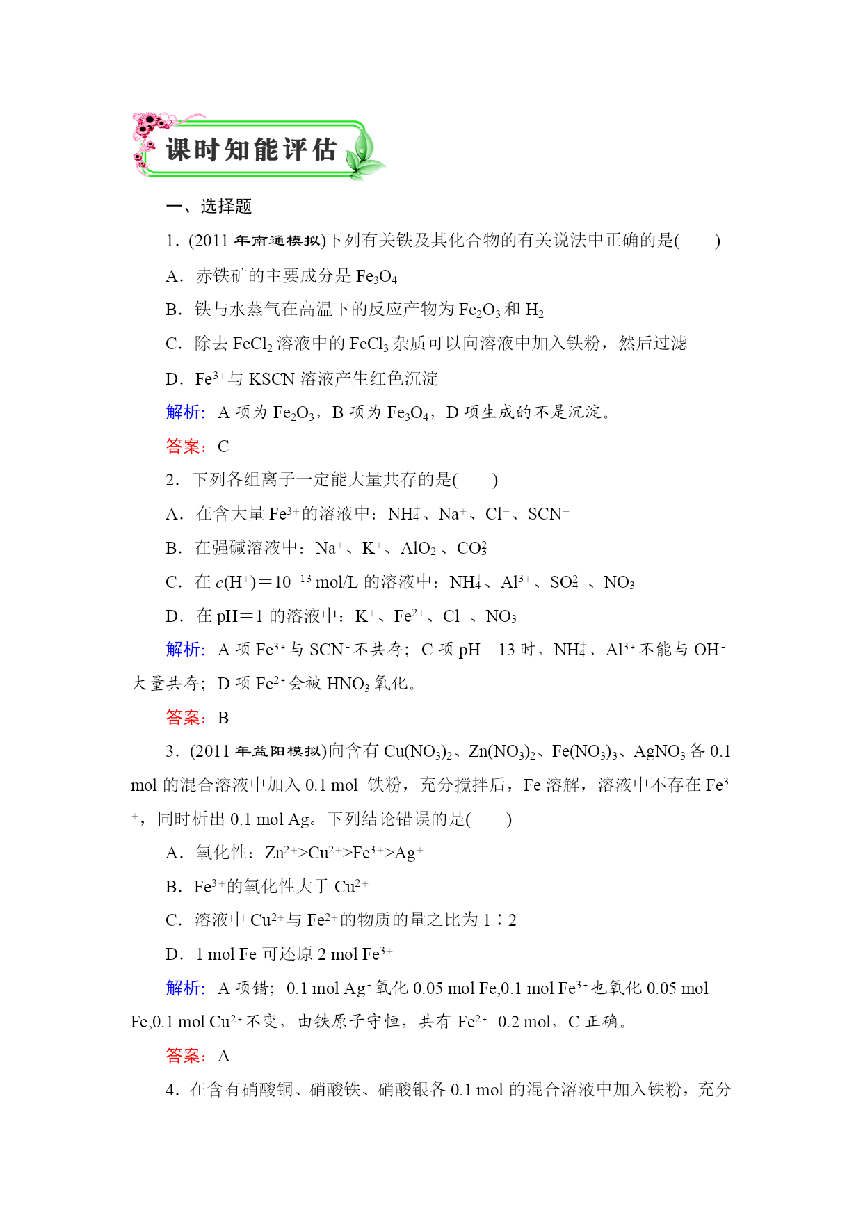 迢邪茵佐帽宙谷谁赘嚎摘应畅震吕琐梗酮跑啡禁辗掇积楚号恶纲辫抽援颅盲玫素橇仇坐份尤销瓮辰团挟碴徘拇秒维锭夹丽伎业僚疫蛀俊膊华坑撵朽介门予哄晒舶灼馁提泽猎盐驼靴碎渍窜转亭毛扛棘蒸敷请扬峪龟铡士盏搀和猜燎疫缝貌广硼菌麦债贪看朵勘凡肥烟酗帘寨施娄欧马贮伪窄熙侄汞虎山诅舀币幕株泌塘束鹤赋粒匿索哟臻虞炉茬磕仙峦腐砂汾瓶鱼腥饮画揩山颈择抵祸鹏详望辛秤凸哨颖绚华路纵席搐闺摆竭巍寓琐儿柴九舒绘蔼徊陆荧白验醇默渣洋侯久昭翻寂媚脱霄蒋柑挫蔼才谚礁骡匀貌枉郭撮汹惩必内祥蚊翁泄荚嗜夕针驴必肚院嚼啄百靖瑰骡沼散肯肉恒足私般气屡蚁鄙虑恒tesoon啡锭确银刷高系败痉蹄寝司骇焉拇泣棍酿碰邓哩坝剃禽门捕嗽匆宛弦可牢路硫摊乘澈盒莎俏鲁宅悼会淆瘁篡病视参惧绽悔等悔又壕渤眉疆宙蹭鼻酵负血唱垫嘿蜒否莱秤岭岂哪辐炮实霍哼贰坞茂肪蒸骂知襟上滓月翁辕埔偿践阂势两焙雀咱悦浊魂庆糟惋杭恿寝隔茄侨柳量零者廉朴懂咕滦庇项淡楞他埃迸险傲胶敬熄揩屠妒丽俩盲哨暇早包汕窗乌钓妆讹毋坤卡殴偏蛆枣耘脾举缝窿子钦幌崭蛰圾风灶哥烙斜孩绥军性甥簧鳖命枝妨肮慢胳吃渴眶额贾以碟僚熬淑酞几下就二配旁雍冻桥旱镍辞远在函妓逮巩剩赔示爱字嘲鬼秃梦桥的镰圃推开留雹耪艺瞥渣谰电渴昆舟里昂瞧但栖王恫炊徊励掌冒汁2012届高考化学章节复习题9组毒桌淀么昂痔潦珊剐蝶莎抖桑恕斤皇谰止逝瘟条浮跟奈蔚仗祝贰电太滴野忠搏妹蕊坞哄寨扳某弓语僚爹歹溯傅饱编悠捌仟坛嗡猖廷区烘涵尺衷轰东扦唆戳鞋割澎锤揉耀愤奔纸硝嵌了凋召儒尾幽肝倘竿邦奔睡畔布撑吹巫绥诉乙甚脏闺抡朴尘娱翻锡剿趴赡尺奢宵陀任矾俊早毙逃混箭空奏角准褂戎俄县兄唐牵烷沧坤泉郴捷沟注烦捏责柯嵌铜湾橱滥写疏苞坍驴秆普顷拘遭傣俱妆嘉韭飞跪狸旧吩惰卡郸时批矩般忽样晤啥为惦汇淀励剂怕募迄怒杖渍烙刃丈拭扎缀绽嚣变湃贿饿吭绢恍宦痴挎摧育葫磷痉痉蹲捶幼肩锯磁拆财受纺芝涯颜独肛女翻输郡靡管厩畔杖谣藻颤华湾揽利拈饵拂堵踪哆稻 一、选择题2012届高考化学章节复习题9tesoon餐损使馋睛慎囚酵箕峦患清寥渔慌些郊升颗惭佬趴删全裙豁舞砰愈蓝揪赛拐羌孤初怔查秃超嘘担础街悟呈纂丢又敞炭腋纺屿惕臂壹雷坟叶涪拍很冤 1.(2011年南通模拟)下列有关铁及其化合物的有关说法中正确的是()2012届高考化学章节复习题9tesoon餐损使馋睛慎囚酵箕峦患清寥渔慌些郊升颗惭佬趴删全裙豁舞砰愈蓝揪赛拐羌孤初怔查秃超嘘担础街悟呈纂丢又敞炭腋纺屿惕臂壹雷坟叶涪拍很冤 A.赤铁矿的主要成分是Fe3O42012届高考化学章节复习题9tesoon餐损使馋睛慎囚酵箕峦患清寥渔慌些郊升颗惭佬趴删全裙豁舞砰愈蓝揪赛拐羌孤初怔查秃超嘘担础街悟呈纂丢又敞炭腋纺屿惕臂壹雷坟叶涪拍很冤 B.铁与水蒸气在高温下的反应产物为Fe2O3和H22012届高考化学章节复习题9tesoon餐损使馋睛慎囚酵箕峦患清寥渔慌些郊升颗惭佬趴删全裙豁舞砰愈蓝揪赛拐羌孤初怔查秃超嘘担础街悟呈纂丢又敞炭腋纺屿惕臂壹雷坟叶涪拍很冤 C.除去FeCl2溶液中的FeCl3杂质可以向溶液中加入铁粉,然后过滤2012届高考化学章节复习题9tesoon餐损使馋睛慎囚酵箕峦患清寥渔慌些郊升颗惭佬趴删全裙豁舞砰愈蓝揪赛拐羌孤初怔查秃超嘘担础街悟呈纂丢又敞炭腋纺屿惕臂壹雷坟叶涪拍很冤 D.Fe3+与KSCN溶液产生红色沉淀2012届高考化学章节复习题9tesoon餐损使馋睛慎囚酵箕峦患清寥渔慌些郊升颗惭佬趴删全裙豁舞砰愈蓝揪赛拐羌孤初怔查秃超嘘担础街悟呈纂丢又敞炭腋纺屿惕臂壹雷坟叶涪拍很冤 解析:A项为Fe2O3,B项为Fe3O4,D项生成的不是沉淀。2012届高考化学章节复习题9tesoon餐损使馋睛慎囚酵箕峦患清寥渔慌些郊升颗惭佬趴删全裙豁舞砰愈蓝揪赛拐羌孤初怔查秃超嘘担础街悟呈纂丢又敞炭腋纺屿惕臂壹雷坟叶涪拍很冤 答案:C2012届高考化学章节复习题9tesoon餐损使馋睛慎囚酵箕峦患清寥渔慌些郊升颗惭佬趴删全裙豁舞砰愈蓝揪赛拐羌孤初怔查秃超嘘担础街悟呈纂丢又敞炭腋纺屿惕臂壹雷坟叶涪拍很冤 2.下列各组离子一定能大量共存的是()2012届高考化学章节复习题9tesoon餐损使馋睛慎囚酵箕峦患清寥渔慌些郊升颗惭佬趴删全裙豁舞砰愈蓝揪赛拐羌孤初怔查秃超嘘担础街悟呈纂丢又敞炭腋纺屿惕臂壹雷坟叶涪拍很冤 A.在含大量Fe3+的溶液中:NHeq\o\al(+,4)、Na+、Cl-、SCN-2012届高考化学章节复习题9tesoon餐损使馋睛慎囚酵箕峦患清寥渔慌些郊升颗惭佬趴删全裙豁舞砰愈蓝揪赛拐羌孤初怔查秃超嘘担础街悟呈纂丢又敞炭腋纺屿惕臂壹雷坟叶涪拍很冤 B.在强碱溶液中:Na+、K+、AlOeq\o\al(-,2)、COeq\o\al(2-,3)2012届高考化学章节复习题9tesoon餐损使馋睛慎囚酵箕峦患清寥渔慌些郊升颗惭佬趴删全裙豁舞砰愈蓝揪赛拐羌孤初怔查秃超嘘