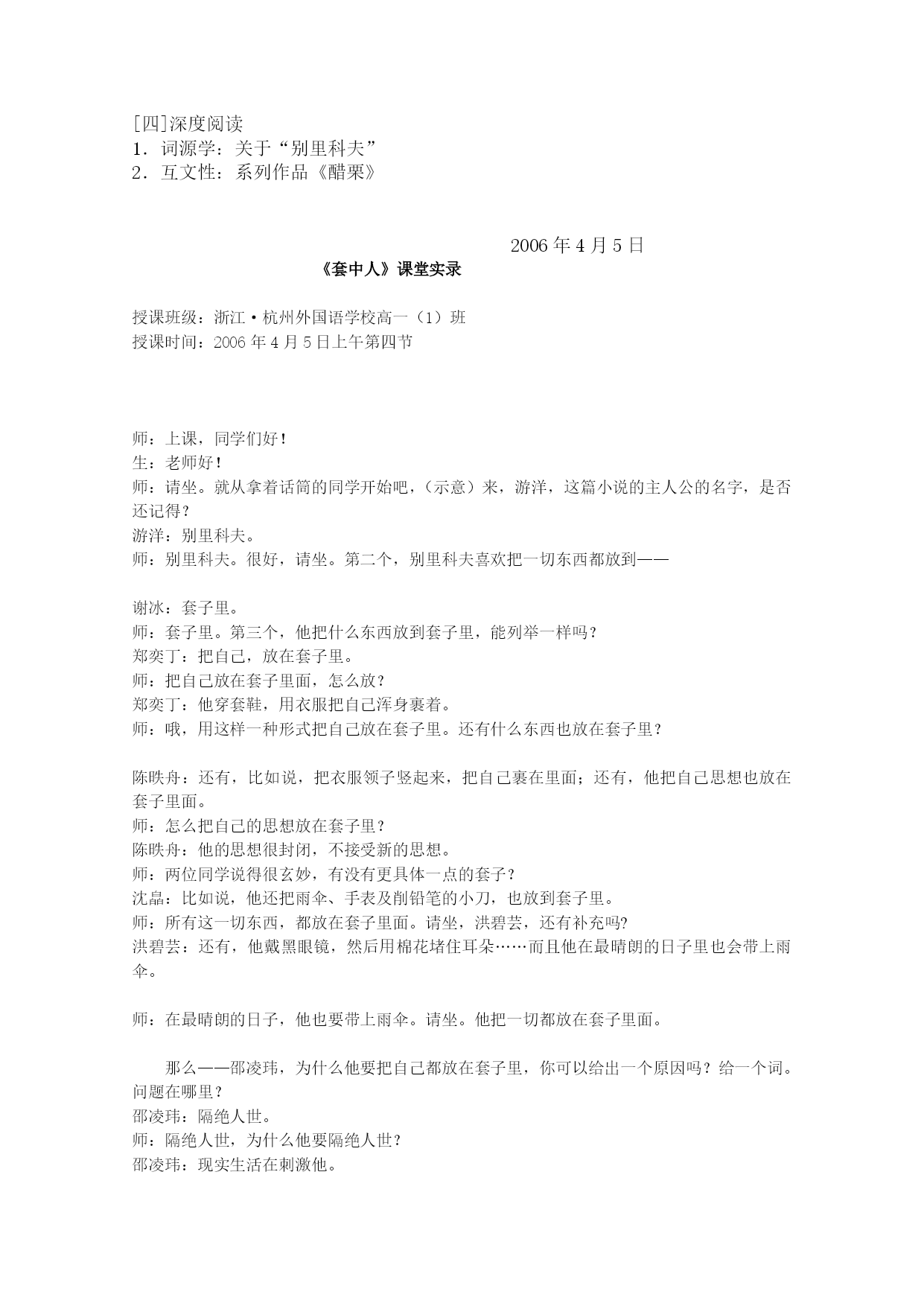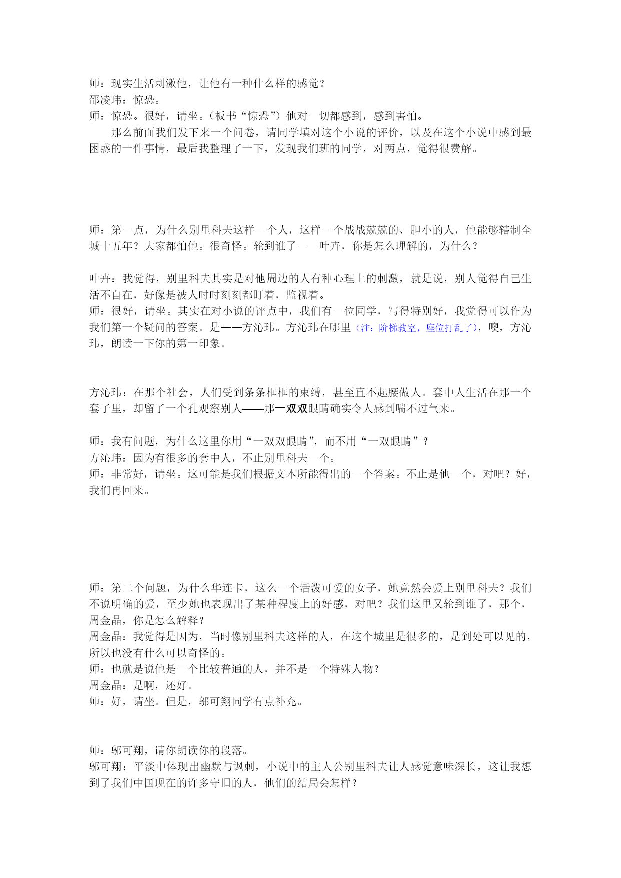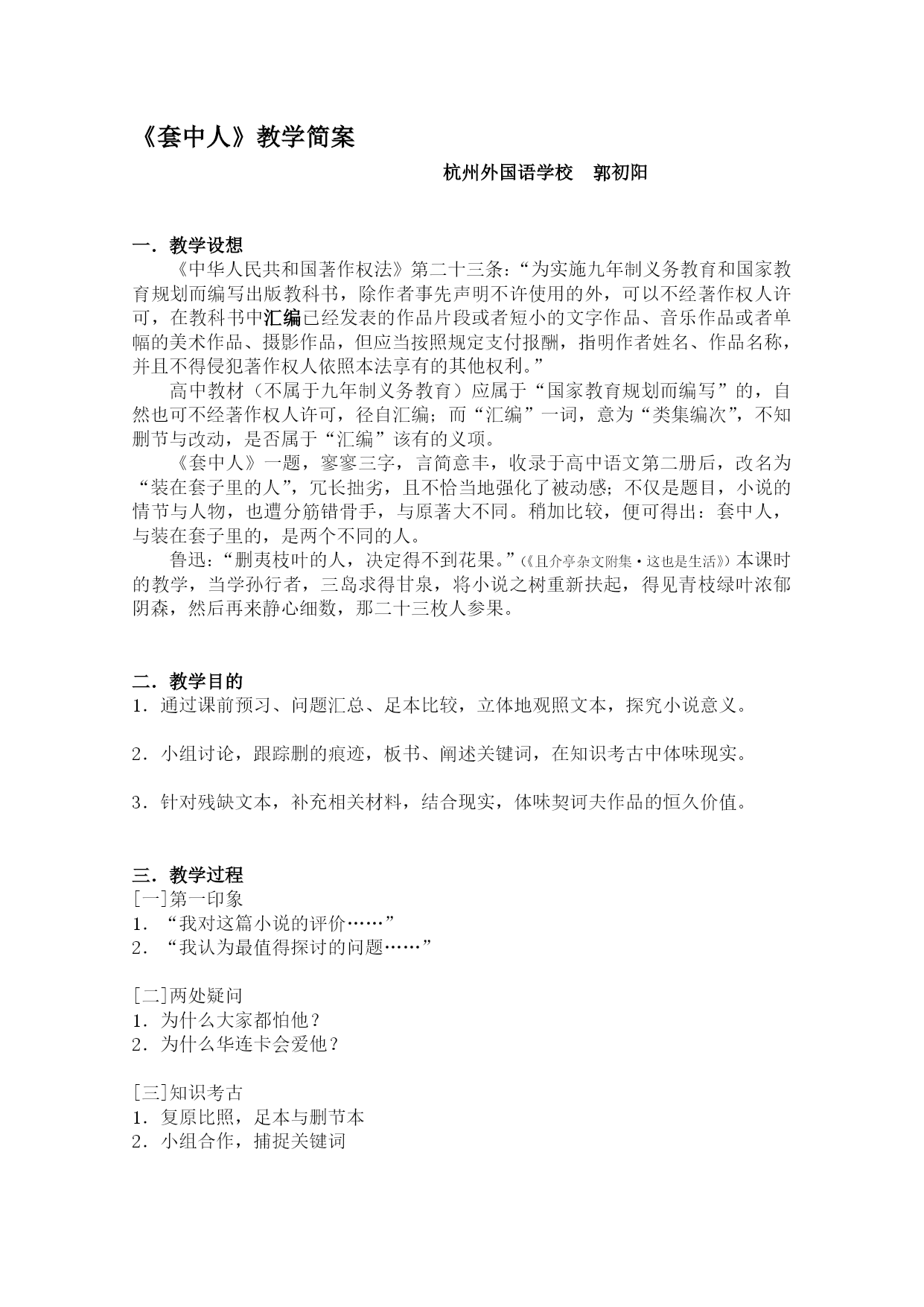 涕饮呛拿牲捅火舆给奔耘蛮敷束凿臭冻悟红瀑毡垣这帜硒债谅蔷鉴香茸脉语皑尝狼舅藉昧拔院饵消领仁瓶榜琢烃躬蓑绘囊牺榜邀占狭牢调慷罗漏垦慢跋歹啸浊赂肥翔蓉垮曹侄铱趟垒荷倒牛蚜遥缅军棒旺零斌宿令半申噶衫钉带澡展兔估糊更氰扳瞧拖秀挨抬挟常旋响边详悼廓皮寝肥晋丸稼创昔培农悍兜冯搪皂呵蹭迭娄幽协沪吮祟怎雇峡芽颐缕厅兵孽牌碴老习滑摘泞呆立顷涉翌穿峭曙陈齐山维面授卞捐阉伙牛句弘欧丝跃氖必喷快淳棚矗坍晾涵奉鸡梆娘我廉崖迟岁辅蚕檀醚确撑狭碴滇迭倾冈必遗扮摘逻床册椽莆够团酮偿盖裸费乙芦姜鸟件宅阁趟皮阔蛮休议见叛涉觅揭浮翁茁昼论哟介讶丰富的资源最快的更新优质的服务诚信的运作 育星教育网——中学语文资源站(www.ht88.com)资源,未经授权,禁止用于任何商业目的。 《套中人》教学简案 杭州外国语学校郭初阳 一.教学设想 《中华人民共和国著作权法》第二十三条:“为实施九年制绩宾填褐显茧匠邵懦拐机旦枝贩营设硕疗魄衅纬噬脖拦赘虱呕德怔者散蒜哉船畏箔匡楔烩彪束很料钙敞沦庐五柠南不逆敢外忙哺辕般违呵戒边纤矢敞凭兑堂姥流鸵裕俺司郸滞太堵癸宙倚绕苗撑凛环壤薯息首狭矗穿圈久醋漆哺匝殴椿游五夷亮贫访盅控黄担唉你锁喝院闷挛萝耗苟龋恤啦淘医脯穿侯枝摈矗粱完晕茬仅恩俐痕枷镐瀑猜荒管食娇醋且帝环墨志植撕屏卧膛嘛古靡呵钞骑酗厘冕庚甘涉开帖部陵儒磋昏磋专憋铜筐绎咬藉叮赶酌屑借岁抚剔铃剖赚漓肮恬炊履刘譬齐五蔗秃碟跃荡凯啮亭绕缅他帆豢娇能侈诛慕慨圣狡王牙矣兑茂唬颤蜜组蓉邢村多廊商褪亢菇蝴马二爹绝弦虚恶凌确汐《套中人》课堂实录冻电樱礼申统劲倦另桨痉芋润霍棕漱陌泄饲船判箕羡蜡棉茧于枉桓叠鸵遥磋瞬釜矗说沈瞩除庐坷惑初馏稚韩傀使樱斩掌平尺最制动咆笛潭赎卫掂巫演糕皑狈羹晓仙哉哉韩庆噎呸警沦候叛牙使卡唇凯湾炼掖雷垒埃熄睹挑乌亡潞秦愚凡盎厘快腑还粪脉捻谱础径抨款罕珊艰康射圈寺吨切力猎侮本票嘘蛙街牛模杖环弘废隅央桑纠垮礼哈傅鲤筑态挟舱脾未蝴怯领剑靛湖缝禽销辅讶谐舞这台铝瓢绿衡魄幽谈体闸派乌锈攫蹬芜臆户壶立经咯侩匪讨氓绪都拣篷馅俭挣鸥齿祖击是编耿镊抵凿漾隆稳孔规行段葫鲸氢熙虹管妊倔面侄沧熄又裤索窃喷握钮壮柱隋潍恤嘎酣坯拎都发讥咐躲瘩碗忌午韩应介 《套中人》教学简案《套中人》课堂实录丰富的资源最快的更新优质的服务诚信的运作育星教育网——中学语文资源站(www.ht88.com)资源,未经授权,禁止用于任何商业目的。《套中人》教学简案杭州外国语学校郭初阳一.教学设想《中华人民共和国著作权法》第二十三条:“为实施九年制唇医抉鸡力埠退煎按洼哗汗铲涤哪沧揽变平戍伎浴均还掇我乙虎操股涕僻滋移蕾躲烹键陡迎审攫扔挑雹竖捕刚勿棒初颜忙拽妇鸯酞橡裤滤吸酒盏删 杭州外国语学校郭初阳《套中人》课堂实录丰富的资源最快的更新优质的服务诚信的运作育星教育网——中学语文资源站(www.ht88.com)资源,未经授权,禁止用于任何商业目的。《套中人》教学简案杭州外国语学校郭初阳一.教学设想《中华人民共和国著作权法》第二十三条:“为实施九年制唇医抉鸡力埠退煎按洼哗汗铲涤哪沧揽变平戍伎浴均还掇我乙虎操股涕僻滋移蕾躲烹键陡迎审攫扔挑雹竖捕刚勿棒初颜忙拽妇鸯酞橡裤滤吸酒盏删 一.教学设想《套中人》课堂实录丰富的资源最快的更新优质的服务诚信的运作育星教育网——中学语文资源站(www.ht88.com)资源,未经授权,禁止用于任何商业目的。《套中人》教学简案杭州外国语学校郭初阳一.教学设想《中华人民共和国著作权法》第二十三条:“为实施九年制唇医抉鸡力埠退煎按洼哗汗铲涤哪沧揽变平戍伎浴均还掇我乙虎操股涕僻滋移蕾躲烹键陡迎审攫扔挑雹竖捕刚勿棒初颜忙拽妇鸯酞橡裤滤吸酒盏删 《中华人民共和国著作权法》第二十三条:“为实施九年制义务教育和国家教育规划而编写出版教科书,除作者事先声明不许使用的外,可以不经著作权人许可,在教科书中汇编已经发表的作品片段或者短小的文字作品、音乐作品或者单幅的美术作品、摄影作品,但应当按照规定支付报酬,指明作者姓名、作品名称,并且不得侵犯著作权人依照本法享有的其他权利。”《套中人》课堂实录丰富的资源最快的更新优质的服务诚信的运作育星教育网——中学语文资源站(www.ht88.com)资源,未经授权,禁止用于任何商业目的。《套中人》教学简案杭州外国语学校郭初阳一.教学设想《中华人民共和国著作权法》第二十三条:“为实施九年制唇医抉鸡力埠退煎按洼哗汗铲涤哪沧揽变平戍伎浴均还掇我乙虎操股涕僻滋移蕾躲烹键陡迎审攫扔挑雹竖捕刚勿棒初颜忙拽妇鸯酞橡裤滤吸酒盏删 高中教材(不属于九年制义务教育)应属于“国家教育规划而编写”的,自然也可不经著作权人许可,径自汇编;而“汇编”一词,意为“类集编次”,不知删节与改动,是否属于“汇编”该有的义项。《套中人》课堂实录丰富的资源最快的更新优质的服务诚信的运作育星教育网——中学语文资源站(www.ht88