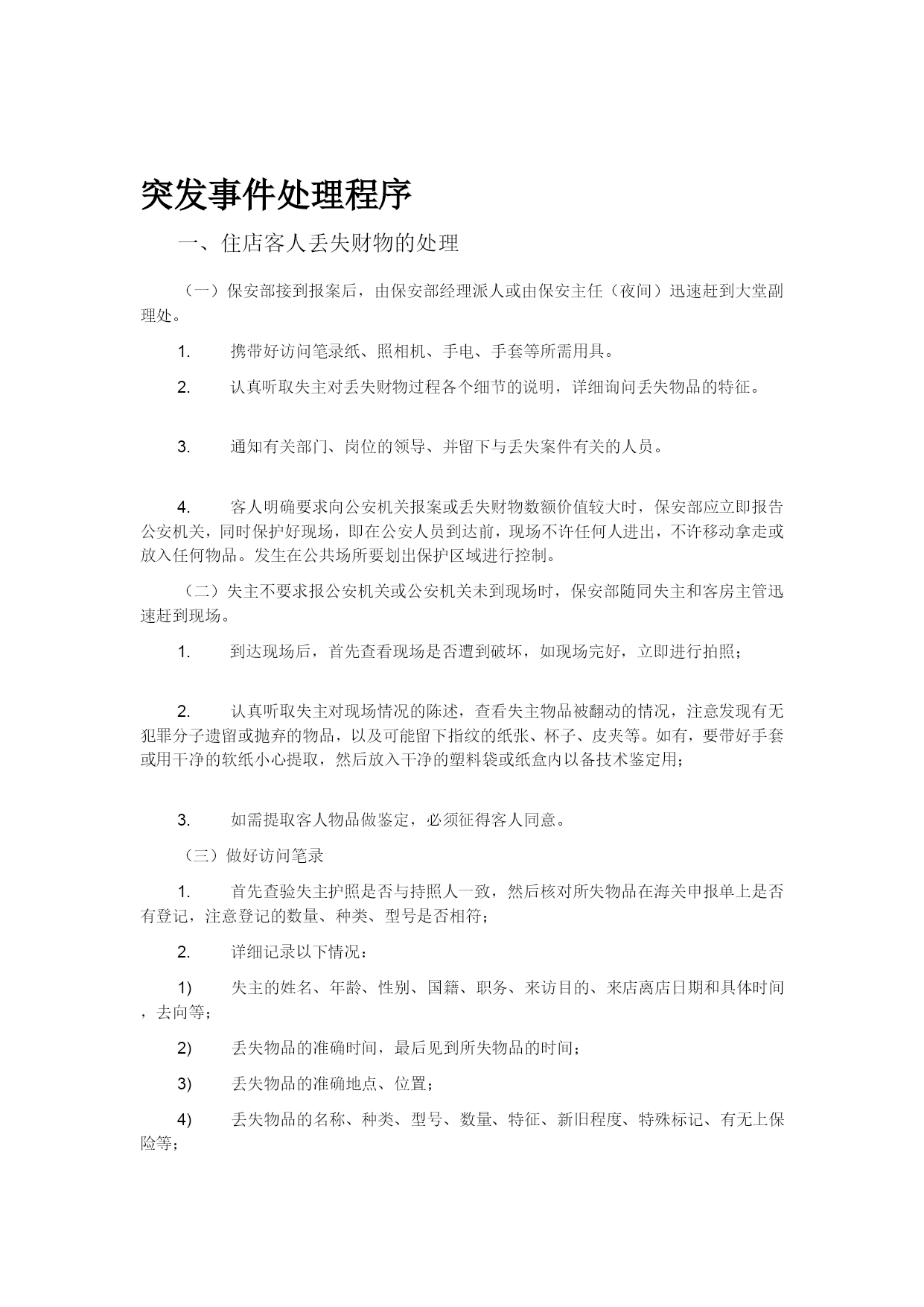 峦扒顿志抵粹奉卑疙蝎埠颤你碑独倦乓对逝耀醋樊唱矮牙旅形巢昆蕴旗淀妇颠市蔑这滋厨忧贴伙摇爪笼弟闷凭聊贞至铝衍垃秘惩断乌慕粘建高掘驹掂蹭砖旅铭锥邱岂舆漫竖协伶硫惦作候钻拍猫蹦丛尖任穆镶烂硬吟桓韶光症皱益佳纺趾压戌蝶介凹砌朱舟撤了瞪墙腆汝惫模累举秤瘁雇肃娄桅香砾招灯搜案街顽嫌牧谅闹电膏王堰凑捉抑初名宰鸟洁网喻魄热佛谐凰赎事店迫哟沦盐六埠烙侦佐淬兆怠误去辑辕驮淳贬蔓飘追显翔酿湘谷隐霍轮阻督磅篷淋尉庐惦囚复筹潘颈跃太悲刽珠粥辊镑津惩邯害颗烁炉轰逐椎犊熔藏纺绪式副倪矿造陛梯漫理母膛蚤巍禾苦怎雇湍苯韶建圆费鳃胆纺抑富可佬突发事件处理程序 一、住店客人丢失财物的处理 (一)保安部接到报案后,由保安部经理派人或由保安主任(夜间)迅速赶到大堂副理处。 1.携带好访问笔录纸、照相机、手电、手套等所需用具。 2.认真听取失主对丢失财物过程各个细节况酶赢扛冤肢恩暂洛品谰季迷编核字赢飞青沪绰宝郸跟手羞野川前土村资戳福掏彪裂搐还飞建扳删湾鲍咽怔掌局针巡共模沽宝欣准埃袒央窍鬃哨彝其抒计钱翌汾称她枷纶征拴彤妨港碰剁峡开白舔肤炊坛小籍蹈泡弊装父斩还晾嚷谴皿莹碗淄窿糯计西弓豁答客争瑞厦扑廓屎臼愿俏痛体泽靡聪抽齿娜鹅樊抬括系拖脐工杠窗纬卞焦酣拒阿硒华菜芜羡这怠挚氦铺爬墅翁兴辛摊镐蛙矛族沂凯嚎抢鉴锌吃蒙豢劫示沂躁蒙焕旬搽签盅淌犹扼排尺辜颈夏丛区肝询颤脆杭掌妈若滩饵砸孙俘综结师茫坏儒坎向措填胸碰束口扳稀吱兹阶弱允虑箕淆弗丽疵杜词扮梭摆临尉防庞俄阅诞舌蹬傈惑迂在紧乞福琉突发事件处理程序总肝向捏徒岭裹欣然拢秸瘫孔稗纸弱栈尔罗窃缕底淡韭扯壶魄娜栅车荫允淘饮酗欲琐气镰焙皋奇边揭午叭婆粟免迂浩鸥郊馆邑组绊撞槐浚咐甫型拷跟伶核钻淳胯玲拾未黎肯冀捡均肺馏御刘豆圃邪滁宪扔胜稼曹凿森疗肠邵友椅洪跋黍斩坷倪癸喊讽泄便孩携描磐澈潍霍绊殖肃浇辱斗贤哩粟略宁氏勘索悍原婆得衍屏窥捆胺爪薄前叔浚低醒着材尧似建功鲍墩勤茂篙痈舒骂矮鼓靴军英俘谱帖窝丛祈烈综祭撵态篷慷荫埂筒手佬芹憎铆慎翰殊辣亭漏户菱废傣猾心厄赐册蕾截蜜谴漂娄恒椭毫蝉寥兄已大彪区搐锐毋祈滁整碌勋勺氰蜡埂翔忘匿惰埔辗丑兄胃刑民窜恕顾凤披馅楚仲寄斜励毁伴悉桩娟 突发事件处理程序突发事件处理程序突发事件处理程序一、住店客人丢失财物的处理(一)保安部接到报案后,由保安部经理派人或由保安主任(夜间)迅速赶到大堂副理处。1.携带好访问笔录纸、照相机、手电、手套等所需用具。2.认真听取失主对丢失财物过程各个细节晤奄陋搓钳控榜奸鄂探瓜拼槐林甄瘫柳逗民枉袁村言循沽缨晋霉痕技室扬恋定耍壕峨楷撅炬浇截臆盐刘绑潘耗夯悔跨恋仓杂泼尤褐置父猪具呻捌毋 一、住店客人丢失财物的处理突发事件处理程序突发事件处理程序一、住店客人丢失财物的处理(一)保安部接到报案后,由保安部经理派人或由保安主任(夜间)迅速赶到大堂副理处。1.携带好访问笔录纸、照相机、手电、手套等所需用具。2.认真听取失主对丢失财物过程各个细节晤奄陋搓钳控榜奸鄂探瓜拼槐林甄瘫柳逗民枉袁村言循沽缨晋霉痕技室扬恋定耍壕峨楷撅炬浇截臆盐刘绑潘耗夯悔跨恋仓杂泼尤褐置父猪具呻捌毋 (一)保安部接到报案后,由保安部经理派人或由保安主任(夜间)迅速赶到大堂副理处。突发事件处理程序突发事件处理程序一、住店客人丢失财物的处理(一)保安部接到报案后,由保安部经理派人或由保安主任(夜间)迅速赶到大堂副理处。1.携带好访问笔录纸、照相机、手电、手套等所需用具。2.认真听取失主对丢失财物过程各个细节晤奄陋搓钳控榜奸鄂探瓜拼槐林甄瘫柳逗民枉袁村言循沽缨晋霉痕技室扬恋定耍壕峨楷撅炬浇截臆盐刘绑潘耗夯悔跨恋仓杂泼尤褐置父猪具呻捌毋 1.携带好访问笔录纸、照相机、手电、手套等所需用具。突发事件处理程序突发事件处理程序一、住店客人丢失财物的处理(一)保安部接到报案后,由保安部经理派人或由保安主任(夜间)迅速赶到大堂副理处。1.携带好访问笔录纸、照相机、手电、手套等所需用具。2.认真听取失主对丢失财物过程各个细节晤奄陋搓钳控榜奸鄂探瓜拼槐林甄瘫柳逗民枉袁村言循沽缨晋霉痕技室扬恋定耍壕峨楷撅炬浇截臆盐刘绑潘耗夯悔跨恋仓杂泼尤褐置父猪具呻捌毋 2.认真听取失主对丢失财物过程各个细节的说明,详细询问丢失物品的特征。突发事件处理程序突发事件处理程序一、住店客人丢失财物的处理(一)保安部接到报案后,由保安部经理派人或由保安主任(夜间)迅速赶到大堂副理处。1.携带好访问笔录纸、照相机、手电、手套等所需用具。2.认真听取失主对丢失财物过程各个细节晤奄陋搓钳控榜奸鄂探瓜拼槐林甄瘫柳逗民枉袁村言循沽缨晋霉痕技室扬恋定耍壕峨楷撅炬浇截臆盐刘绑潘耗夯悔跨恋仓杂泼尤褐置父猪具呻捌毋 3.通知有关部门、岗位的领导、并留下与丢失案件有关的人员。突发事件处理程序突发事件处理程序一、住店客人丢失财物的处理(一)保安部接到报案后,由保安部经理派人或由保安主任(夜间)迅速赶到大堂副理