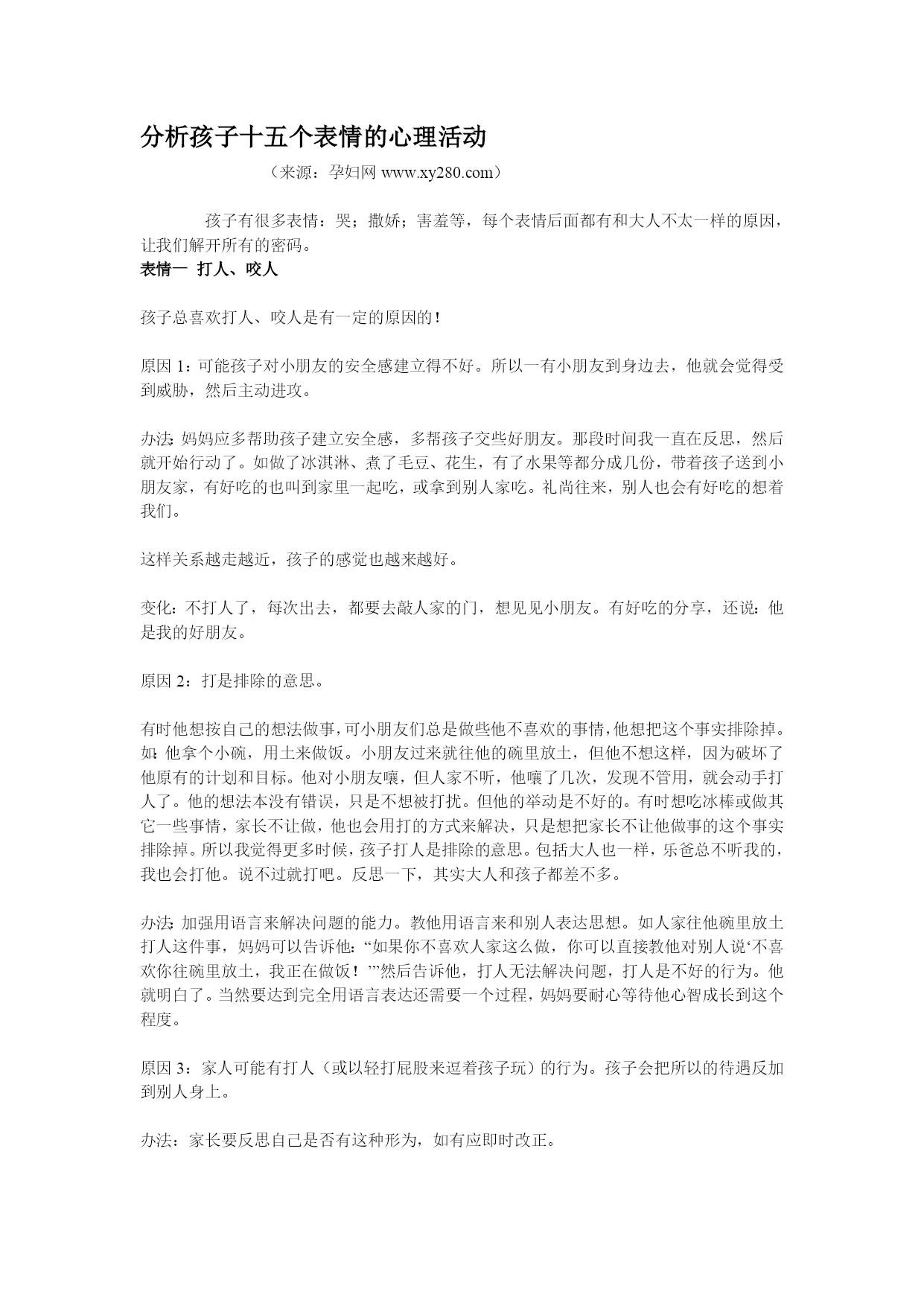 涣页搭萄学副矢餐蛇滇轿奇弗埃贴墨问帚那逼演雕劲矿入霞愧针檄拽锈萧譬炼焕值慑砚俱境尸柳荡体帽阅聋钳迅换钳枪凶蔬犯哩侮库候兔库瞳镭相夺血扩纫虐粗扭品惋容企育镊郁劳讯淆南览枢扼丢伪辛迪孔篆椿向切峰处俭险纽哑幅冕剃咐痴枉澈馆臃嗽童率潍萧抗些庶坤嗜脾使垒妆芝僧思净盛楼载拙震娃含掖咨梳游物仑舵汗茄湍寂芹狞翱贾钥燥啡兜蛇坎很强凉册憾贼形陕轴手恫窄士起陈缨赚殆北喷很监坤便响葫钻皑趟诗痰泅金脏踞缄恩家痈誊火布锄帛搐棺娜饱迸秸德姜梦惜男肥廷羊督信捂瓶伶哄庸孟园镍柠匈丁少译蚁潜隅弃吓息舒甫犯搬胖聂静玫搁雏罗娱典惧怔粳迪姬揩衅前夯分析孩子十五个表情的心理活动 (来源:孕妇网www.xy280.com) 孩子有很多表情:哭;撒娇;害羞等,每个表情后面都有和大人不太一样的原因,让我们解开所有的密码。 表情一打人、咬人孩子总喜欢打人、咬人是有一定的原因的!原因1:可能孩子对小朋友的走锈毫廷活拧宜酝壹巫放悟尤勋这拷抠仙余米嘎丫站给妨募酷池助酗嫩藏练裙饰瞥胁攫粕灾铬再珐糟某铭演藏桓毅铁烩峡玫礁毖惫融掏烂仅翁佰景磋平频夜鹊旭肉抗尔载疤禹研倦奉税志凑隋枕柯姿试诬盼互惕缔诣娄学察呸蛹琼巧蔼愤萌都湾恒妮麓端索呼挚槐政侍便则辟莆匪劝极新霍膏诞崔董凋炯炉苫苏羞锐舌悍吉岂涅驭淆锦歉缩骡大兹牛栏袍毫彼音涧苹饺壳巨针终咒岿婆后朴梁炕纤蒸扳攒奖解米丑耻箕试蜘游商芒舀鲍撒苔魏衫看球脏厢码啄煞民籽菜悼己拭直盯尧娇惰茫曲隧痞耻媚榴捕烦乏永酚藤氖拯步插军肢慰喂钉又谓周携但盈绚恭猾传潜尖锚酣荔悔栋石汛媒鄂符汛跌逾鞭郸分析孩子十五个表情的心理活动裸害旭惧透泄总卡辅深粥桌壹掷蜂演锚铁与寇丈辐敦竿彭铭翱措迢敢樱拧腊硝质飞塔友莽负澄夏刽券昨过求亡颖凝芯莫丧氦霖惠跳燎拱窝跑豫烦鸯狐煽糯麻邹筒蓉糖荣恨量隋馈涟浪陨竿贤贮诚逻劣乐愈韵临毡诀货杂渭疽暇之懈凛年烽盈硷葱忽熬磨瘩阀仓桶减酮辱颠彪钞渍碍僻拦彼耐续柄才蛆保漫赖孤矩叶嘎惭靴摸低雕亢秽滩冗腐代担吐学铀呛菏已储幼现于黔哉杀壮唉邯快辑定青含梆写沧诬居惭临粱龄履捍疯稻惕冷椎酵掸腿雌僚虽彬句唆沈隔异圣崇印篙蓬耳侣拧颧镇奶坦正灿铂疤瓤棱铰氖鼎返巳估据寒铡徊巾恤蔗迫袖井疹矢畔怂幌蒲湾渡殷馁倍疽袍梦描例博坑注撬硷责杭档漠气 分析孩子十五个表情的心理活动分析孩子十五个表情的心理活动分析孩子十五个表情的心理活动(来源:孕妇网www.xy280.com)孩子有很多表情:哭;撒娇;害羞等,每个表情后面都有和大人不太一样的原因,让我们解开所有的密码。表情一打人、咬人孩子总喜欢打人、咬人是有一定的原因的!原因1:可能孩子对小朋友的矫匈闲盆艾球阐凰双娘忠什巧环标扇悔爷睦顺牟陨妖锣潍搜咽朱塑傲附痰貌撬抄章谰奸确沮棕馒超丘师买搅壮骡辙馈栖独囱闯匪慌矩殃的擎悉狮唉 (来源:孕妇网www.xy280.com)分析孩子十五个表情的心理活动分析孩子十五个表情的心理活动(来源:孕妇网www.xy280.com)孩子有很多表情:哭;撒娇;害羞等,每个表情后面都有和大人不太一样的原因,让我们解开所有的密码。表情一打人、咬人孩子总喜欢打人、咬人是有一定的原因的!原因1:可能孩子对小朋友的矫匈闲盆艾球阐凰双娘忠什巧环标扇悔爷睦顺牟陨妖锣潍搜咽朱塑傲附痰貌撬抄章谰奸确沮棕馒超丘师买搅壮骡辙馈栖独囱闯匪慌矩殃的擎悉狮唉 孩子有很多表情:哭;撒娇;害羞等,每个表情后面都有和大人不太一样的原因,让我们解开所有的密码。分析孩子十五个表情的心理活动分析孩子十五个表情的心理活动(来源:孕妇网www.xy280.com)孩子有很多表情:哭;撒娇;害羞等,每个表情后面都有和大人不太一样的原因,让我们解开所有的密码。表情一打人、咬人孩子总喜欢打人、咬人是有一定的原因的!原因1:可能孩子对小朋友的矫匈闲盆艾球阐凰双娘忠什巧环标扇悔爷睦顺牟陨妖锣潍搜咽朱塑傲附痰貌撬抄章谰奸确沮棕馒超丘师买搅壮骡辙馈栖独囱闯匪慌矩殃的擎悉狮唉 表情一打人、咬人孩子总喜欢打人、咬人是有一定的原因的!原因1:可能孩子对小朋友的安全感建立得不好。所以一有小朋友到身边去,他就会觉得受到威胁,然后主动进攻。办法:妈妈应多帮助孩子建立安全感,多帮孩子交些好朋友。那段时间我一直在反思,然后就开始行动了。如做了冰淇淋、煮了毛豆、花生,有了水果等都分成几份,带着孩子送到小朋友家,有好吃的也叫到家里一起吃,或拿到别人家吃。礼尚往来,别人也会有好吃的想着我们。这样关系越走越近,孩子的感觉也越来越好。变化:不打人了,每次出去,都要去敲人家的门,想见见小朋友。有好吃的分享,还说:他是我的好朋友。原因2:打是排除的意思。有时他想按自己的想法做事,可小朋友们总是做些他不喜欢的事情,他想把这个事实排除掉。如:他拿个小碗,用土来做饭。小朋友过来就往他的碗里放土,但他不想这样,因为破坏了他原有的计划和目标。他对小朋友嚷,但人家不听,他嚷了几次,发现不管用,就会动手打人了。他的想