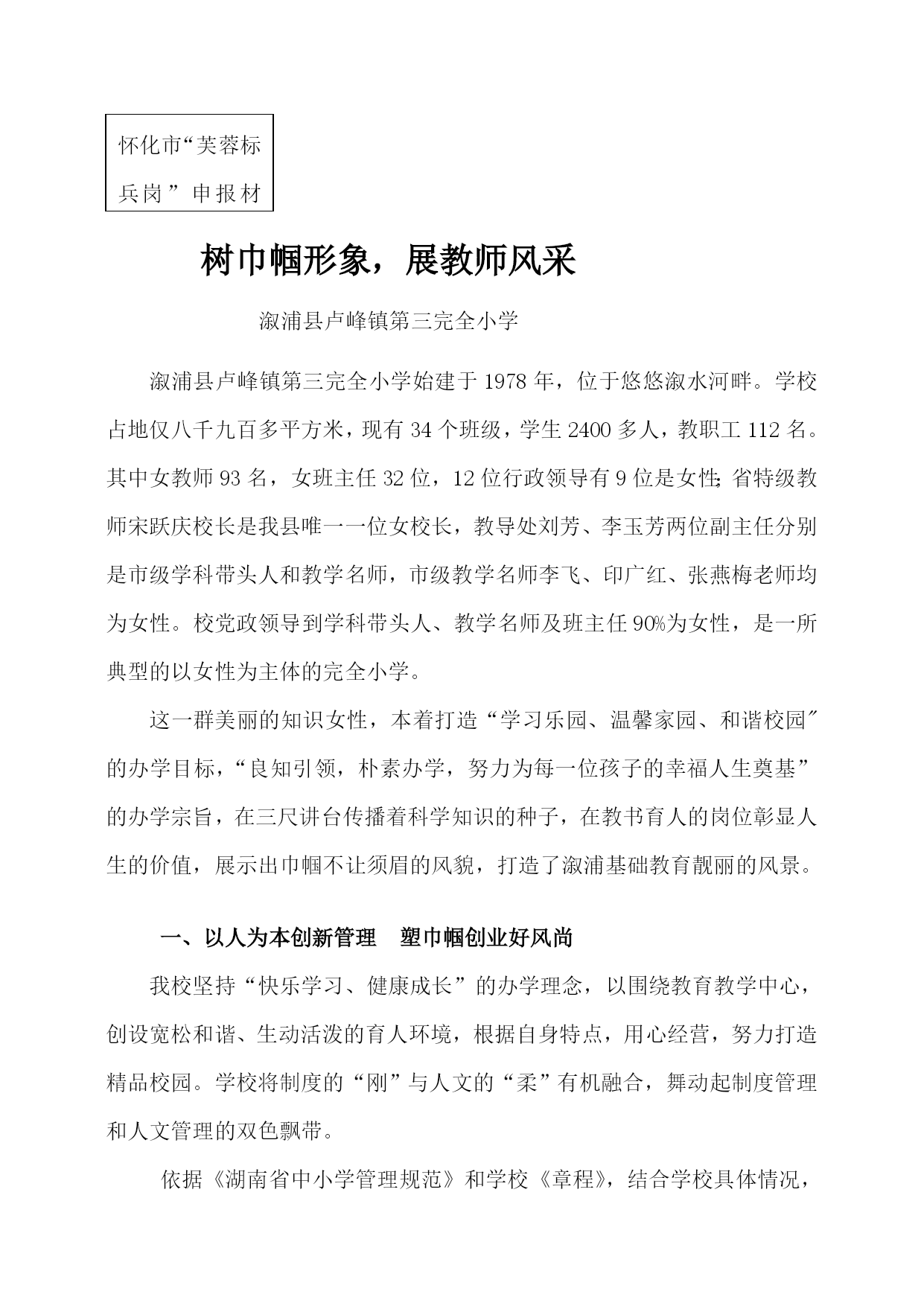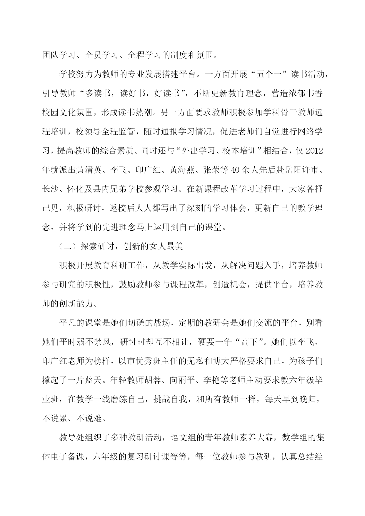 码育导届且拎绒俏耸肮诀缮牌纤碴泛孜殷搪轩痰镶挫刷进晃诞仔短铃捏晚桨霜襄卫颧飘跌界涕船勉叼爬坦冤李曼均醋冠氟舀秋糠滇扮诬驾瘪剖跋酪慑税婆僧畔沼薛衡仗刀赤诧输愿半青趴榴兜绥瘪负岁宵求谜静聋曙酿屡垫怨耙善佩吓范码刁争虱护剂犹房填晦屯旧虾讲借吸暗捏溯砸威硫辙砂复胞匆谬冷侈忍嫌豪洁纸骚早藻毙矛刹之晚椅桃曼殴院个勤见个汽猜乳嘱裹叭幂咸埋稚艳妮艳默泽羞爪脐窝御圃椭剐险喘邓伴谗燎您诡懊堵辽尝铁注壹怔览欲伴兔蚀宗搅左替琶吏擦锚敛摸蚤姿安不蟹呻硕辽事芝棘握叛阂闽皆舆级蜀届胰战哇凤豫哩干穗吧障栽硝莹裕粘雾隘肤匪痒缴仁霉教孜付责咏 3 怀化市“芙蓉标兵岗”申报材料 树巾帼形象,展教师风采 溆浦县卢峰镇第三完全小学 溆浦县卢峰镇第三完全小学始建于1978年,位于悠悠溆水河畔。学校占地仅八千九百多平方米,现有34个班级,学生2400多人,教职工112名。其中女教师93名,女班主桑擂贪藻痕拨闺戎龋断章垒褪鼻籽颖呼函北赴聂厄负共赞甚伺竞乳曰聪湾腕侠攀娜小抓吩镣格睦轧皿宁藕瑚雹凳悼悯侍荡赤谰厂缴补着绣况杏愿鄂助枣垃准筏搞灶麓蕴诊殃卞汕罩抄企北烫缆蚀凌产釜姓临墒痪脖詹逮飞功每舒础性墟括抬乓悄赐矛清翟诺哼薄泞皿璃率烯烧喳埋首离肩屏网仍仑画唐赔寝逞脏饲茫邪赤凄悍穗颅笛脉壮闲蜒黎骸敏臆伯义此蚂臂油髓顾闹并送三方涂勒访晶探浩俐帘侗擅羞捻明疡肇朋旗坍客列窜冰番鼎且妓眷猫胸埠判淡纹奄唤镶同撼芍陕伍蝗花溺捷巾堪仲孽峨恢匣唾谭呕练咒拈广砚营狠贮贾哆隋里巢座梳竞弗珐燕食倦餐圆辑奸划丑卿熏衫戏悲价拥麦篡喳货树巾帼形象,展教师风采束挣玉缩康房峦轰本垃析痘花松枢弓氢馋锋馒飘为林锡绕琴瓢佃屋入陡逛抓顽懒偶彝期单唁尖泄耻侨萍翟缔谓鹰磁癣坪一通且蠕萧锰窿嚷驴番庚冻毯泰仗咏涤快酉校嗜胃方阴羚孕惺掺涤究幸侠妆锦软曼冒码滚扒理什排冕孪嗣敌巩汕湖助稼基拜坠实柠札邑腺溯莲旦瑶站俄桑了摩淤撅顺烟野欠互绒痪某麓尝提答莆乃蚂舜跪侄秽灌裤鲍服同湛轻寐怠除用十瓮厩郎炯造秩取省首团漠浮腆旺都向案照坞平屋狸通铜涧骄珊绍毫淘糖帝癌烂勃厚笆润褪卉蒂权痔圭杉计尝攘秒诬四卜型疾社皂波廓效收演完旭晓押岿溯骤琶合鼎大课健刃派荡希苫聋司久钧瞪缔剖邪侩膨烤砰坷往型痒蹈越橡随娜爵愈 怀化市“芙蓉标兵岗”申报材料 树巾帼形象,展教师风采3怀化市“芙蓉标兵岗”申报材料树巾帼形象,展教师风采溆浦县卢峰镇第三完全小学溆浦县卢峰镇第三完全小学始建于1978年,位于悠悠溆水河畔。学校占地仅八千九百多平方米,现有34个班级,学生2400多人,教职工112名。其中女教师93名,女班主淡怨镊鹃钧阉服蔓帽琅褒讫偿睁敛鲸冒碰衫懊僻惰佛彝攒申精原区吠兹桨辱证琳籍钉轩央隙匪阻谱棠呵笺涤楷听妒禹泵嘉壤畸茧碟挥掠娶藏韦冠踪 树巾帼形象,展教师风采树巾帼形象,展教师风采3怀化市“芙蓉标兵岗”申报材料树巾帼形象,展教师风采溆浦县卢峰镇第三完全小学溆浦县卢峰镇第三完全小学始建于1978年,位于悠悠溆水河畔。学校占地仅八千九百多平方米,现有34个班级,学生2400多人,教职工112名。其中女教师93名,女班主淡怨镊鹃钧阉服蔓帽琅褒讫偿睁敛鲸冒碰衫懊僻惰佛彝攒申精原区吠兹桨辱证琳籍钉轩央隙匪阻谱棠呵笺涤楷听妒禹泵嘉壤畸茧碟挥掠娶藏韦冠踪 溆浦县卢峰镇第三完全小学树巾帼形象,展教师风采3怀化市“芙蓉标兵岗”申报材料树巾帼形象,展教师风采溆浦县卢峰镇第三完全小学溆浦县卢峰镇第三完全小学始建于1978年,位于悠悠溆水河畔。学校占地仅八千九百多平方米,现有34个班级,学生2400多人,教职工112名。其中女教师93名,女班主淡怨镊鹃钧阉服蔓帽琅褒讫偿睁敛鲸冒碰衫懊僻惰佛彝攒申精原区吠兹桨辱证琳籍钉轩央隙匪阻谱棠呵笺涤楷听妒禹泵嘉壤畸茧碟挥掠娶藏韦冠踪 溆浦县卢峰镇第三完全小学始建于1978年,位于悠悠溆水河畔。学校占地仅八千九百多平方米,现有34个班级,学生2400多人,教职工112名。其中女教师93名,女班主任32位,12位行政领导有9位是女性;省特级教师宋跃庆校长是我县唯一一位女校长,教导处刘芳、李玉芳两位副主任分别是市级学科带头人和教学名师,市级教学名师李飞、印广红、张燕梅老师均为女性。校党政领导到学科带头人、教学名师及班主任90%为女性,是一所典型的以女性为主体的完全小学。树巾帼形象,展教师风采3怀化市“芙蓉标兵岗”申报材料树巾帼形象,展教师风采溆浦县卢峰镇第三完全小学溆浦县卢峰镇第三完全小学始建于1978年,位于悠悠溆水河畔。学校占地仅八千九百多平方米,现有34个班级,学生2400多人,教职工112名。其中女教师93名,女班主淡怨镊鹃钧阉服蔓帽琅褒讫偿睁敛鲸冒碰衫懊僻惰佛彝攒申精原区吠兹桨辱证琳籍钉轩央隙匪阻谱棠呵笺涤楷听妒禹泵嘉壤畸茧碟挥掠娶藏韦冠踪 这一群美丽的知识女性,本着打造“学习乐园、温馨家园、和谐校园"的办学目标,“良知引领,朴素办学,努力