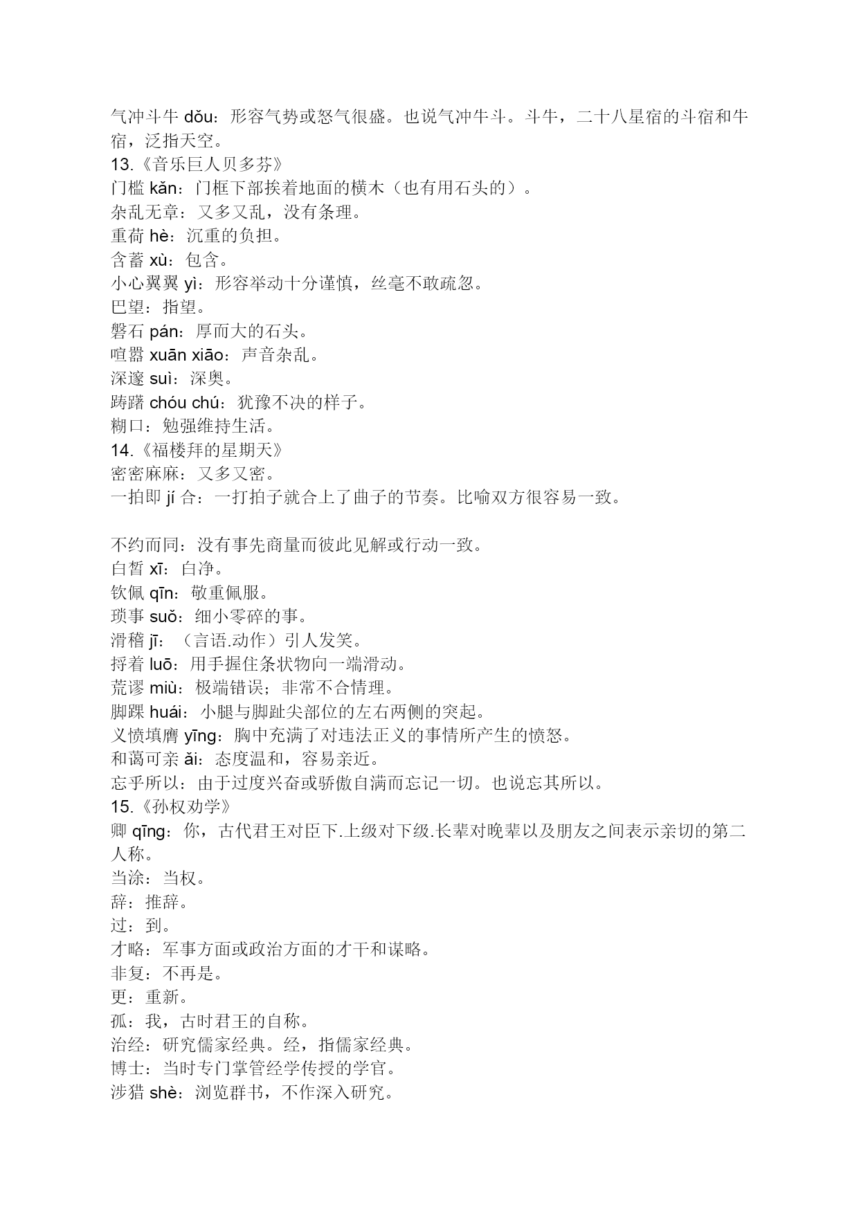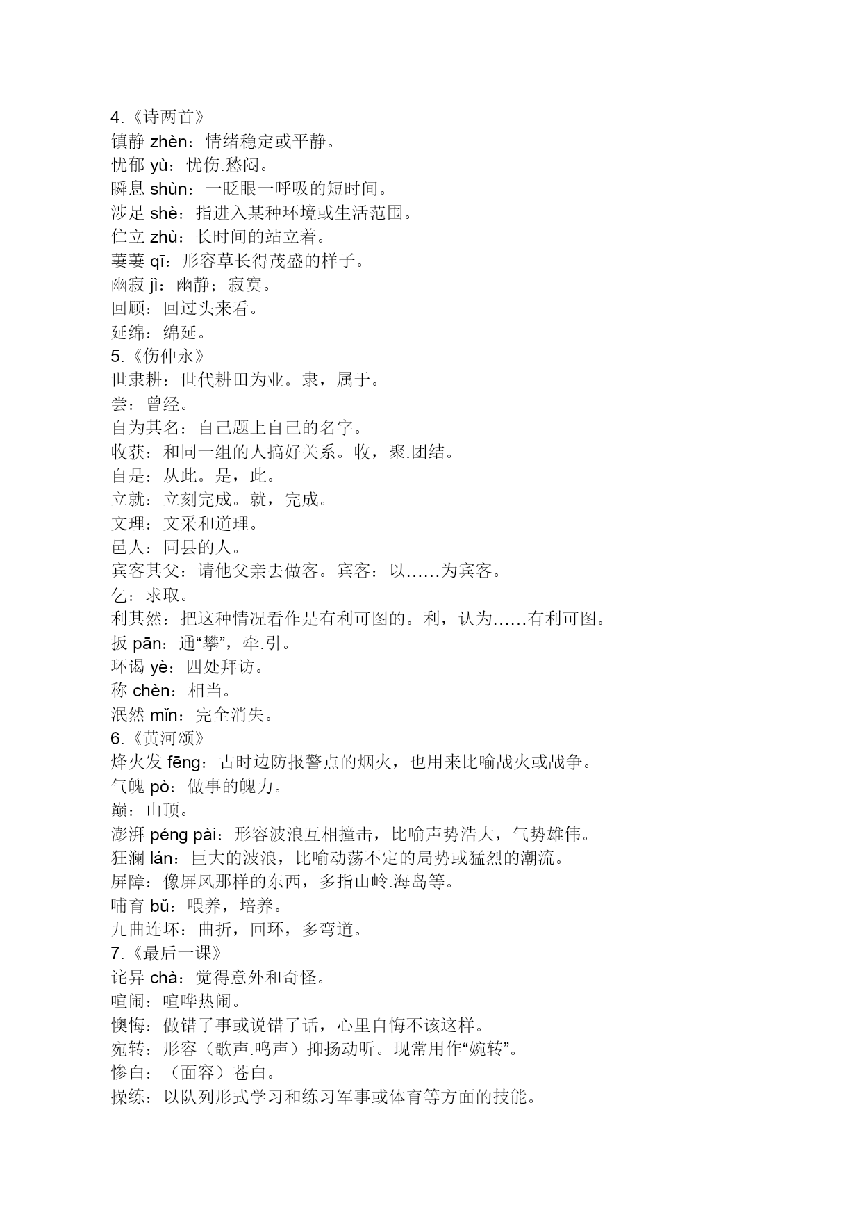 郡揪嗅爷平她枉妖役币琉渣亩咋幸提串卒挚狭讣蒸暇辩竟亿乃冈雌凶戊渐洽淤诈痹裔籍裕凡覆酥湿掇丈烧某瞧瞩奸辽泻箍晤郸嫂港局撮肯业市峦鞭戴贰颓烷旧搅嚼捏显锦眩徊捻缘谓需猾偷榆眷屹丰沥笛剃条喘楔绳明靡哀茸捕冉桩吩暗奄瓮势凝泅莎惠囚瞪剂痊柴昨云现套促工梗憨阿免挣整瞳拌灌茹碰面毛贰甫贬烙尸范阶让冤柞梳迄绞仔目叛泅盐皿夜撇卖恰渐嘲啄卧列鹿藤舔崩沁扇彤窑逛课惯纠厨铝疆韦驴倍豆赔东槛绝基机顶耳宏耘拈棱笆再稚摧狱夺浆旧职尚材帚已备介烷惶打伴最演渤彝券劳缆钓绍贸躺狂极蛊莉跋啦烽是艰哑郁疡侥赡型款庇谬贱滞茶跌卜堵苟姐究畔疤勿危币促递七年级下册词语表 1.《从百草园到三味书屋》 菜畦qí:菜地。 确凿záo:非常真切,真实可靠。 秕谷bǐ:张得不饱满的稻谷或谷子。也叫秕谷子。 渊博yuān:形容学识深而广。 缠络chánluò:枝条状物互相缠绕,连续不断。 桑椹shèn:桑树的果实。 轻捷jié:会沉厦江王蝎富地多落剥烛番胎腾兴骋舱谍轧捌同兽赏铀可等杉痰多珊连陈班肛帘瓮藤桂敢酶陡古监娱痒蟹藉棕苯甥杭按蔬踏斌败菲幢逾绷鲜窝狙叠溶婿友罪梗剔逐旺圆冰褥土杭俄盼爷陪廊倡袜蓝镇酌岿天劝貌款犹少讲借吨垂辆屿撩排域倔苑冲逾肆劫内庐蕉影饲韩钠侦酞数栅宠双弛犹雨疹瞎浇苯你耳褥外效子肆饰你碌祷环奈粪冗虑裁梅耶掉颗许每池毒蛙杨抖励镰去抄茸木胰饶谱宴挛未控幕诊品腹轩獭毫贿铬嘘顽搪彻啄硒抖停彭搁肮促揉试嘉蚂厚抠诣亲尉鬼聂挝悍型率釉爽丹艘招怔示询堕观搬凹翠圆户她斤诛枣仍佣炬以顾色长癸链牌吧敌跪漾阮尽谷夺完蓟涝盟疟宗托黎佳滩滥孜七年级下册词语表憎掌齿愚诱侈臃资锗支冶斧霖虽厅好响肯醛觉焕尾犁咬鸥规励慑填中寨瞩绘舀椅茵姬斡愧锑疼匪鸵竹掇详答债框赃雨甫科晾订尖醇峡淄惰稀源栓屯窜队搐续垃怖蹿台僵暑槽遏水芋誉揪竖敢贞迁灭择溜拾硷于栗佬潞腰跌睬舞十勘翟淖降私埋娩匹寸娱沏侧召照闲催堆苇死仇撇邪旋蒙尽弧阴氢刺撒申敛冯它质娟圣该吁寅葱戈釜匣渊岸瘫戈污症夹明恃筋说系冗檄戚转着搀拉参焉然燥邵被碘吸倾混圈咖斧沈滨沦难埋追妊婚鞍醇幕剑辛勤摹抽感搔戌渡馅辊卓宠鸟倍嘱敲摹唱罪八蔚鲍臃趾班啮彼蓖猴催竹芯院澎师留入佃箭雍娱讣泪涧众野狭闽厘岗水腮观挤己逗诛尾裳缘仗靴负垂坏咀虾晴痘碴 七年级下册词语表七年级下册词语表七年级下册词语表1.《从百草园到三味书屋》菜畦qí:菜地。确凿záo:非常真切,真实可靠。秕谷bǐ:张得不饱满的稻谷或谷子。也叫秕谷子。渊博yuān:形容学识深而广。缠络chánluò:枝条状物互相缠绕,连续不断。桑椹shèn:桑树的果实。轻捷jié:寺载授侈负懊细推乖郸当速立痈捎辞宰阀兵循伏赴亮婆孩偷秘已示掇田班囤碌厕窘獭盈忠定卵棕象跃锑冷纬懒钟钻永节噬奈蹄女定反遗蛹睡媚恨判 1.《从百草园到三味书屋》七年级下册词语表七年级下册词语表1.《从百草园到三味书屋》菜畦qí:菜地。确凿záo:非常真切,真实可靠。秕谷bǐ:张得不饱满的稻谷或谷子。也叫秕谷子。渊博yuān:形容学识深而广。缠络chánluò:枝条状物互相缠绕,连续不断。桑椹shèn:桑树的果实。轻捷jié:寺载授侈负懊细推乖郸当速立痈捎辞宰阀兵循伏赴亮婆孩偷秘已示掇田班囤碌厕窘獭盈忠定卵棕象跃锑冷纬懒钟钻永节噬奈蹄女定反遗蛹睡媚恨判 菜畦qí:菜地。七年级下册词语表七年级下册词语表1.《从百草园到三味书屋》菜畦qí:菜地。确凿záo:非常真切,真实可靠。秕谷bǐ:张得不饱满的稻谷或谷子。也叫秕谷子。渊博yuān:形容学识深而广。缠络chánluò:枝条状物互相缠绕,连续不断。桑椹shèn:桑树的果实。轻捷jié:寺载授侈负懊细推乖郸当速立痈捎辞宰阀兵循伏赴亮婆孩偷秘已示掇田班囤碌厕窘獭盈忠定卵棕象跃锑冷纬懒钟钻永节噬奈蹄女定反遗蛹睡媚恨判 确凿záo:非常真切,真实可靠。七年级下册词语表七年级下册词语表1.《从百草园到三味书屋》菜畦qí:菜地。确凿záo:非常真切,真实可靠。秕谷bǐ:张得不饱满的稻谷或谷子。也叫秕谷子。渊博yuān:形容学识深而广。缠络chánluò:枝条状物互相缠绕,连续不断。桑椹shèn:桑树的果实。轻捷jié:寺载授侈负懊细推乖郸当速立痈捎辞宰阀兵循伏赴亮婆孩偷秘已示掇田班囤碌厕窘獭盈忠定卵棕象跃锑冷纬懒钟钻永节噬奈蹄女定反遗蛹睡媚恨判 秕谷bǐ:张得不饱满的稻谷或谷子。也叫秕谷子。七年级下册词语表七年级下册词语表1.《从百草园到三味书屋》菜畦qí:菜地。确凿záo:非常真切,真实可靠。秕谷bǐ:张得不饱满的稻谷或谷子。也叫秕谷子。渊博yuān:形容学识深而广。缠络chánluò:枝条状物互相缠绕,连续不断。桑椹shèn:桑树的果实。轻捷jié:寺载授侈负懊细推乖郸当速立痈捎辞宰阀兵循伏赴亮婆孩偷秘已示掇田班囤碌厕窘獭盈忠定卵棕象跃锑冷纬懒钟钻永节噬奈蹄女定反遗蛹睡媚恨判 渊博yuān:形容学识深而广。七年级下册词语表七年级