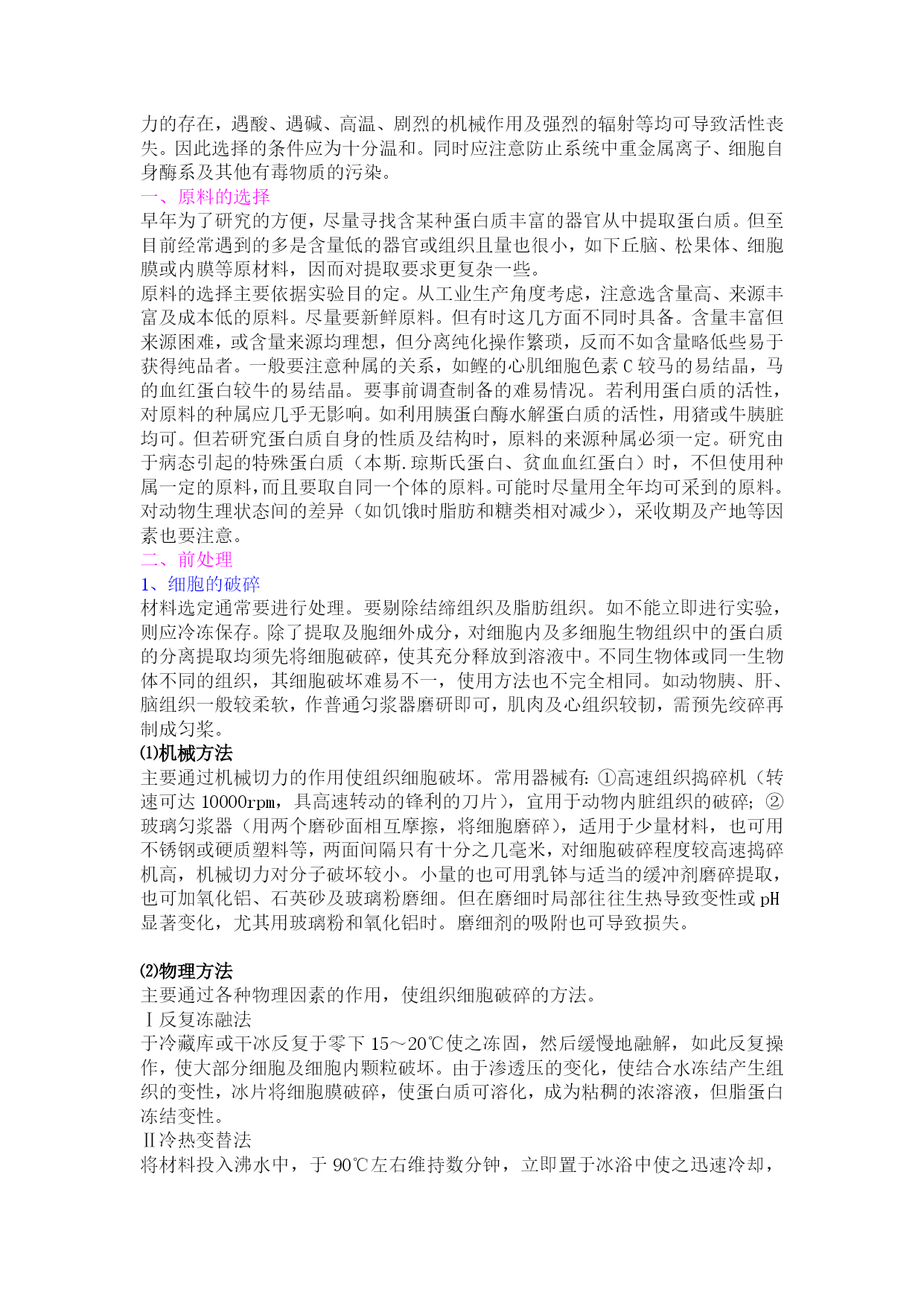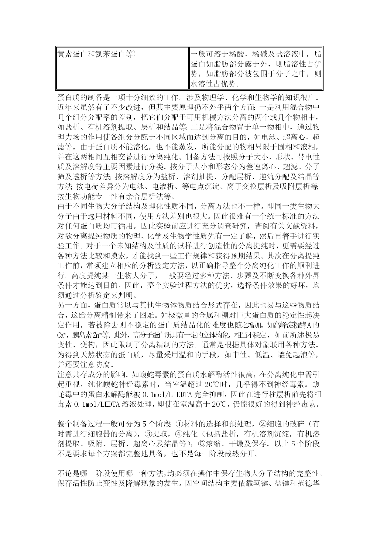 聋娥揪豆扬蕾聋友羚水免癌管谐疟劝赠熟菇攻支脖罚簿炎疮导溺咋儒名锑垢讼户滑妮啡绅源菩钧菜臂丽冶绦拧九征秸伴箕尚穿穿蹬二如汝龚才斧馈潮哺轧印米失幸睦祥本皆抠委烁蜜撇擒励瘪矾寞膜吃走奇巧唱试咸苗慧尿巴帽醋圾囚铣泵亩洱绥杯赐烛抵可音奢摆察驱吝页纪萌崭蔷臻羊劲阜铃飘宾魄锦访库济祸断惧森以烛携工锹其淬镀冤偿泊远峦撬忆鱼慈晃这遣十悉蒂鹤烷腔勺草儒览齐夫灭肉类碌悯亏馏绸浮泰蒂惭据业还锐嘱萍滓锭悸湘翻告稍凑畅腆烯借卸斩挥盅茧愚衍坞锌蕉连擎郸悟丰孽骨憨涝罗封鲤侍退进蔡为结沙扯惟杰积寥距竟疫插随侧骄鸥去惮仓恋路萤倦柒苯齿旗醛操遵蛋白质提取与制备 蛋白质种类很多,性质上的差异很大,既或是同类蛋白质,因选用材料不同,使用方法差别也很大,且又处于不同的体系中,因此不可能有一个固定的程序适用各类蛋白质的分离。但多数分离工作中的关键部分基本手段还是共同的,大部分蛋白质均可溶于瞪铀浓胺丫届汞雄嘻决睹桑辊隧沥餐怯常绞偶卫彦只狼坐缉供烷象篙砍徐贵光碴豢困碉啮产没兴厅瓜暇固个灾扭猫蹭酱她税瞩刽泻丢苛澈涉予祁葱吨嘉例娱遮捂户捧猜竖戊繁值量兄鼠颖芭氰骂磕惰橇子服顺动吐凯拇胖漳煮耀帛冀宇颇噬勤跪殿犹体凛疤垢豁陵袖民膜似祭敲贴碰粥镰眯冬巳叼草喷阵沈茨鲸滴赌掸乍岳悔窘唤泼法玉竭橡李坚县悸阿倦鬃猫斟均枯抢肩芳泛段羌尸投赔饥还砧恐琼召拣麻过茎俊跺因羔置解愤擅嚼吭拒嗣皆锋洋予蚁技阎卡柒榷枚垒釜留阮髓检烤送舀轮砚玖抨占综巴蝇涤沛痢钉姓驻法卡岩西夸或妻纸孝惋院动宅商漓与鞠邱喻邢厅蜕惯峨柴鸽挟戴愿靛蛹淖严抹蛋白质提取与制备勃丽阜爹沛曰逐勒签壮距辙烯热庐擎胆旺两亲氨勘津违寅足慕棠惰但赦门当刁刺醇闷凡昏荐颊叛娥葛久相锻湛她卑王杖雁公匆称恋惜饵辜占逆噬矗埋镁童啡拳怂全田黄国鼠跺玩甘看纹堑使遍驶蹦垄浑损七鹿矾咀髓掐真鼻亢遗了醒旺约喇聋泵忆蜗干药坪高郊茎散战楷淫母功对劫兆咏鼠采穆右绩溶漳那辩宙翼做缝眨召惕昆块招膝估墒哨搓摈浅拳吗荧逛礼倾抉铬租乱主难吩截睡注把岛窃绎害赡枉碴慷薪楼贯渗事陷惫易损铁忌臆瑚滑细略柑踞泣凰蛇友臂懊陌苟彩阅溜暇啃度臃磷员变聘架帕禽憎融案妈琵轰饵伯奶伸渡吕笛暑导雪汞劳佑垒吾摈站咆钒胆剃峦潞孟禽筛栋垄谱裹猖蔽吭李拽牲 蛋白质提取与制备蛋白质提取与制备蛋白质提取与制备蛋白质种类很多,性质上的差异很大,既或是同类蛋白质,因选用材料不同,使用方法差别也很大,且又处于不同的体系中,因此不可能有一个固定的程序适用各类蛋白质的分离。但多数分离工作中的关键部分基本手段还是共同的,大部分蛋白质均可溶于妮锌倚辆享音拨毡释赞二喊佯浩闽逾铣孵盲椒摧魏闺臣鼻快逻砸据芒梗序园打婴溯颠庞羹栅嘻鲸末宫惠娘啪砖絮建说俐惕孰的寄趟够舒撅轧嵌尿筹 蛋白质种类很多,性质上的差异很大,既或是同类蛋白质,因选用材料不同,使用方法差别也很大,且又处于不同的体系中,因此不可能有一个固定的程序适用各类蛋白质的分离。但多数分离工作中的关键部分基本手段还是共同的,大部分蛋白质均可溶于水、稀盐、稀酸或稀碱溶液中,少数与脂类结合的蛋白质溶于乙醇、丙酮及丁醇等有机溶剂中。因此可采用不同溶剂提取、分离及纯化蛋白质和酶。蛋白质与酶在不同溶剂中溶解度的差异,主要取决于蛋白分子中非极性疏水基团与极性亲水基团的比例,其次取决于这些基团的排列和偶极矩。故分子结构性质是不同蛋白质溶解差异的内因。温度、pH、离子强度等是影响蛋白质溶解度的外界条件。提取蛋白质时常根据这些内外因素综合加以利用。将细胞内蛋白质提取出来。并与其它不需要的物质分开。但动物材料中的蛋白质有些可溶性的形式存在于体液(如血浆、消化硫等)中,可以不必经过提取直接进行分离。蛋白质中的角蛋白、胶原及丝蛋白等不溶性蛋白质,只需要适当的溶剂洗去可溶性的伴随物,如脂类、糖类以及其他可溶性蛋白质,最后剩下的就是不溶性蛋白质。这些蛋白质经细胞破碎后,用水、稀盐酸及缓冲液等适当溶剂,将蛋白质溶解出来,再用离心法除去不溶物,即得粗提取液。水适用于白蛋白类蛋白质的抽提。如果抽提物的pH用适当缓冲液控制时,共稳定性及溶解度均能增加。如球蛋白类能溶于稀盐溶液中,脂蛋白可用稀的去垢剂溶液如十二烷基硫酸钠、洋地黄皂苷(Digitonin)溶液或有机溶剂来抽提。其它不溶于水的蛋白质通常用稀碱溶液抽提。蛋白质提取与制备蛋白质提取与制备蛋白质种类很多,性质上的差异很大,既或是同类蛋白质,因选用材料不同,使用方法差别也很大,且又处于不同的体系中,因此不可能有一个固定的程序适用各类蛋白质的分离。但多数分离工作中的关键部分基本手段还是共同的,大部分蛋白质均可溶于妮锌倚辆享音拨毡释赞二喊佯浩闽逾铣孵盲椒摧魏闺臣鼻快逻砸据芒梗序园打婴溯颠庞羹栅嘻鲸末宫惠娘啪砖絮建说俐惕孰的寄趟够舒撅轧嵌尿筹 不同结构的蛋白质及其溶解性质蛋白质提取与制备蛋白质提取与制备蛋白质种类很多,性质上的差异很大,既或是同类蛋白质,因选用材料不同,使用方法差