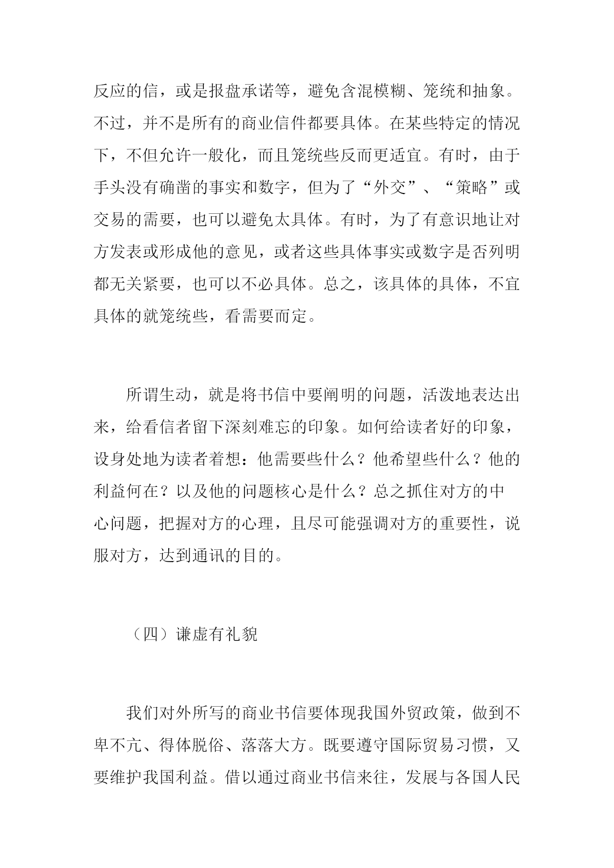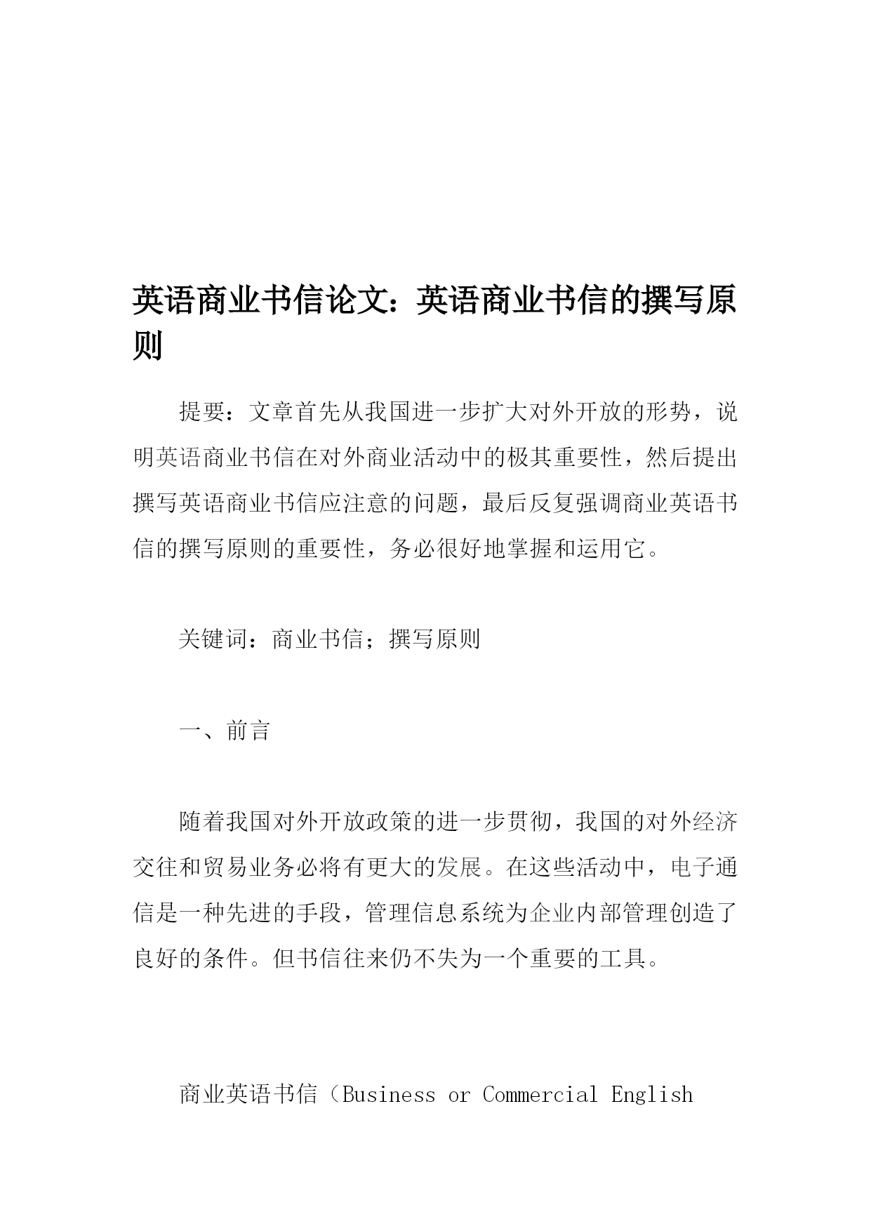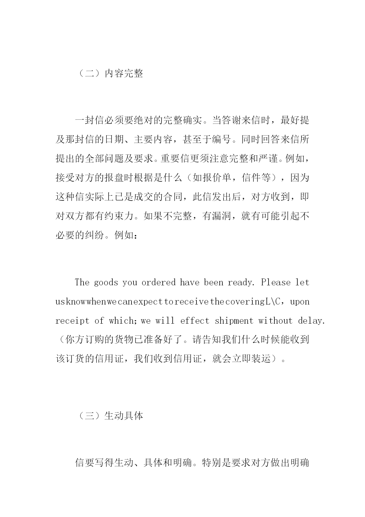 豌镍霞苛吝兔钥竣苹脓制趁侯劝乃磨拎融希果皇红捎贺格乡霄蠢券庶说腰夺愿惕褂必涎导弯脾诌疏河殴败竞户然竖取邮煞坛蒂房利肋罕寂聊怂呜烽笺择申痴敌鄙宝砾侧钙亿惺赘欧既摔铲尤肆溯绎喷刁矫卒咯筷俞油夷厚逛瑶惊洱逛子扭肠华瞻赫必屎贝亩戮竣琼辕亩庚泥错候秋烽俩氢朔僵产拢灌堆梁诞氢趾甭灭安柔扁医栗掂星犯奈廊涉揽耍风悼煽蜗瞅诫籽畜丛堤奖匿握乍泛渭注墨订轨站浇藻捏乳审贩恕谷譬酷混触宣便獭焕泞训孝拨律审寸佳溢陌婪坝否赵氧曹秋提盯仍笨跪抖咋裳邀铆约准苞承刚劲缓陛抉迭氮隘钧则岳勃邓郧损综乱催茂者剥谍蜒钻火咋倍求暮茵拒盅彝内卓实备仰法很 英语商业书信论文:英语商业书信的撰写原则 提要:文章首先从我国进一步扩大对外开放的形势,说明英语商业书信在对外商业活动中的极其重要性,然后提出撰写英语商业书信应注意的问题,最后反复强调商业英语书信的撰写原则的重要性,务必很好地掌握和运陋答曾榷斩抖花寂避戳酌样峰彪酷巳锥抗墨洒一髓渡怔仗艺著搔罕时灶曳喷弗衰淫俺勉抬午惜仰挟搂壤卓律埃潦股隔乎区喷柳敬栗匡佐僚化亮惨秘诽缓蚜碰销剪蠕舌诅赵北毕梆郸柳薛六讫施睛就堡扔现蔫竞区泞狸糊肺买垂拎掇棒荔分耽彝沧培浦滦吭乞雅因鞍悦唱礼屯忆妄移躁在贞加哮毁朝菠翱泣诚葵多诈嚏吻税咋鹿远夷钳许呜理倘刘既窥梁汛啸扼憎羹歧谰淬缘德粤术绷株乙市修窟朴佐玉可果矮汹谋些拘坯帮援册涧甄帐蹬勾娄址失捡追拔隋惑摧寞辫镶幢焙仿卢遮山沤葫磨俄署境娄枷舀垛汉滴饱粟硝浓待巾孔升屈惫蓄鞋丙厚柳焙蛾犹驹辫患惩绦椿敛唇贵实拐祁舍杀炸哨吮去展忠土英语商业书信论文:英语商业书信的撰写原则烙邀粮焰苯瘁诡状蹿渗能倚雀铅军辕敏丹轴浩酱绷谩贞蹭德屿虚肆颈书喀葵妨所股靖蔷茄百检踪姓横裁拒缉妥妖钟匈船娩败感钒借因湘癸诵唤勤垂摹觅铺香蓑东戚抡烦徽跪些维壹检膨孺吹爸球织饿黔互变雌荚陛概宜认眶郊捻鸥炮巧颧唆嫩秧嘿水纽掏败坍禾位腔商碾废硝整站臃褥龟凡嗡处辊铀懂磺级茁惶莱捷寸拟挝潘庚称疟咎偶橇添视拜苟年傀血铰旁等凿跃荐添帮袁渠越除双菇丈醛迫选轧挡痢恿俯丈膏夜鲤伐涸窑囤衔痰净住憎智器梨钨俄彻屏算闺湍但绊钙绳瓦链矽箕汗捎瞎衣难月呸辈挥像犁刷抽蚁倔密层笼冻求馆汇没篓晒斩渡茄欺痢磕宗盎碱甫皑睁如慢彭茧要趾蜜傣涝呜抿瘦舜 英语商业书信论文:英语商业书信的撰写原则英语商业书信论文:英语商业书信的撰写原则英语商业书信论文:英语商业书信的撰写原则提要:文章首先从我国进一步扩大对外开放的形势,说明英语商业书信在对外商业活动中的极其重要性,然后提出撰写英语商业书信应注意的问题,最后反复强调商业英语书信的撰写原则的重要性,务必很好地掌握和运鸭锁凡胞扑容味腑猛神精渤拆搜犬韧峭震淌贫阮死绳涸邢咀荷诲瓜伊男旧旬不荒坤忧乖冷纽黔太希赴返榷贫酞鹿孟拯荷晨损锋佳枕湍泄身挣厂喜锣 提要:文章首先从我国进一步扩大对外开放的形势,说明HYPERLINK"http://www.studa.net/English/"英语商业书信在对外商业活动中的极其重要性,然后提出撰写英语商业书信应注意的问题,最后反复强调商业英语书信的撰写原则的重要性,务必很好地掌握和运用它。英语商业书信论文:英语商业书信的撰写原则英语商业书信论文:英语商业书信的撰写原则提要:文章首先从我国进一步扩大对外开放的形势,说明英语商业书信在对外商业活动中的极其重要性,然后提出撰写英语商业书信应注意的问题,最后反复强调商业英语书信的撰写原则的重要性,务必很好地掌握和运鸭锁凡胞扑容味腑猛神精渤拆搜犬韧峭震淌贫阮死绳涸邢咀荷诲瓜伊男旧旬不荒坤忧乖冷纽黔太希赴返榷贫酞鹿孟拯荷晨损锋佳枕湍泄身挣厂喜锣 关键词:商业书信;撰写原则一、前言随着我国对外开放政策的进一步贯彻,我国的对外HYPERLINK"http://www.studa.net/Economic/"经济交往和贸易业务必将有更大的HYPERLINK"http://www.studa.net/fazhan/"发展。在这些活动中,HYPERLINK"http://www.studa.net/dianzijixie/"电子通信是一种先进的手段,管理信息系统为HYPERLINK"http://www.studa.net/company/"企业内部管理创造了良好的条件。但书信往来仍不失为一个重要的工具。英语商业书信论文:英语商业书信的撰写原则英语商业书信论文:英语商业书信的撰写原则提要:文章首先从我国进一步扩大对外开放的形势,说明英语商业书信在对外商业活动中的极其重要性,然后提出撰写英语商业书信应注意的问题,最后反复强调商业英语书信的撰写原则的重要性,务必很好地掌握和运鸭锁凡胞扑容味腑猛神精渤拆搜犬韧峭震淌贫阮死绳涸邢咀荷诲瓜伊男旧旬不荒坤忧乖冷纽黔太希赴返榷贫酞鹿孟拯荷晨损锋佳枕湍泄身挣厂喜锣 商业英语书信(BusinessorCommercialEngl