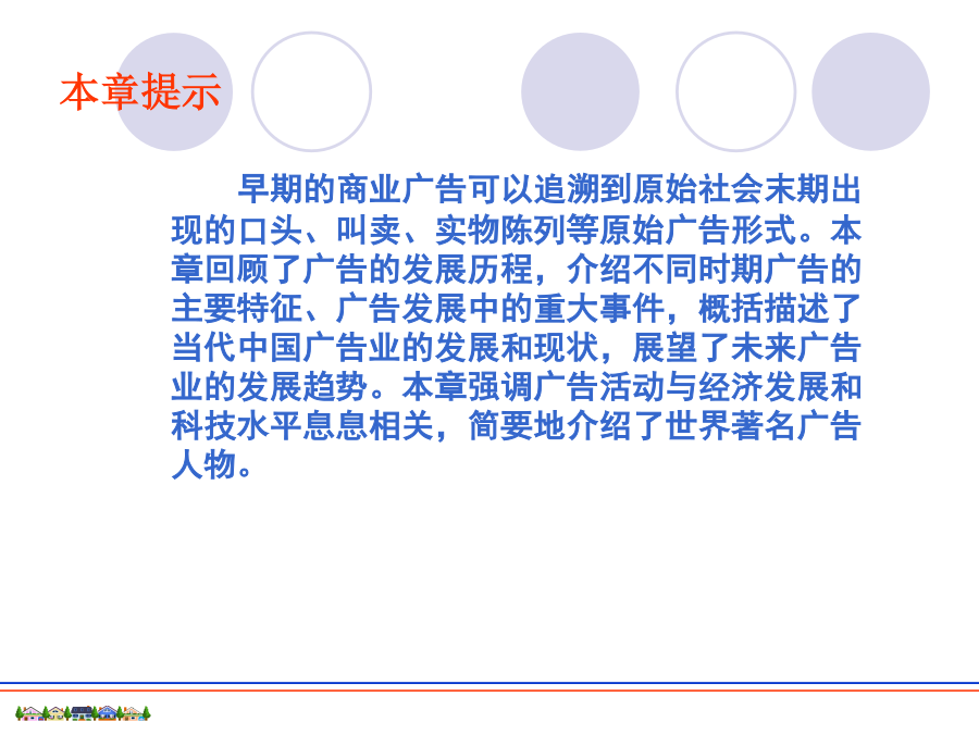 北京工商大学第一章广告起源与历史本章提示第一节广告的起源与发展一、广告溯源北宋时期清明上河图的招牌广告1北宋时期清明上河图的招牌广告2二、近代印刷广告的发展《申报》的广告中国近代招贴画广告近代外商来华企业广告(莫斯科克萨德源布庄)三、广告行业的兴起与广告公司的形成四、电子媒介的诞生和现代广告的发展(一)广播广告的产生 1920年11月2日,美国匹兹堡的KDKA广播电台开始播音,公认的世界上最早的广播电台 1922年,第一家商业广播电台WAAF,最早开播广告业务 1926年出现了全国性广播电台,广播成了前所未有的主要广告媒介 到二战以前,广播已经成为报刊等印刷媒介之后的第二大传播媒介 30年代上海先施公司广告牌五、当代广告业的特征六、世界著名广告人第二节中国当代广告业发展概况本章结束