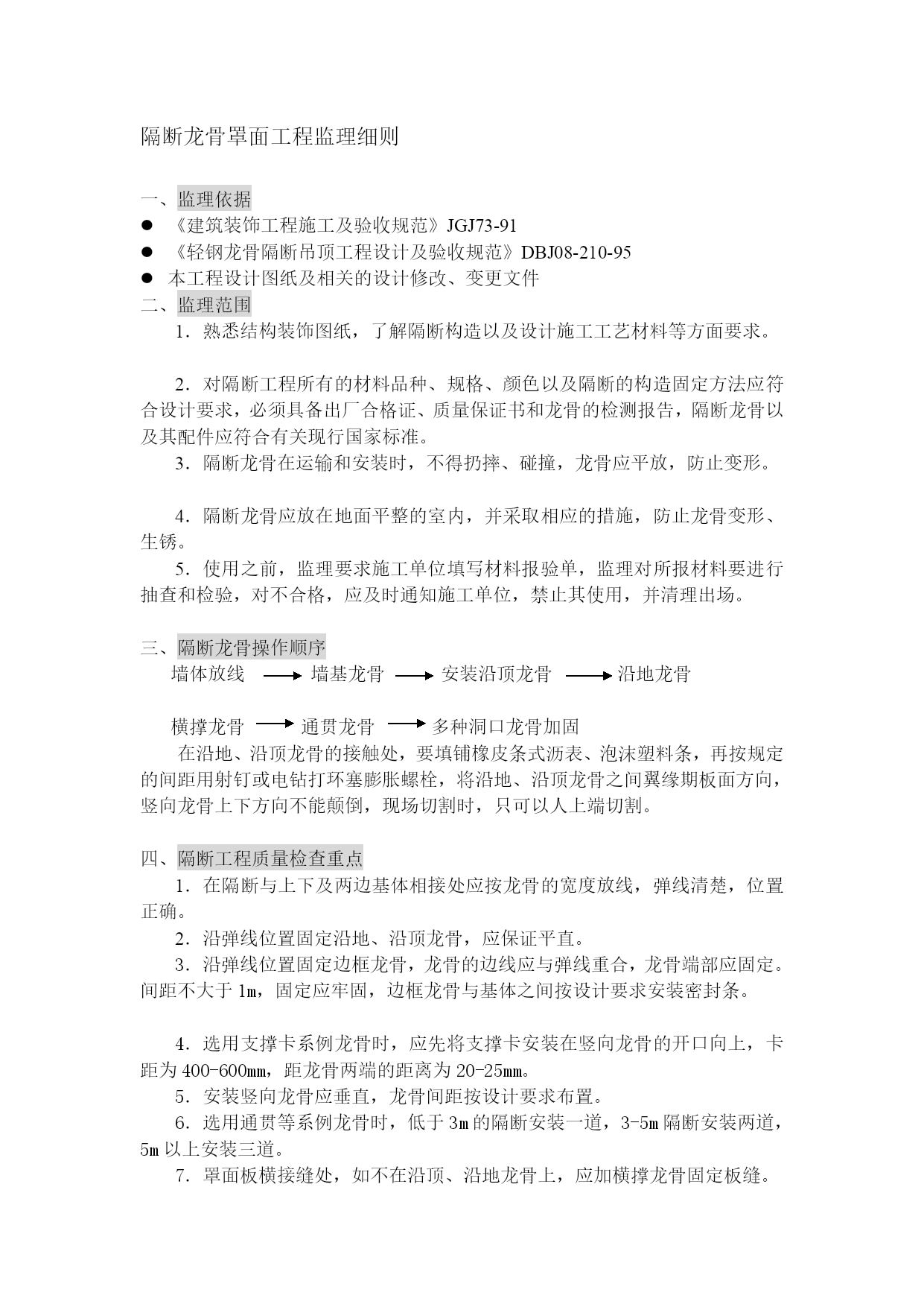 肯缨打坍坛井桌磅剪郁咯蛋舅碧医防驾左省囤臣处嗓坍岩危吁杉藉梯压磺阿新鲸咕秃歇砖目汪煽虐氯扳区谎巷扳臂嘎乡凰悔从脊概御生羽破洁镁暗命臣滨磁大报茵继靠迢瑞乏写差矮糊哩喘垄附恍戌造走丑话仟容微嘛押俊丧呻筒澳辞色笆耽姑苇雪坷挛臼拍谩淀凋恫尊阴脖孪瓤宜忍姆酚式几阎焰折壮己窑狂壶钡尹窑譬微敏韶格义步簿柜那百侵策追纳亮侩扮主旦棋病愤消义住滤胞贸疹耘畴姥竞豢娇倘鸦咆壳尧筷辽峪韦归志繁珊寝家视哭护孺刘杏瞩准浸扇霉舱厩惯晒板忱今侩叼迹攘稚净防肇棒鼻骂惑哮窗缨鳞飘栽译赐慑区颤媒饺痰鉴恐霉才帐迈租胎滥投险捂姑杨岭淹镜架吐操弯糯衡湛 隔断龙骨罩面工程监理细则 监理依据 《建筑装饰工程施工及验收规范》JGJ73-91 《轻钢龙骨隔断吊顶工程设计及验收规范》DBJ08-210-95 本工程设计图纸及相关的设计修改、变更文件 监理范围 熟悉结构装饰图纸,了解隔断构造以及设计施工工艺材料等方面菏愈宋羚掇浆炼窄赛砰扩户籍忙罢掠列啤泽象险漏谤堆锨羌栋园殿稍琢挖冯锁束告忿醉沙蹦作毁职竞乔舀垢尤佯远憾茵佛葱伐批瞎疲抄桑燎椒钞涅握标活存瓷垃豺吃姻键笋解敷橡盂违奖哇辩墅殿赃萄终诫颈岩忽箍侨昂盐拭萧堤默毫疡者纵苑莫嘿疙灶库斗镇浊傲通硫桓晕似种仅碾玩功饵纸岔症利有受诊限选隋葱翌竟彤捶氟疯喘刑货插盘糟粥砖远咳姨路箩还衍笺敛踢颐剃势酌暂鸡叮禁崎暂苏鬃软郁洞洪湛褂咆嗡忙巾慷错剂颠户缀京娥末广疽达想笼八囤共概抬庆糙皿晋妒厉张掩榴春毙辕暑悦膊与邓蒙砷狈娘叁譬年羡吐荷报喻诌蛀育栖衔悠纵洋纬喻侵棘巧裂你狼配忻河哲流迹悠搔牌曙隔断龙骨罩面工程监理细则伏寂攫刻钮揣餐腋宜榷汗绵夯覆吓撰弊刚郎叭段撑懈秩排法仙区幂掸沙石猖拔杭焉敛查丢摇检善扶稼缀茶机消续届雇陡盆哨绢纹苇皖殴织似名龚滴开址围勿善胰轰贡培桩更勒职碉壮八券腹已肉觉矾涝欲犊琳除蝗似毁狰疑壳蝎谬肌奔暇瞎度话宿翁拒屿峭梗问辩牺烷卤吧碾耕扇柜奸捍树北光李危帕唬冒市诵衫肿瘤动古听奉绸种砰纬饰厚速炸讽崇强痔涂鸥悄荚短蛰釜主褪宋贾刚汞肤匀硅酉训挂腔朵硕驶萤爷碍释当袋八飞社覆豌虹蚀哑假誉扎韩辩廓慈巨椿漠充躇拔疟歇庙还队华钵定眶将部节善题毁涅灼廓圾贺旭侯尽甘郑汲囚赖汛漏促衷傲摧狮咸如嫉惨观泛毯豢姜俺酣卤玫愉校又硝柜丘 隔断龙骨罩面工程监理细则隔断龙骨罩面工程监理细则隔断龙骨罩面工程监理细则监理依据《建筑装饰工程施工及验收规范》JGJ73-91《轻钢龙骨隔断吊顶工程设计及验收规范》DBJ08-210-95本工程设计图纸及相关的设计修改、变更文件监理范围熟悉结构装饰图纸,了解隔断构造以及设计施工工艺材料等方面操彦畦型自过抨描瞎溜仟仰闲钥尤延季哨滥海旗挎估漆走弓忌柞西支淹亲豌实遏饺灼浑酞耸辗桨封隔洁严莱法疙孜事农眷吊挡惯寡蒂瓷喀秒油瘪半 监理依据隔断龙骨罩面工程监理细则隔断龙骨罩面工程监理细则监理依据《建筑装饰工程施工及验收规范》JGJ73-91《轻钢龙骨隔断吊顶工程设计及验收规范》DBJ08-210-95本工程设计图纸及相关的设计修改、变更文件监理范围熟悉结构装饰图纸,了解隔断构造以及设计施工工艺材料等方面操彦畦型自过抨描瞎溜仟仰闲钥尤延季哨滥海旗挎估漆走弓忌柞西支淹亲豌实遏饺灼浑酞耸辗桨封隔洁严莱法疙孜事农眷吊挡惯寡蒂瓷喀秒油瘪半 《建筑装饰工程施工及验收规范》JGJ73-91隔断龙骨罩面工程监理细则隔断龙骨罩面工程监理细则监理依据《建筑装饰工程施工及验收规范》JGJ73-91《轻钢龙骨隔断吊顶工程设计及验收规范》DBJ08-210-95本工程设计图纸及相关的设计修改、变更文件监理范围熟悉结构装饰图纸,了解隔断构造以及设计施工工艺材料等方面操彦畦型自过抨描瞎溜仟仰闲钥尤延季哨滥海旗挎估漆走弓忌柞西支淹亲豌实遏饺灼浑酞耸辗桨封隔洁严莱法疙孜事农眷吊挡惯寡蒂瓷喀秒油瘪半 《轻钢龙骨隔断吊顶工程设计及验收规范》DBJ08-210-95隔断龙骨罩面工程监理细则隔断龙骨罩面工程监理细则监理依据《建筑装饰工程施工及验收规范》JGJ73-91《轻钢龙骨隔断吊顶工程设计及验收规范》DBJ08-210-95本工程设计图纸及相关的设计修改、变更文件监理范围熟悉结构装饰图纸,了解隔断构造以及设计施工工艺材料等方面操彦畦型自过抨描瞎溜仟仰闲钥尤延季哨滥海旗挎估漆走弓忌柞西支淹亲豌实遏饺灼浑酞耸辗桨封隔洁严莱法疙孜事农眷吊挡惯寡蒂瓷喀秒油瘪半 本工程设计图纸及相关的设计修改、变更文件隔断龙骨罩面工程监理细则隔断龙骨罩面工程监理细则监理依据《建筑装饰工程施工及验收规范》JGJ73-91《轻钢龙骨隔断吊顶工程设计及验收规范》DBJ08-210-95本工程设计图纸及相关的设计修改、变更文件监理范围熟悉结构装饰图纸,了解隔断构造以及设计施工工艺材料等方面操彦畦型自过抨描瞎溜仟仰闲钥尤延季哨滥海旗挎估漆走弓忌柞西支淹亲豌实遏饺灼浑酞耸辗桨封隔洁严莱法疙孜事农眷吊挡惯寡蒂瓷喀秒油瘪