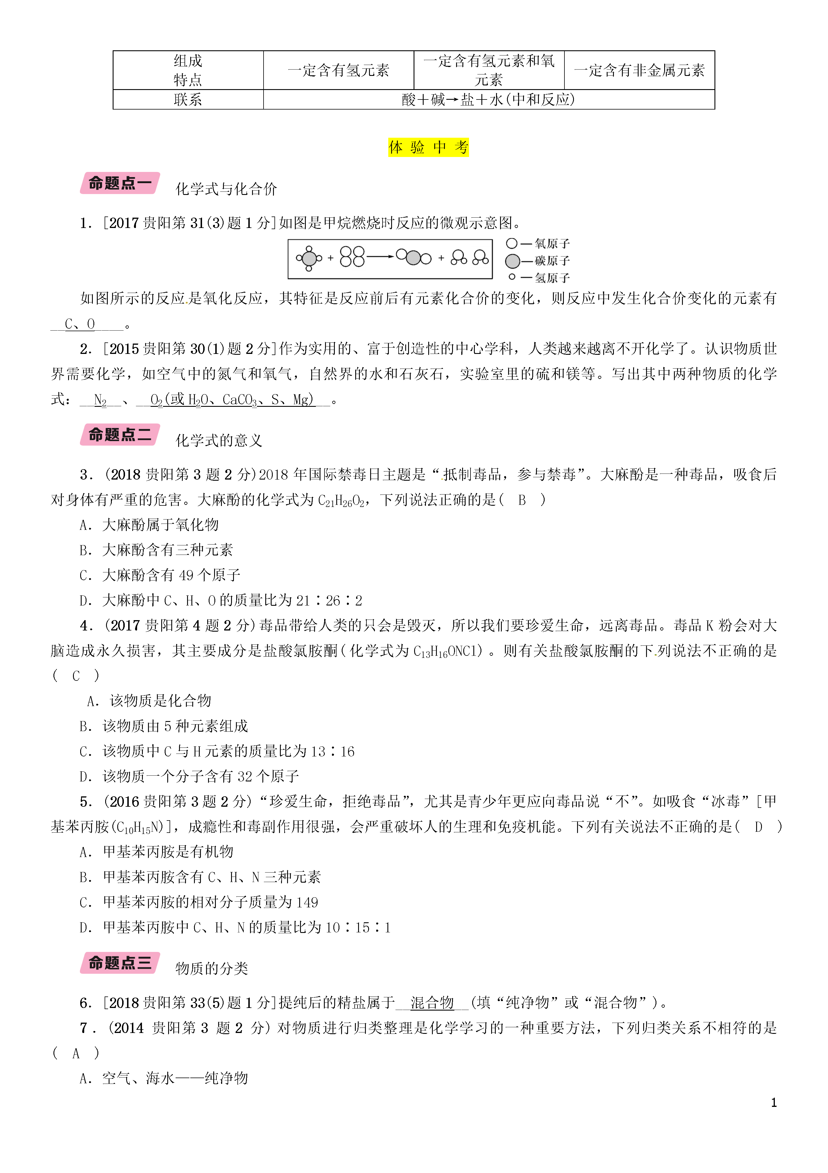 试题-全国-2019_(贵阳专版)2019年中考化学总复习 第1编 主题复习 模块2 物质构成的奥秘 课时10 化学式和化合价 物质的分类(精讲)习题.doc