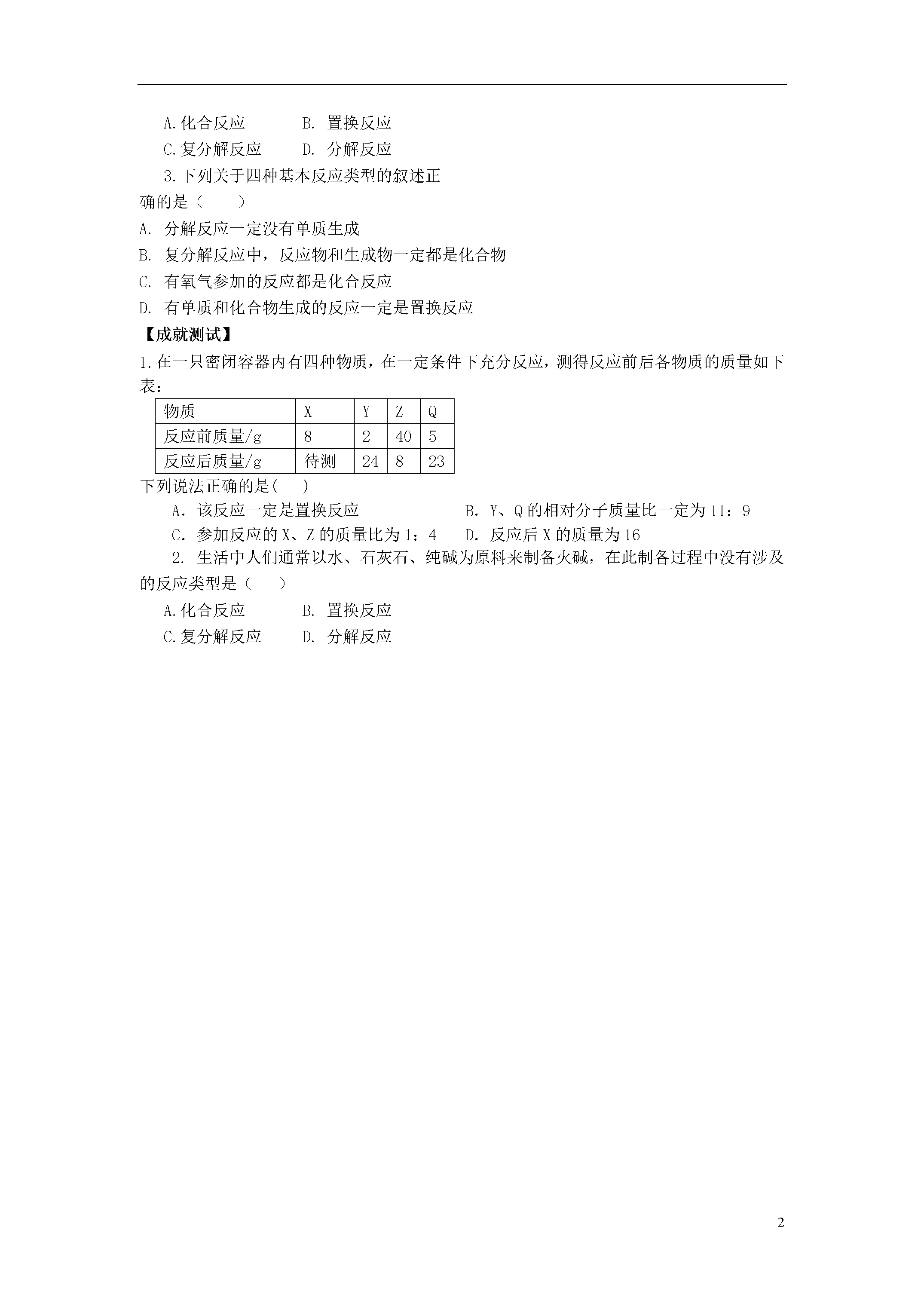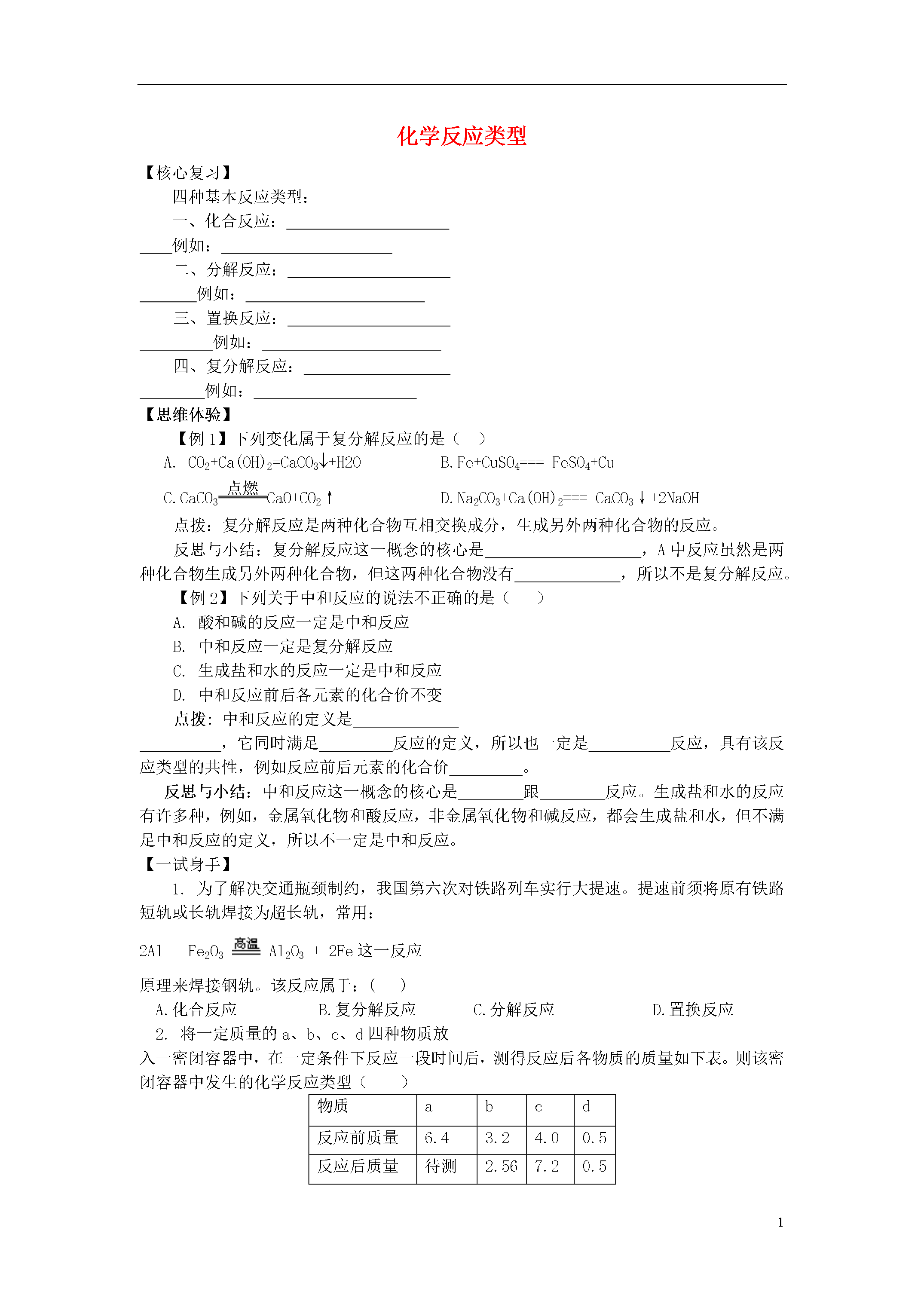 中考化学二轮复习物质的变化专题之化学反应类型(无答案).doc