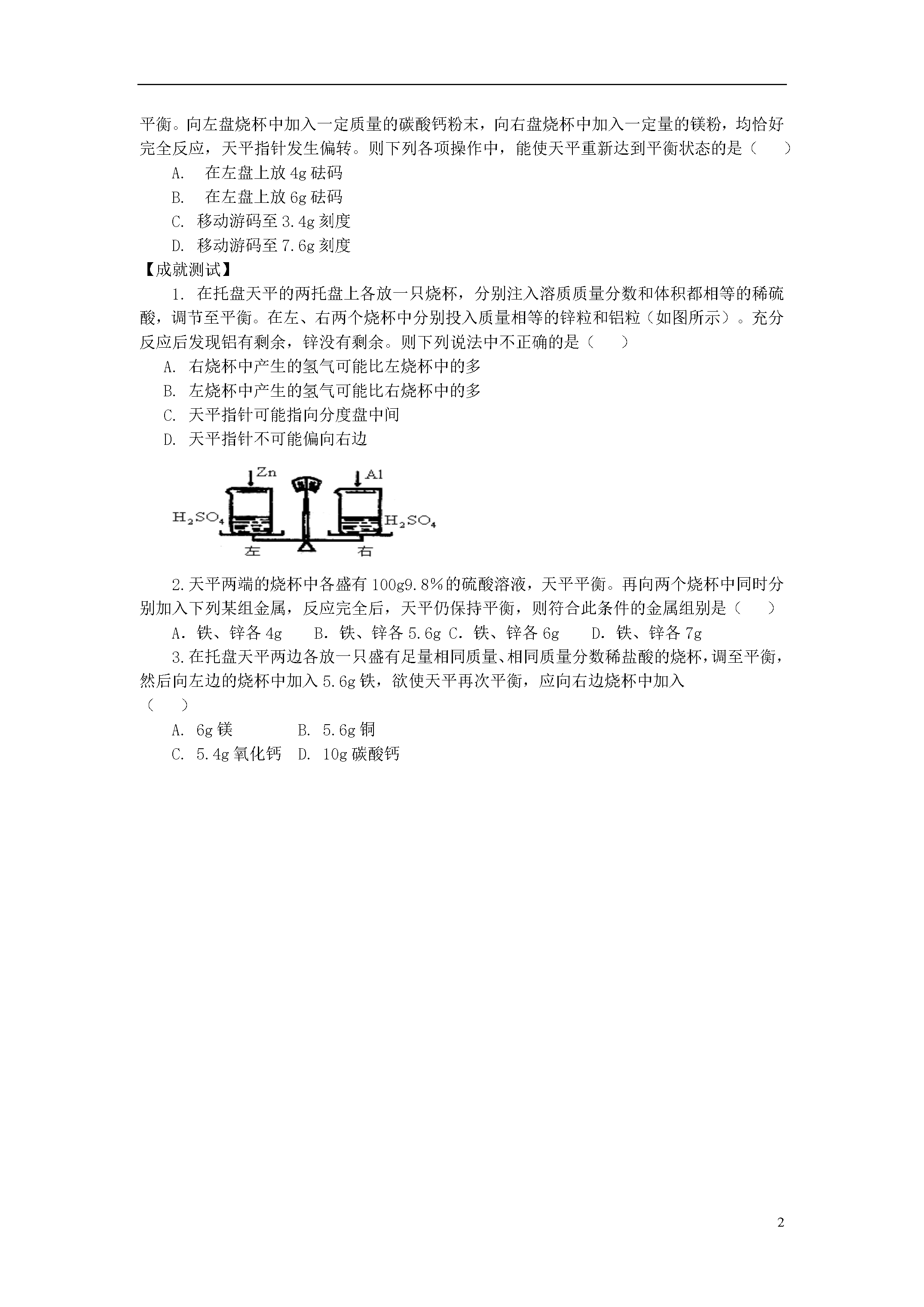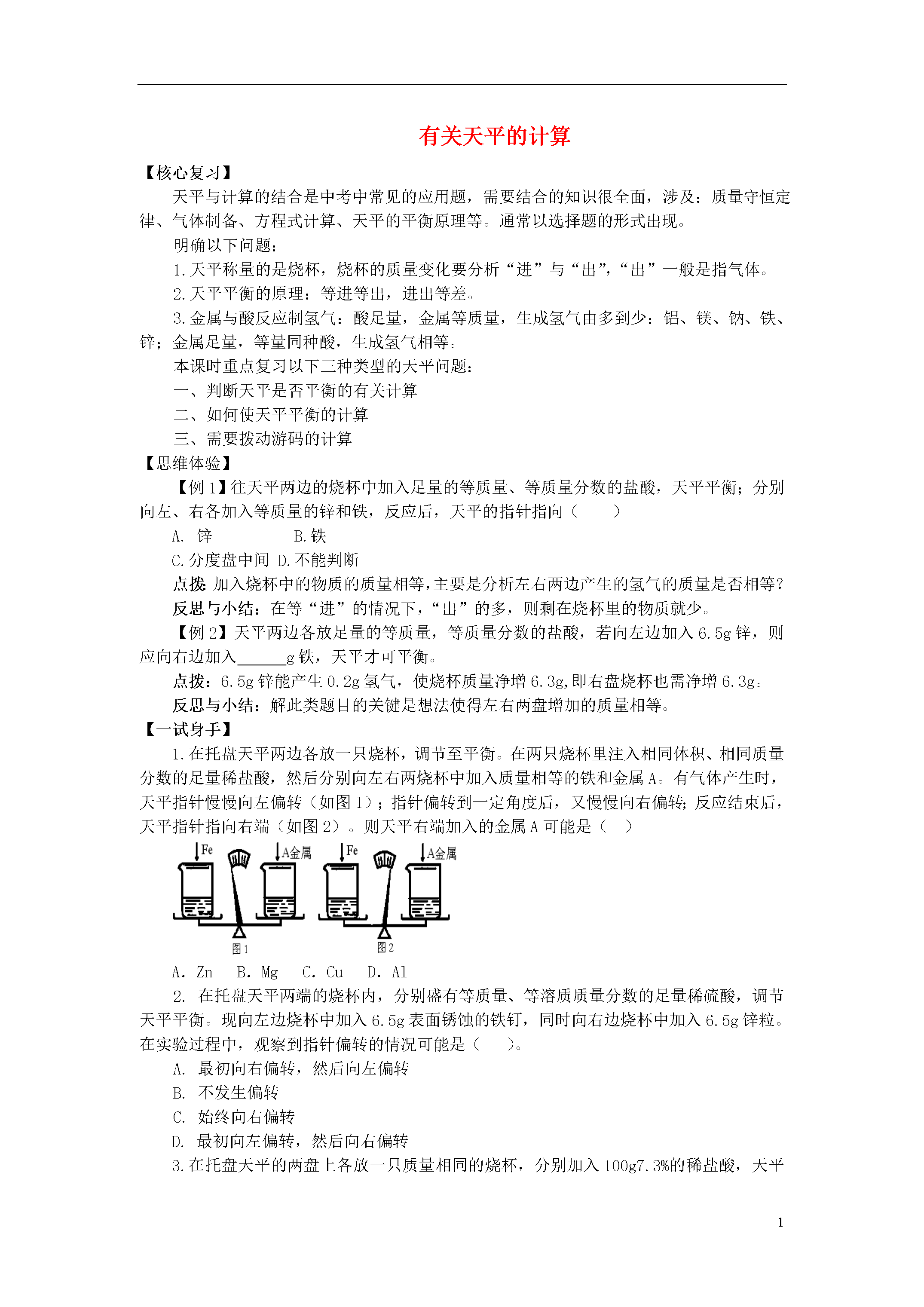 中考化学二轮复习物质的变化专题之有关天平的计算(无答案).doc