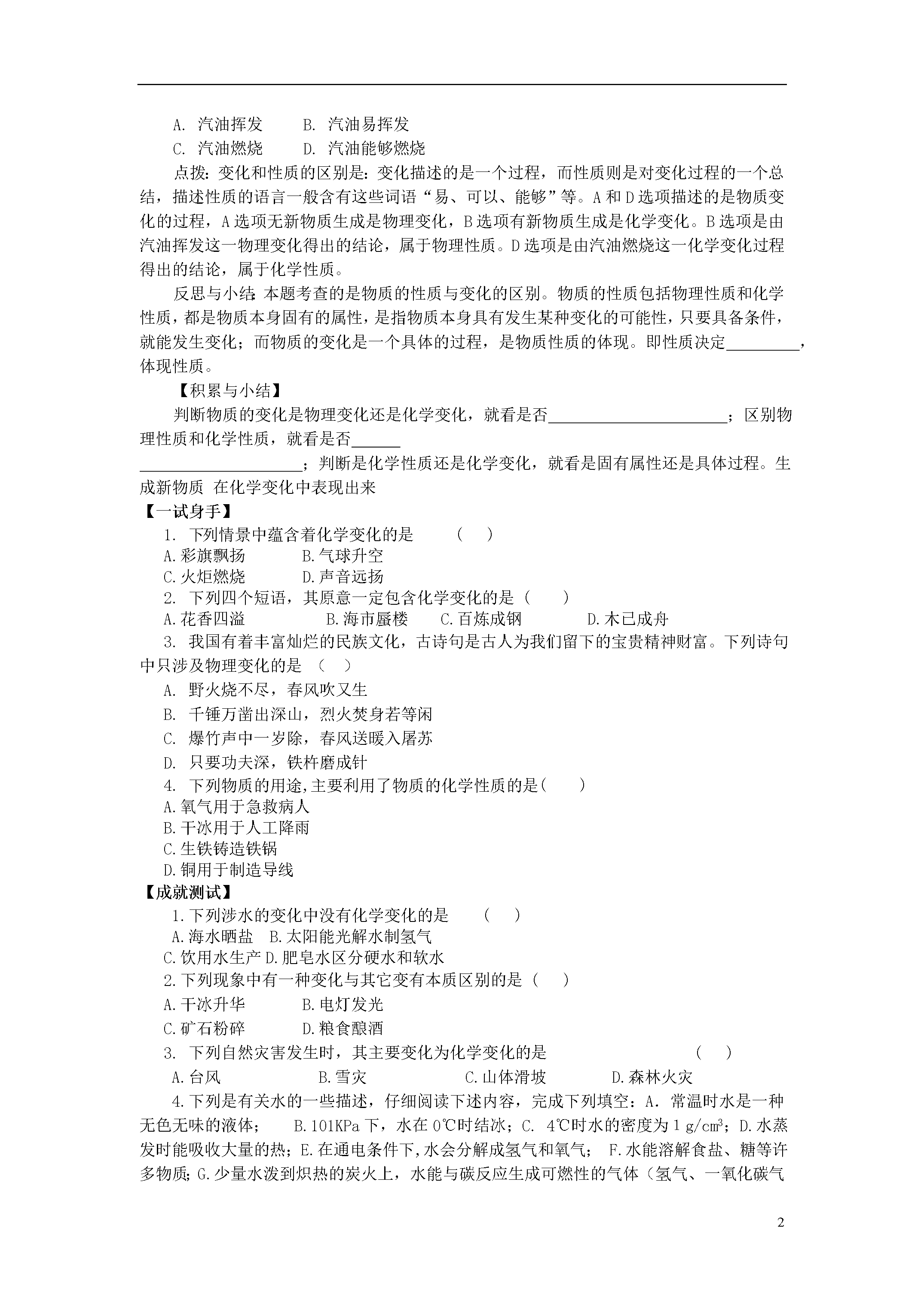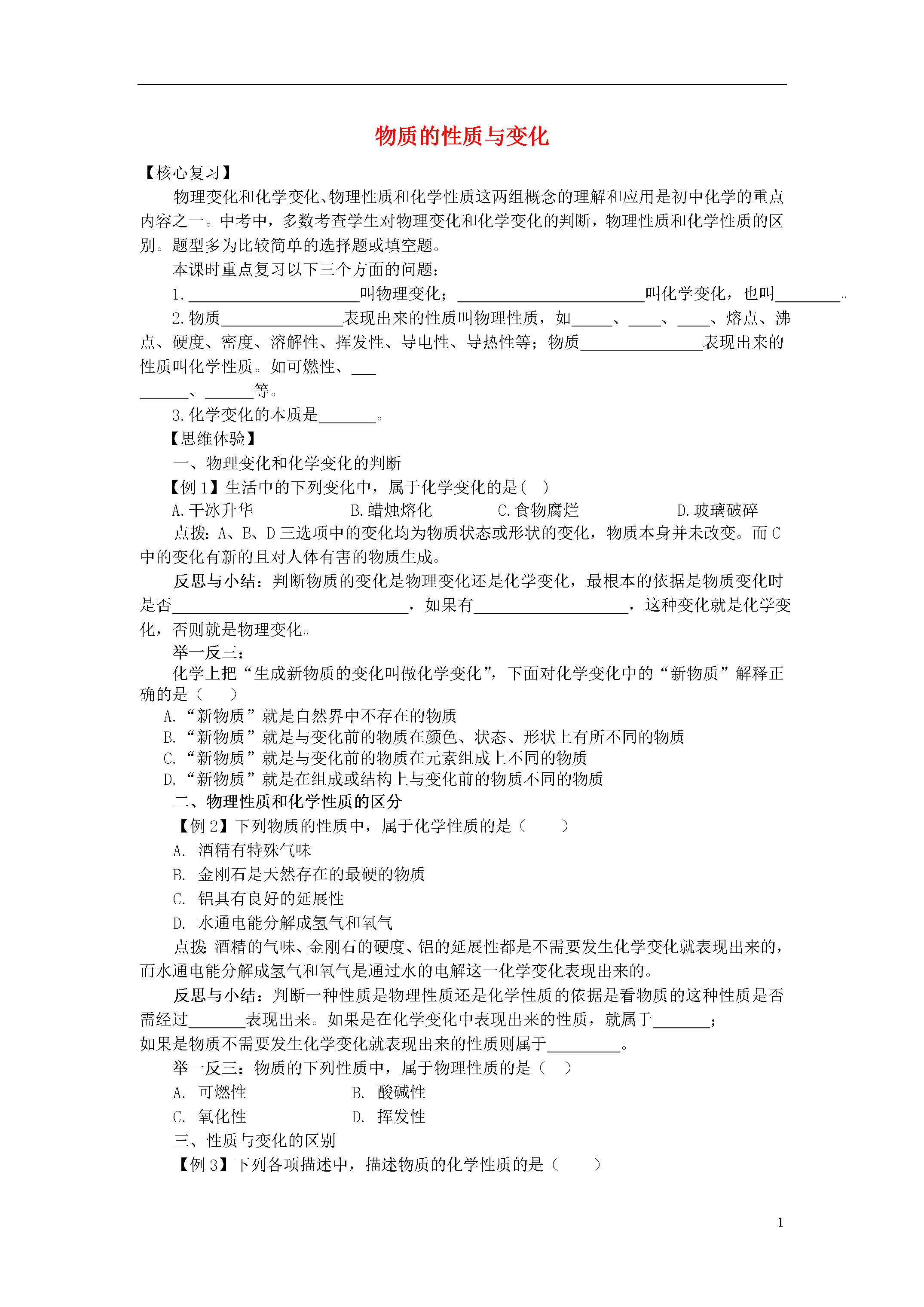 中考化学二轮复习物质的变化专题之物质的性质和变化(无答案).doc