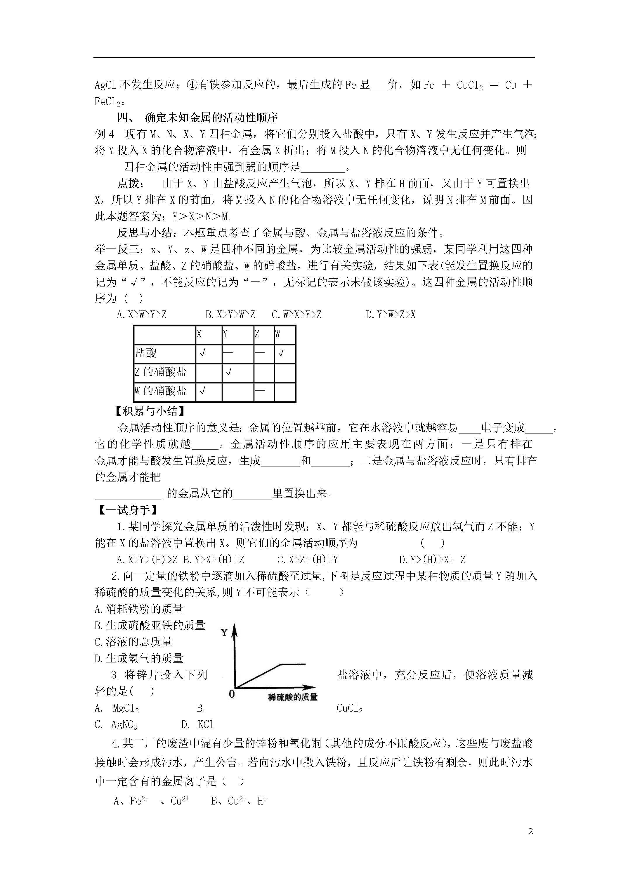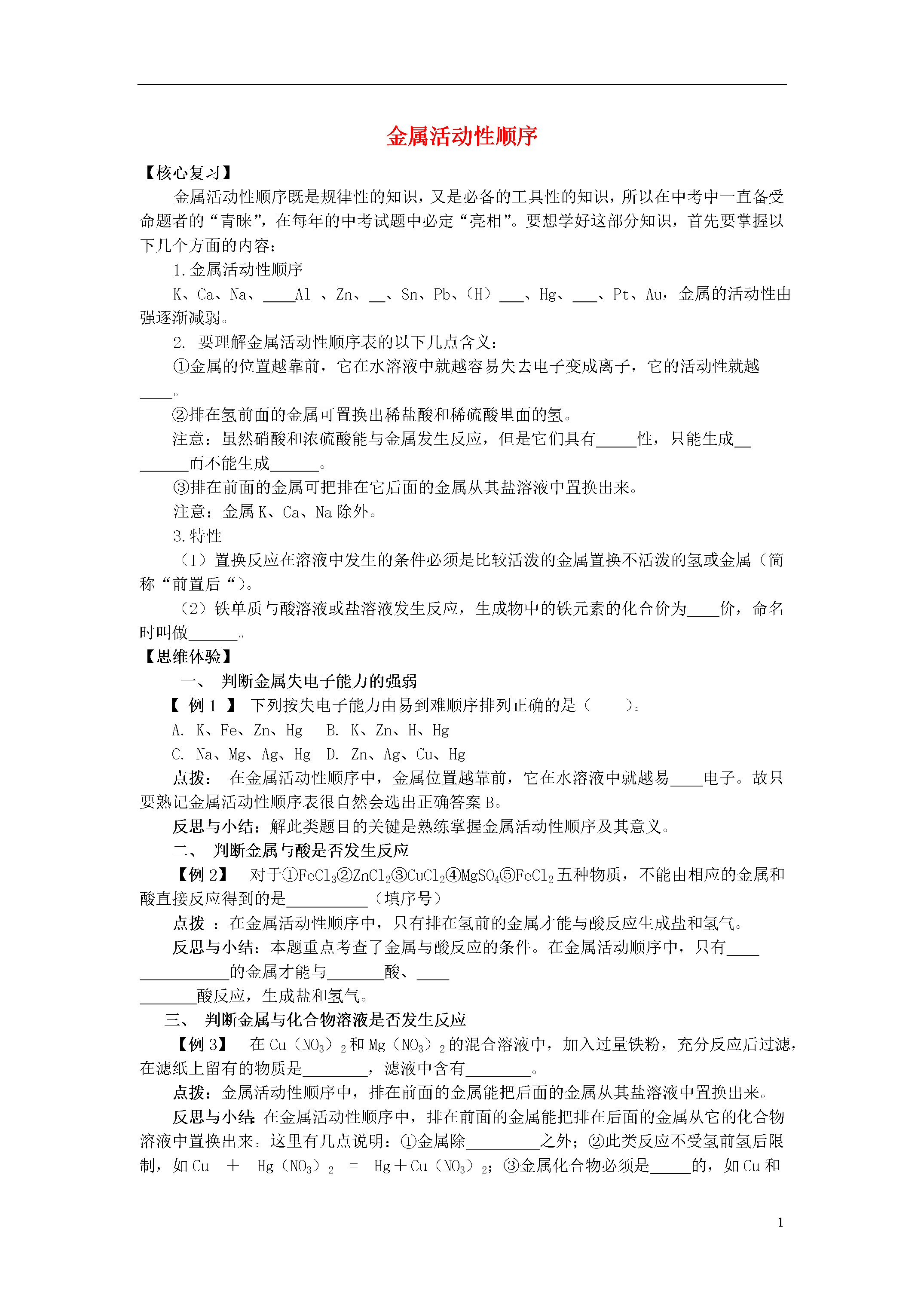 中考化学二轮复习物质的变化专题之金属的活动性顺序(无答案).doc