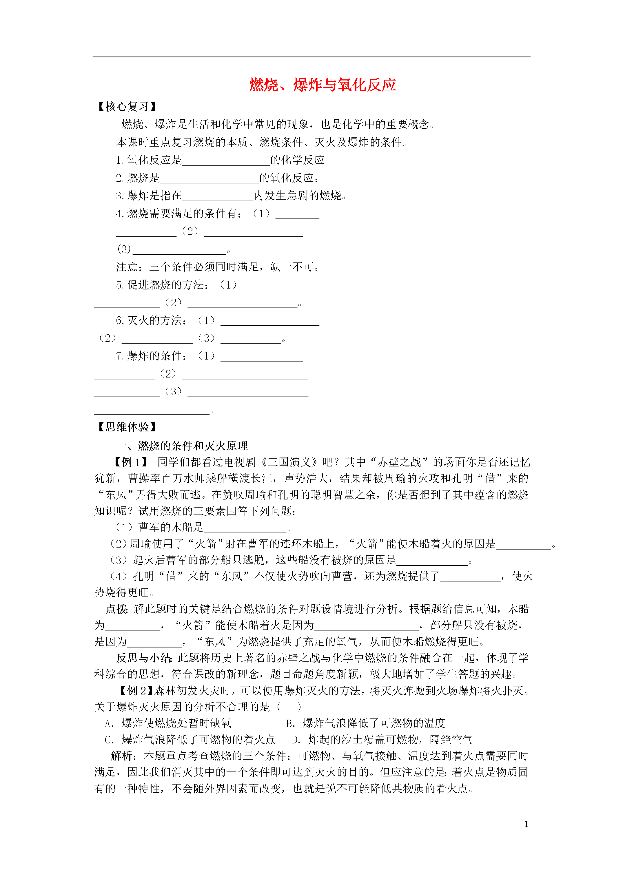 中考化学二轮复习物质的变化专题之燃烧、爆炸缓慢氧化(无答案).doc