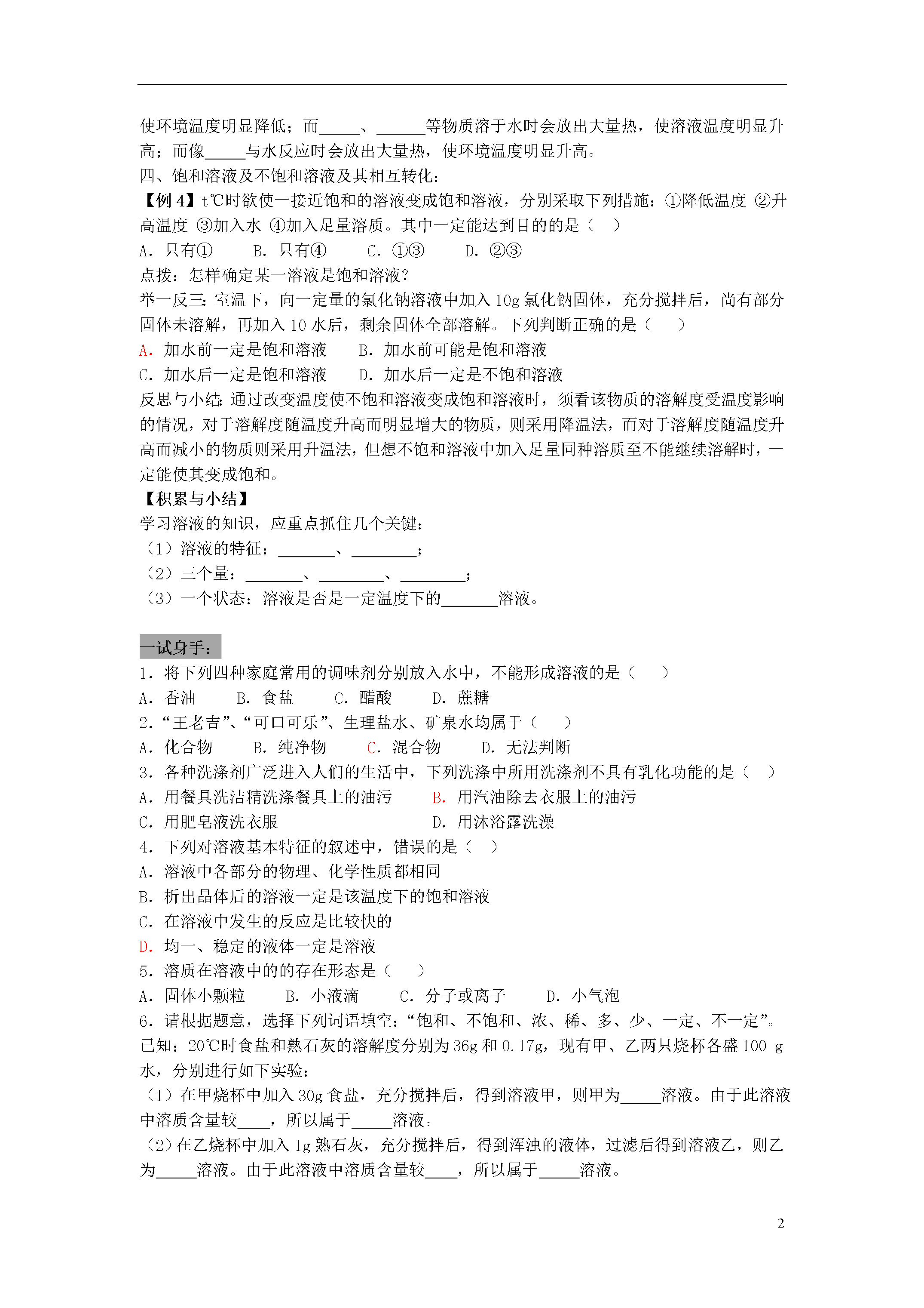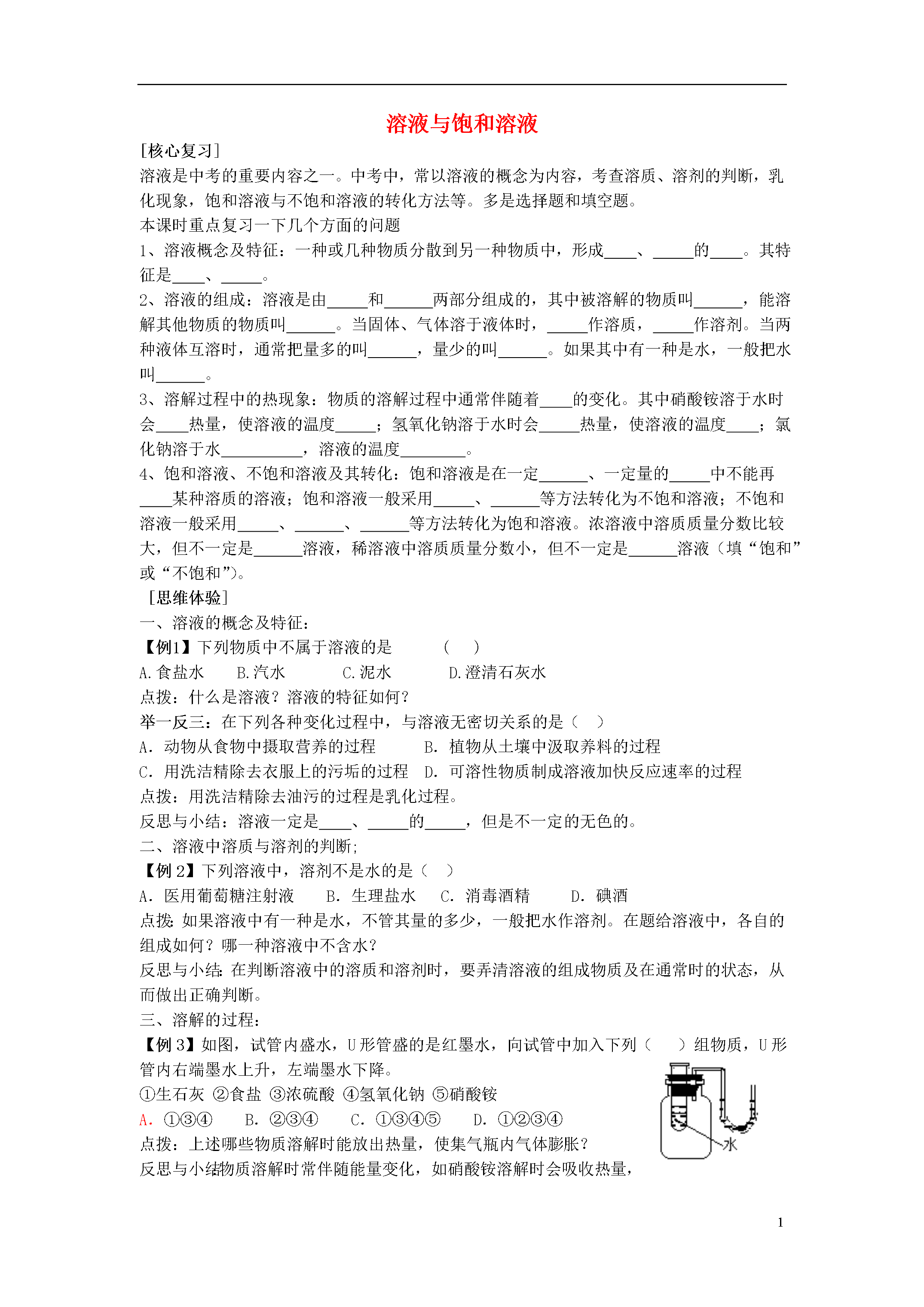 中考化学二轮复习身边的化学物质专题之溶液和饱和溶液(无答案).doc