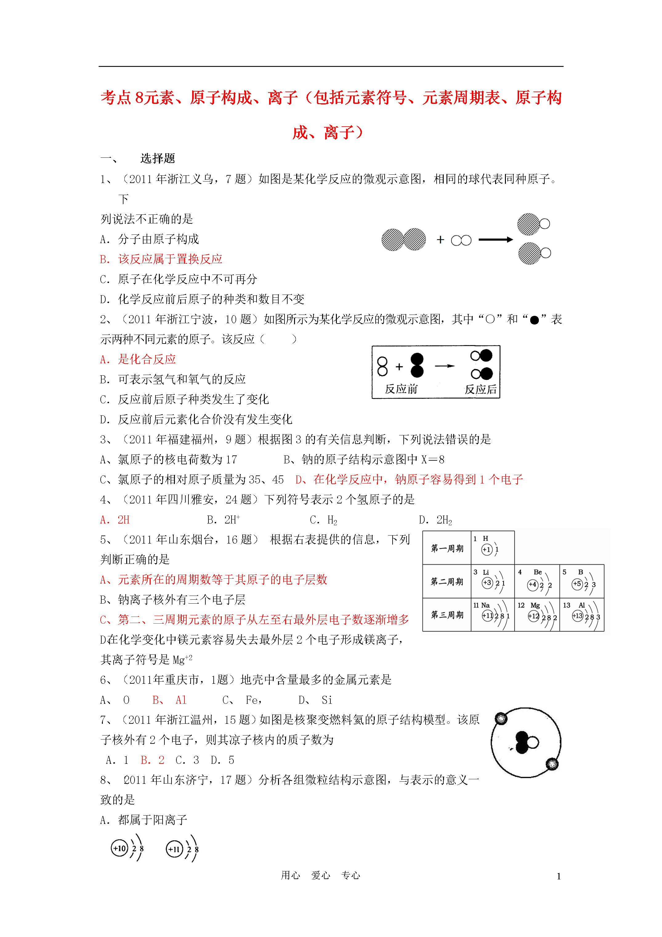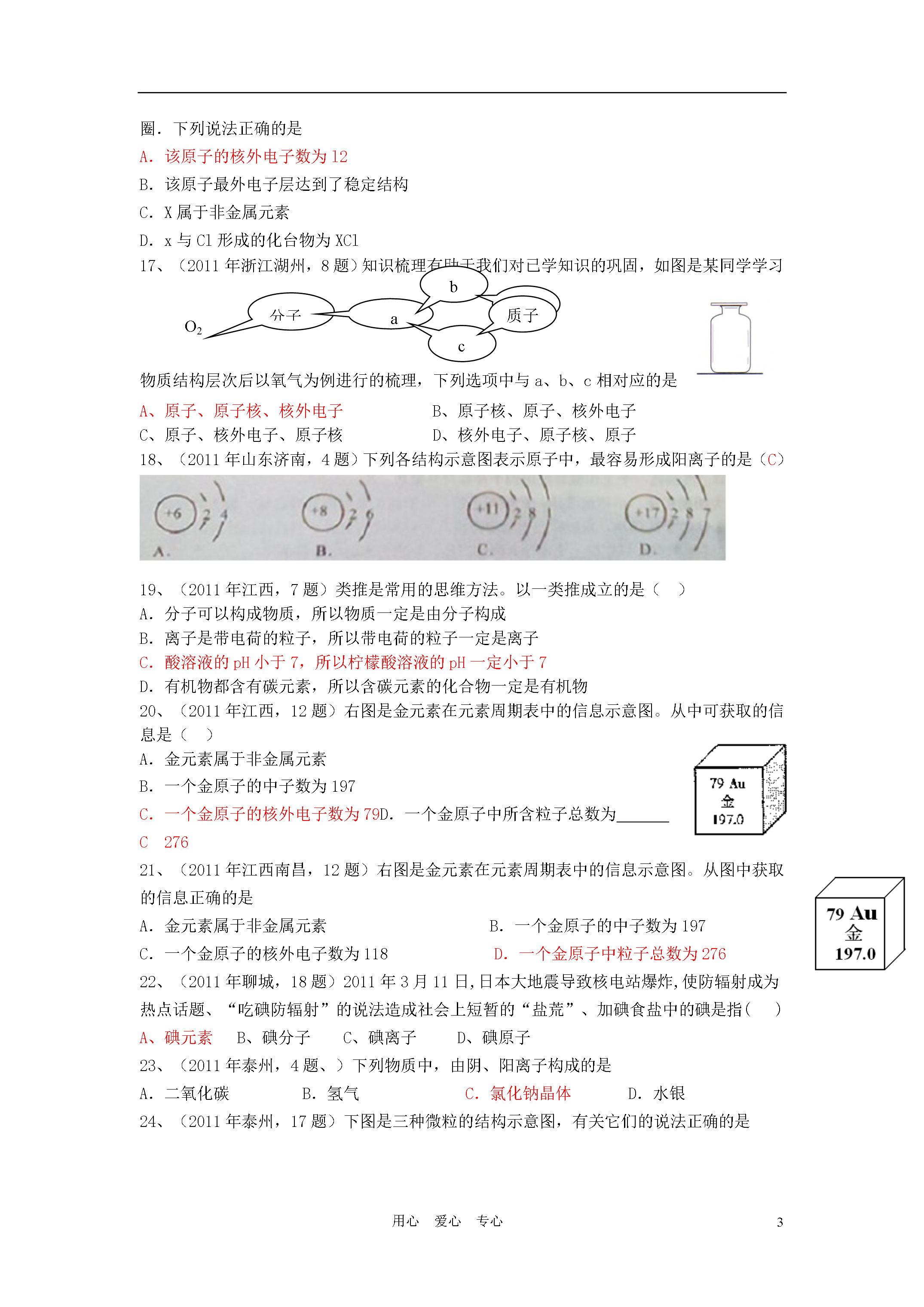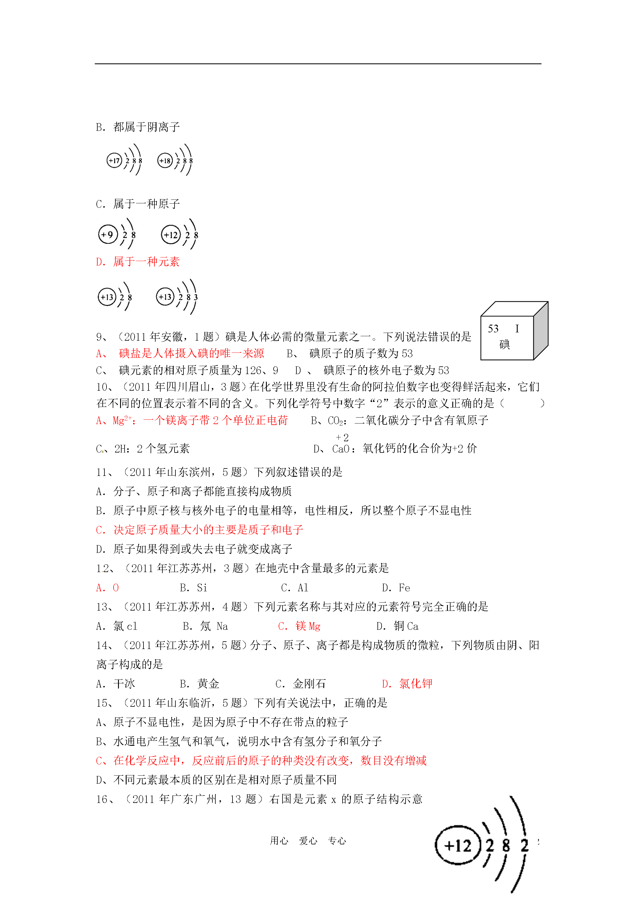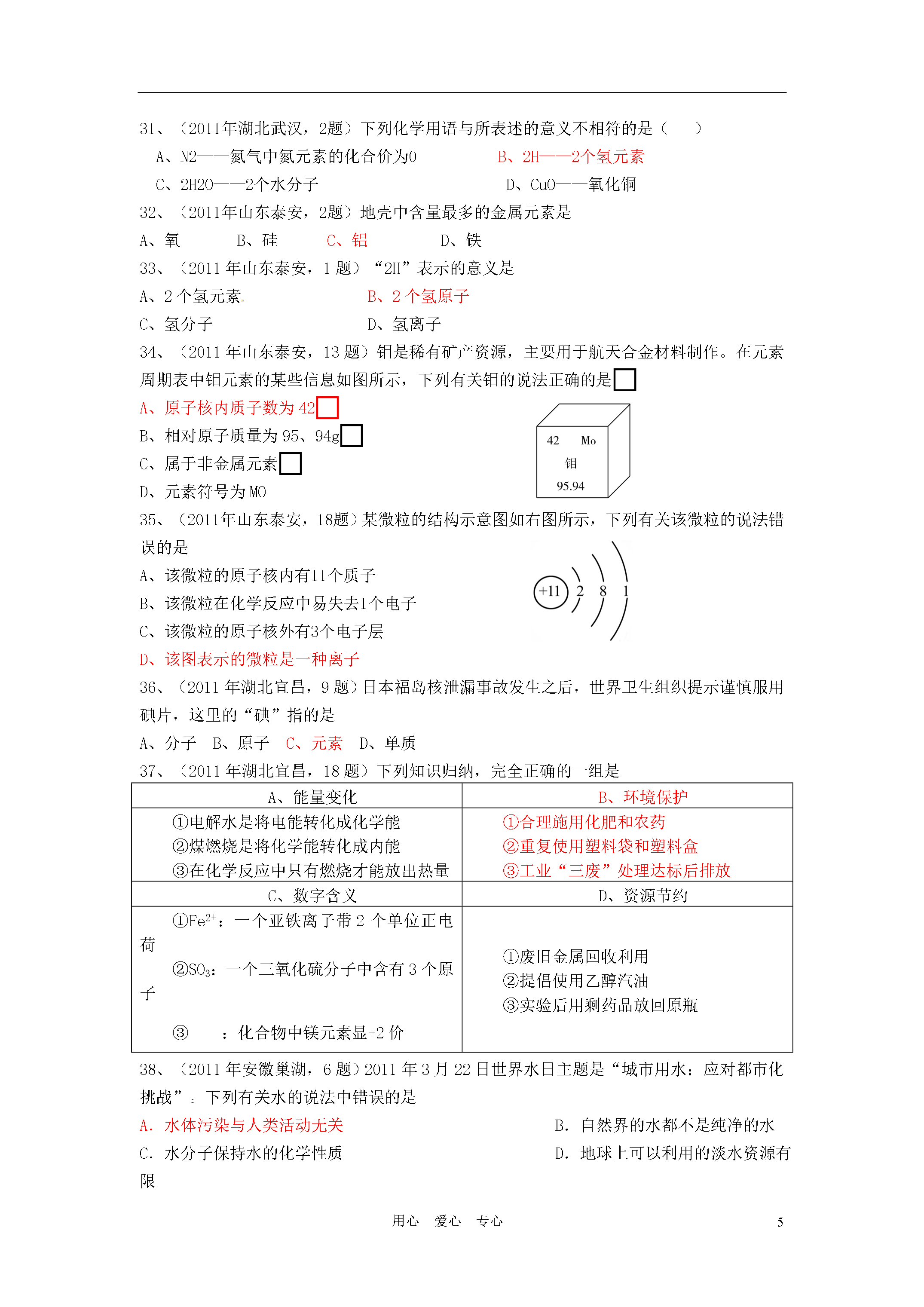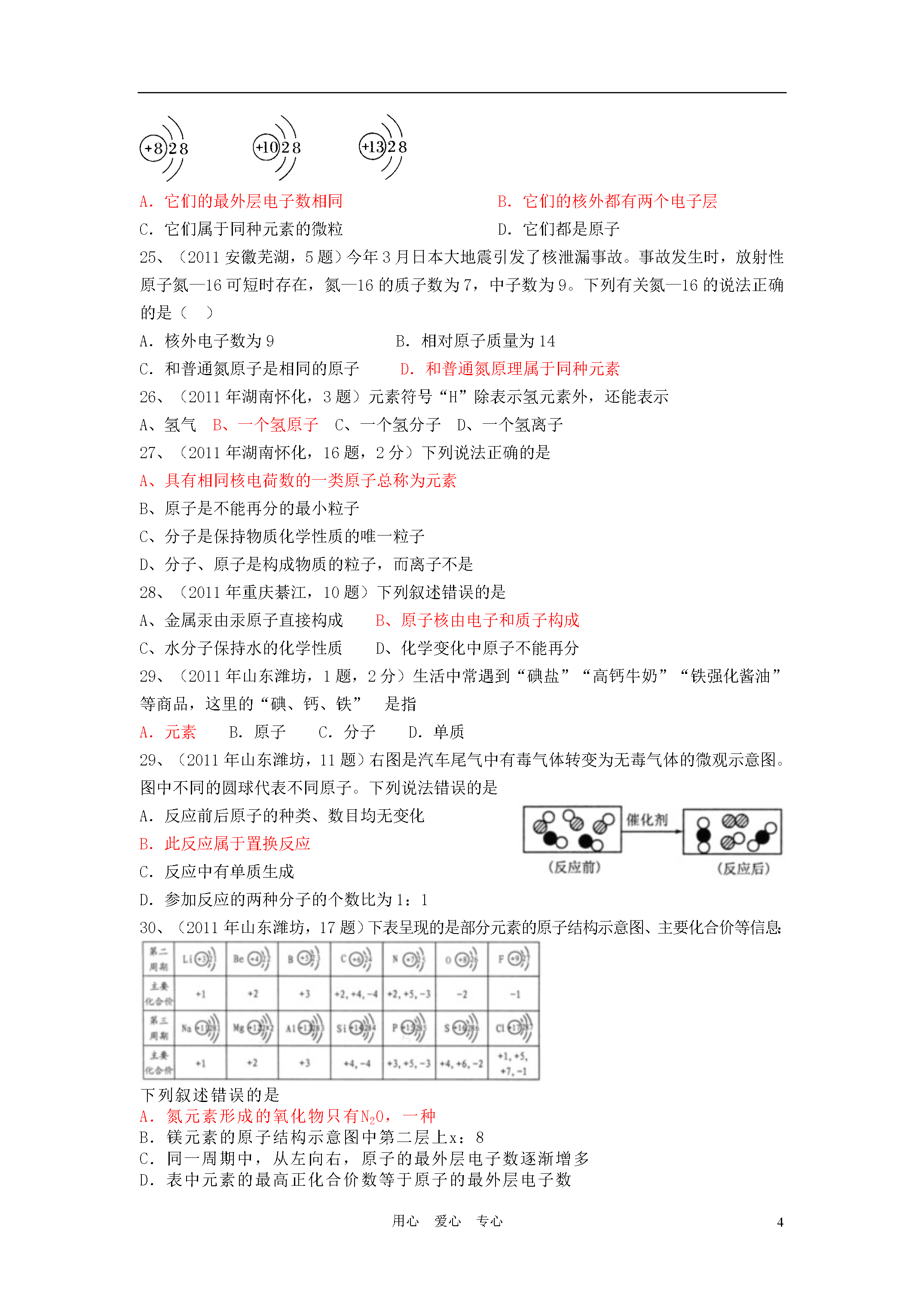 试题-全国-2011_(精华版2年中考按29个知识点+7大主题分类)2010-2011中考化学真题按知识点分类考点8 元素原子构成离子.rar