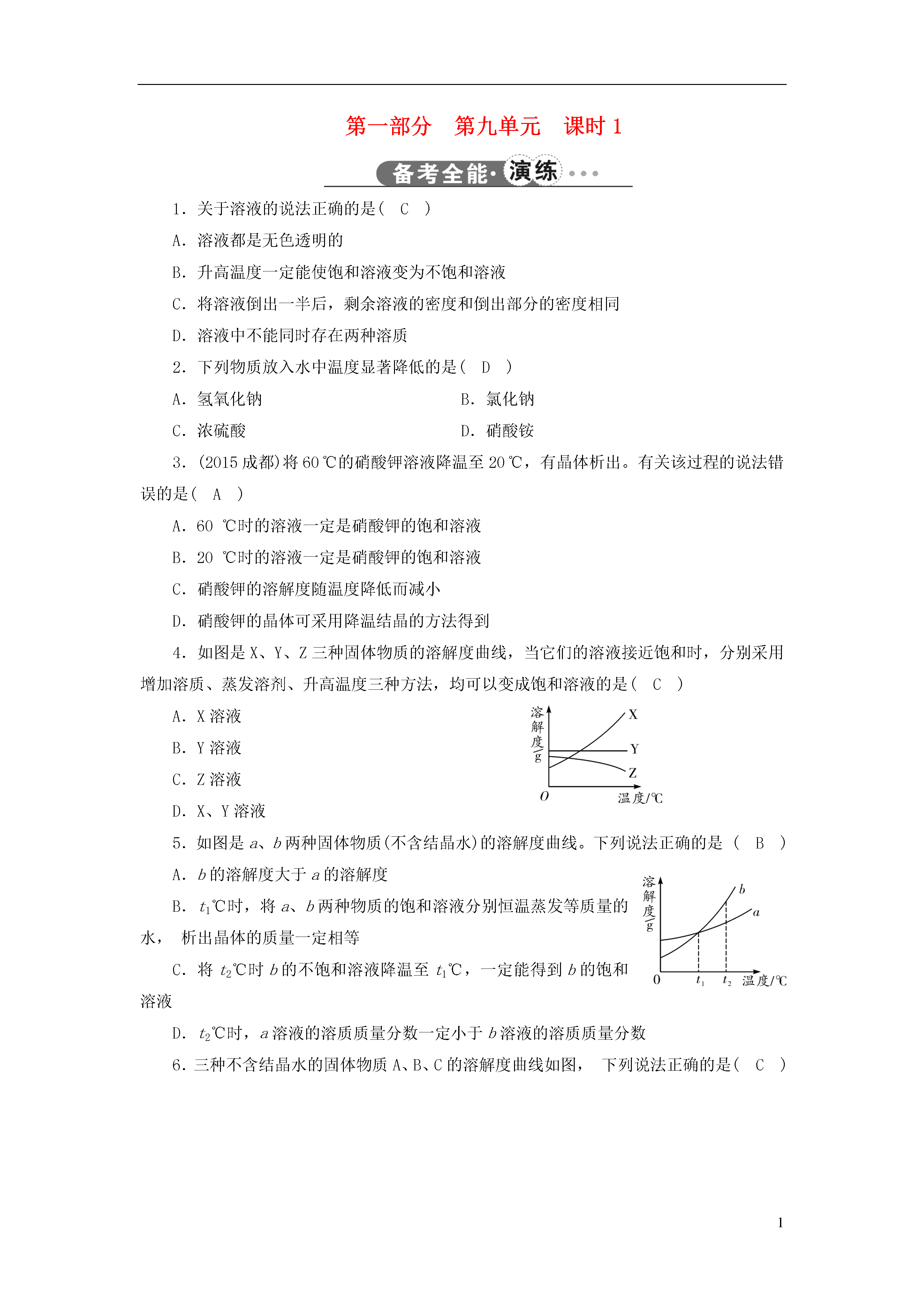 试题-云南-2015_中考新突破云南省2016中考化学 第一部分 第9单元 课时1 溶液及溶解度备考全能演练.doc