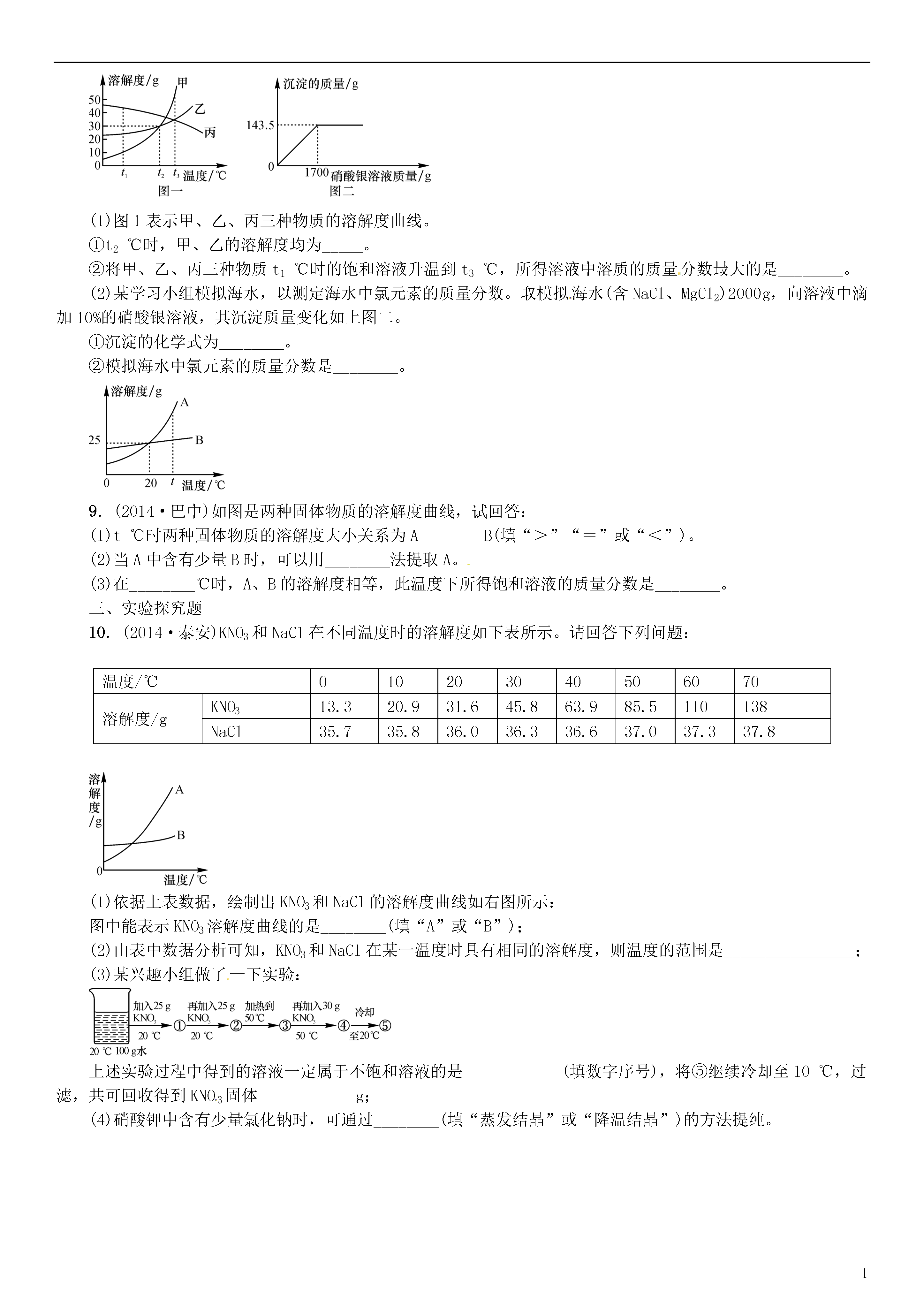 试题-全国-2015_火线100天(四川专版)2016中考化学 第一单元 身边的化学物质 滚动小专题(三)溶解度曲线及其应用复习.doc