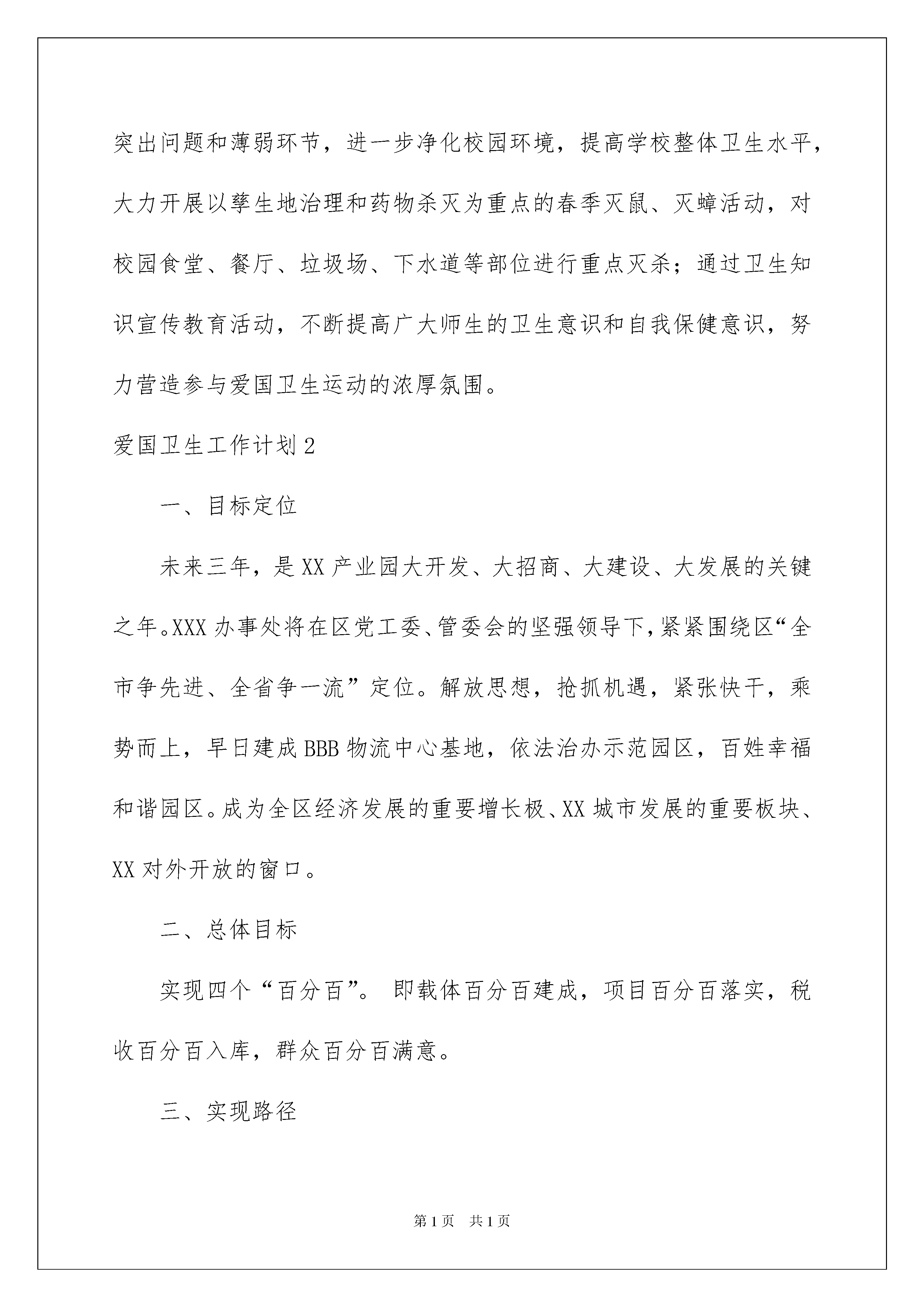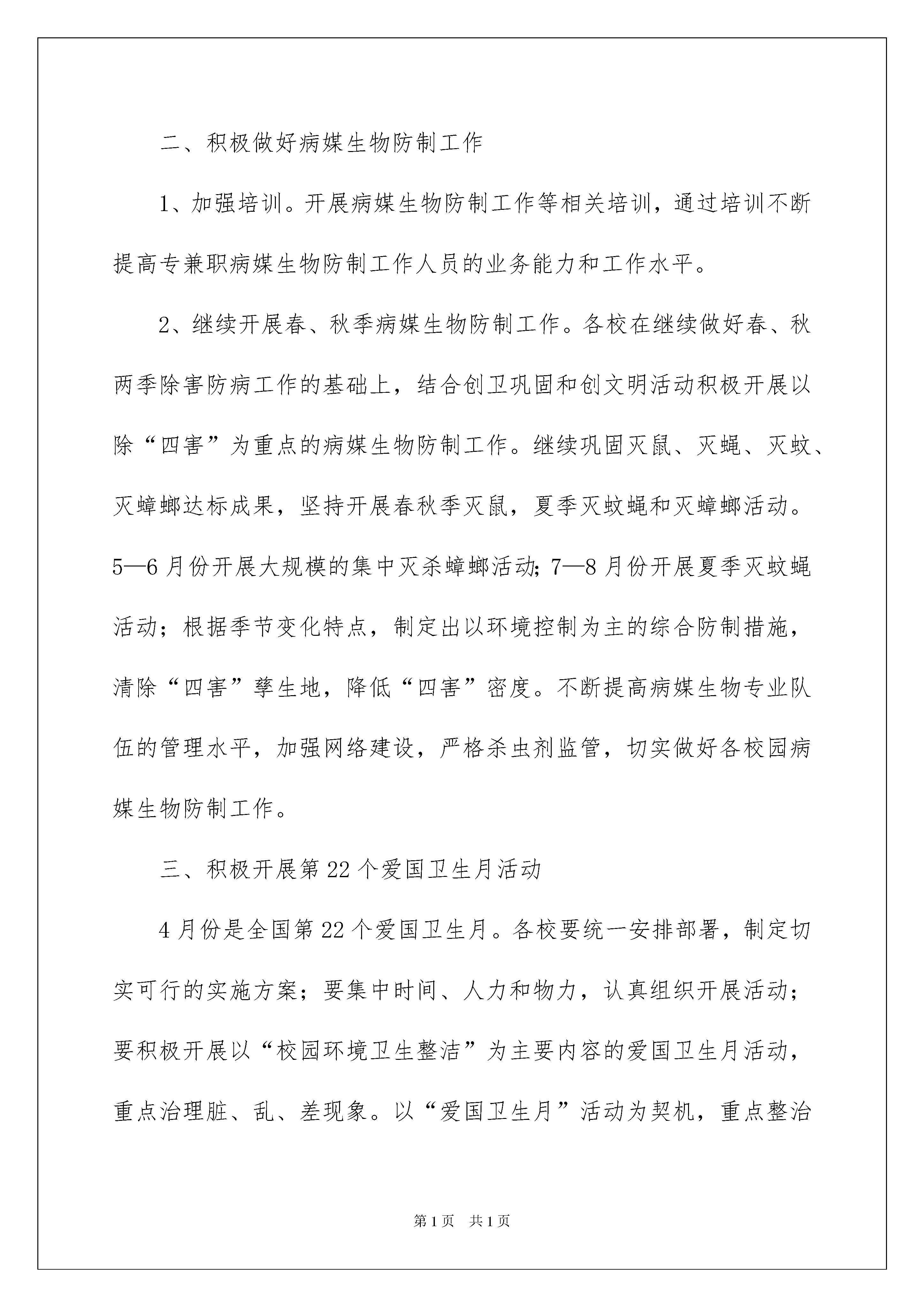 2022爱国卫生工作计划爱国卫生工作计划时光在流逝,从不停歇,我们又将续写新的诗篇,展开新的旅程,来为以后的工作做一份计划吧。好的计划都具备一些什么特点呢?下面是我整理的爱国卫生工作计划,希望对大家有所帮助。爱国卫生工作计划1为了认真做好我乡爱国卫生工作,根据创建国家卫生县城目标任务和淳爱卫办发文件要求,结合我乡实际,现制定20xx年爱国卫生工作计划如下:一、加强爱卫组织建设,建立健全爱卫工作长效机制各校要建立健全爱国卫生月制度、周末卫生日制度、环境卫生整治制度及病媒生物防制和检查评比等各项卫生管理制度,同时要建立奖惩等激励机制。爱国卫生工作每年要有计划、有部署、有落实、有总结,并纳入学校的目标管理,制定切实可行的长效管理机制。通过建立一整套爱卫工作长效管理机制,使爱国卫生工作经常化、制度化、规范化。二、积极做好病媒生物防制工作1、加强培训。开展病媒生物防制工作等相关培训,通过培训不断提高专兼职病媒生物防制工作人员的业务能力和工作水平。2、继续开展春、秋季病媒生物防制工作。各校在继续做好春、秋两季除害防病工作的基础上,结合创卫巩固和创文明活动积极开展以除“四害”为重点的病媒生物防制工作。继续巩固灭鼠、灭蝇、灭蚊、灭蟑螂达标成果,坚持开展春秋季灭鼠,夏季灭蚊蝇和灭蟑螂活动。5—6月份开展大规模的集中灭杀蟑螂活动;7—8月份开展夏季灭蚊蝇活动;根据季节变化特点,制定出以环境控制为主的综合防制措施,清除“四害”孳生地,降低“四害”密度。不断提高病媒生物专业队伍的管理水平,加强网络建设,严格杀虫剂监管,切实做好各校园病媒生物防制工作。三、积极开展第22个爱国卫生月活动4月份是全国第22个爱国卫生月。各校要统一安排部署,制定切实可行的实施方案;要集中时间、人力和物力,认真组织开展活动;要积极开展以“校园环境卫生整洁”为主要内容的爱国卫生月活动,重点治理脏、乱、差现象。以“爱国卫生月”活动为契机,重点整治突出问题和薄弱环节,进一步净化校园环境,提高学校整体卫生水平,大力开展以孳生地治理和药物杀灭为重点的春季灭鼠、灭蟑活动,对校园食堂、餐厅、垃圾场、下水道等部位进行重点灭杀;通过卫生知识宣传教育活动,不断提高广大师生的卫生意识和自我保健意识,努力营造参与爱国卫生运动的浓厚氛围。爱国卫生工作计划2一、目标定位未来三年,是XX产业园大开发、大招商、大建设、大发展的关键之年。XXX办事处将在区党工委、管委会的坚强领导下,紧紧围绕区“全市争先进、全省争一流”定位。解放思想,抢抓机遇,紧张快干,乘势而上,早日建成BBB物流中心基地,依法治办示范园区,百姓幸福和谐园区。成为全区经济发展的重要增长极、XX城市发展的重要板块、XX对外开放的窗口。二、总体目标实现四个“百分百”。即载体百分百建成,项目百分百落实,税收百分百入库,群众百分百满意。三、实现路径一是拉开大框架,快速征地拆迁。计划拆迁辖区范围内房屋?户、面积约?万平方米。建设安置房?万平方米,提供净地近?亩。二是搭建大平台,全面实施基础实施建设。突出内部完善路网,对外打开通道。对内,未来三年,将建成AA路、BB路、CC路等9条道路?公里。所有道路绿化、亮化、给水、排水、供电、电讯等配套到位,形成“六横十三纵”的道路框架,使?平方公里范围内成为设施齐全、功能配套的基本建成区。对外,向南xx路与xx路对接,构建与市区的快速通道,向西对接xx路,向北打通xx路,向东与开发区对接,构建外部交通大通道。三是招引大项目,着力招商引资。围绕现代物流、精密电子、金融、现代服务业等产业,力争招引亿元以上企业5家,其中10亿元以上企业1家,实现招引外资1亿美元。建成省级仓储物流园、电子商务园、总部经济园等。到20xx年,力争辖区内各类私营企业超50户,培植列统企业10家,个体工商户200户。实现企业销售收入达到5亿,税收达到1000万。四是促进大和谐,倾情关注民生。积极开展精神文明建设、社区文化活动。医保、城保实现应保尽保;实行“一委一居一站一办”的社区管理模式;实现“零违建”;积极创建省级示范社区。20xx年工作计划一、工作目标(一)经济建设。1、完成公共财政预算收入?万元,其他公共财政预算税收收入?万元;2、签约注册总投资1-5亿元民资项目2个。新发展私营企业10户;新增私营企业注册资本金5000万元,争取完成1亿元。培植列统企业3户。用工850人;3、拆迁300户,提供净地20xx亩。(二)民生发展。1、符合条件的城保参保率90%以上;2、稳定低生育水平,出生政策符合率92%以上;3、民政、残联等救助金发放率达100%;4、做好安全生产监督管理工作;5、金港