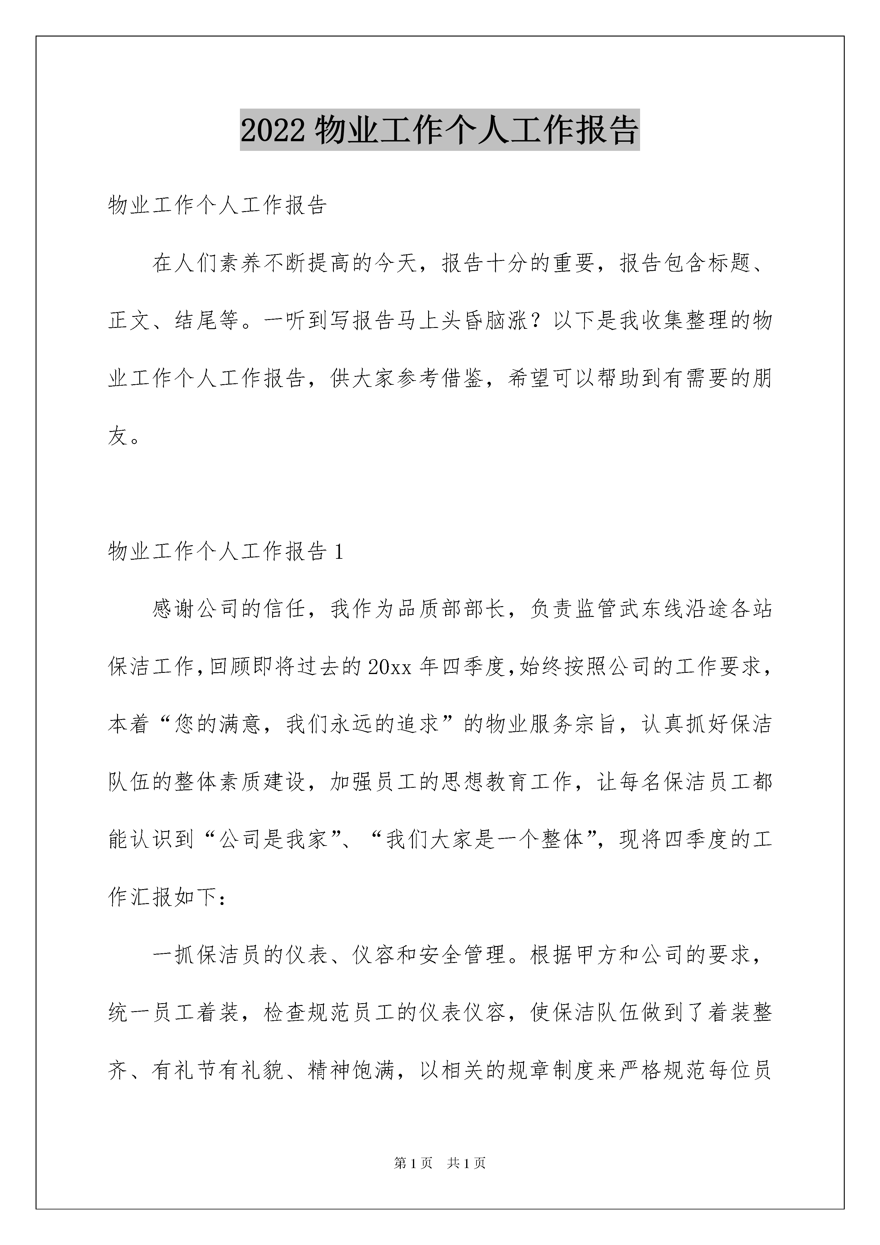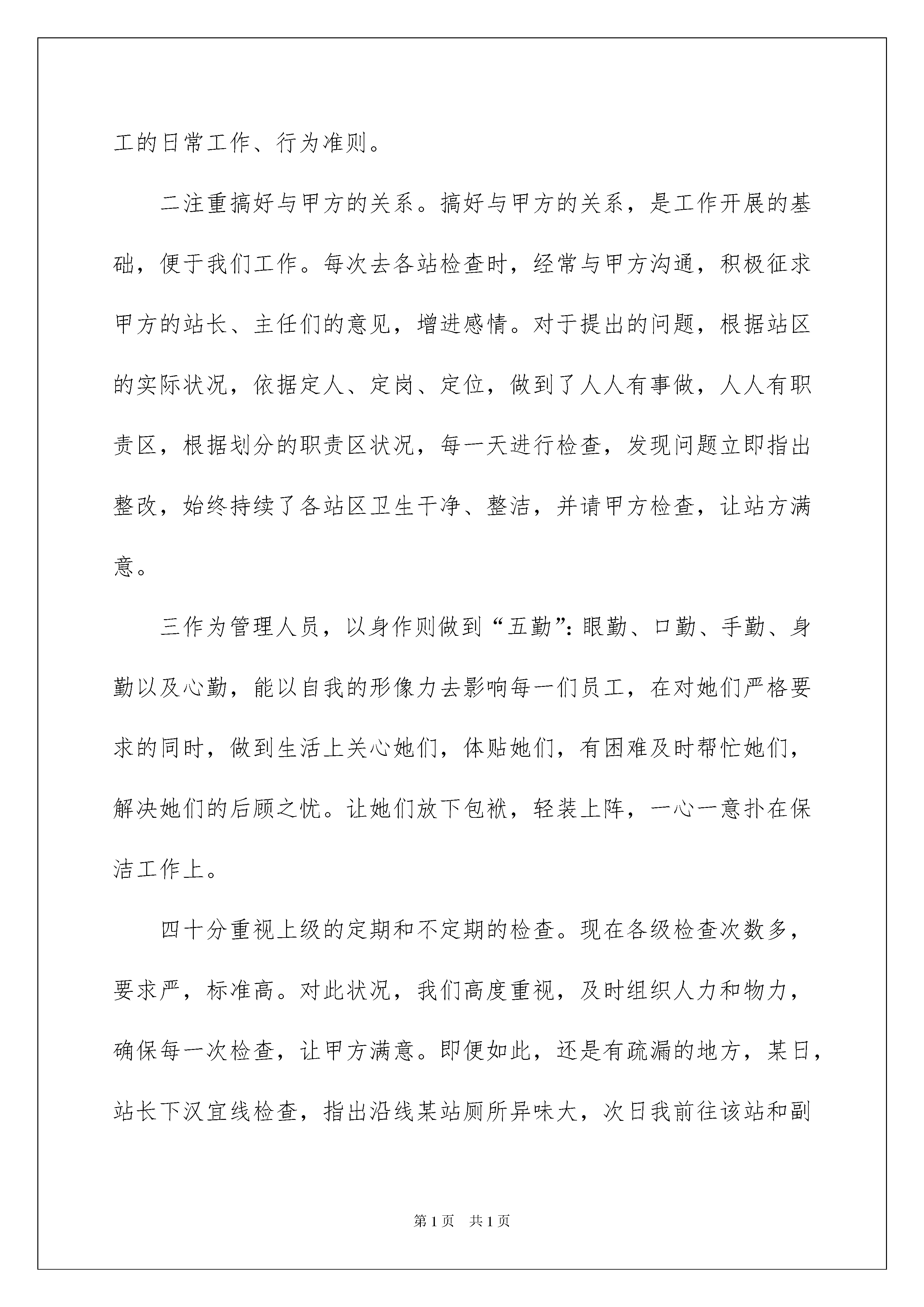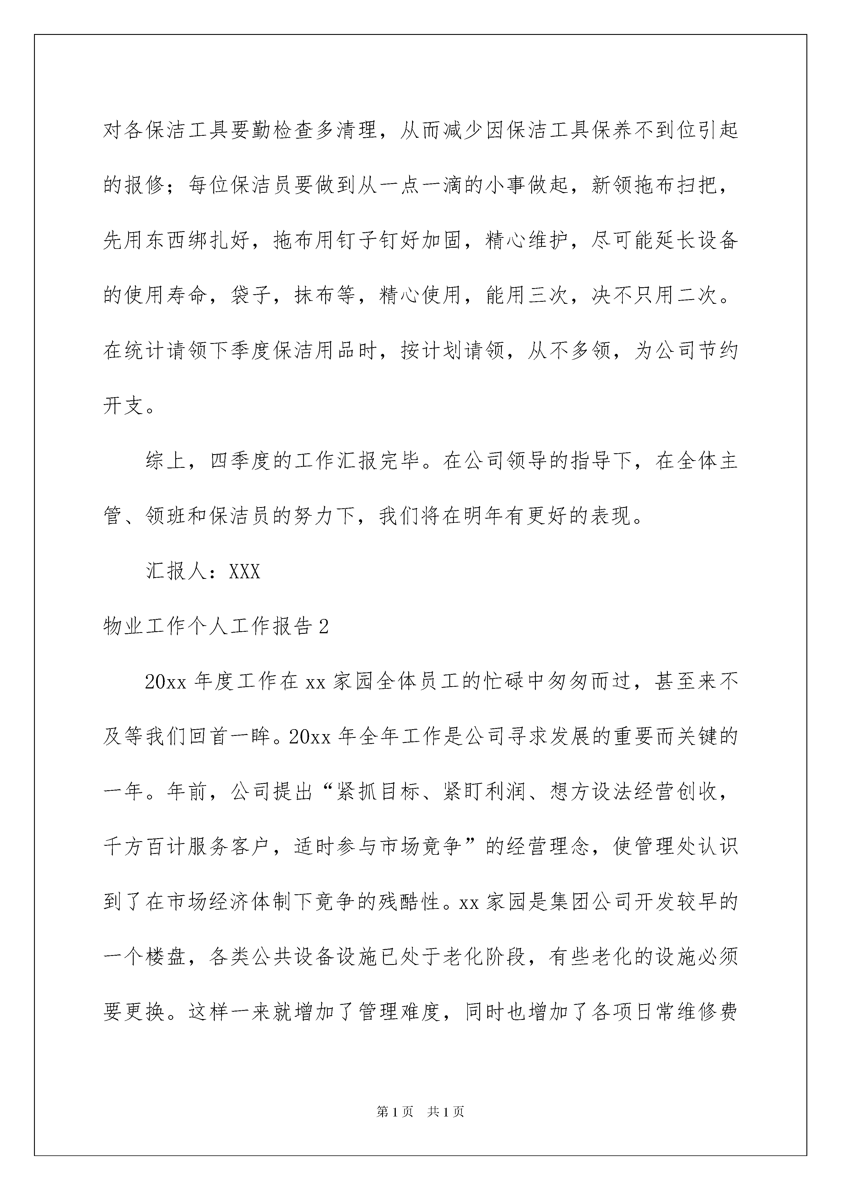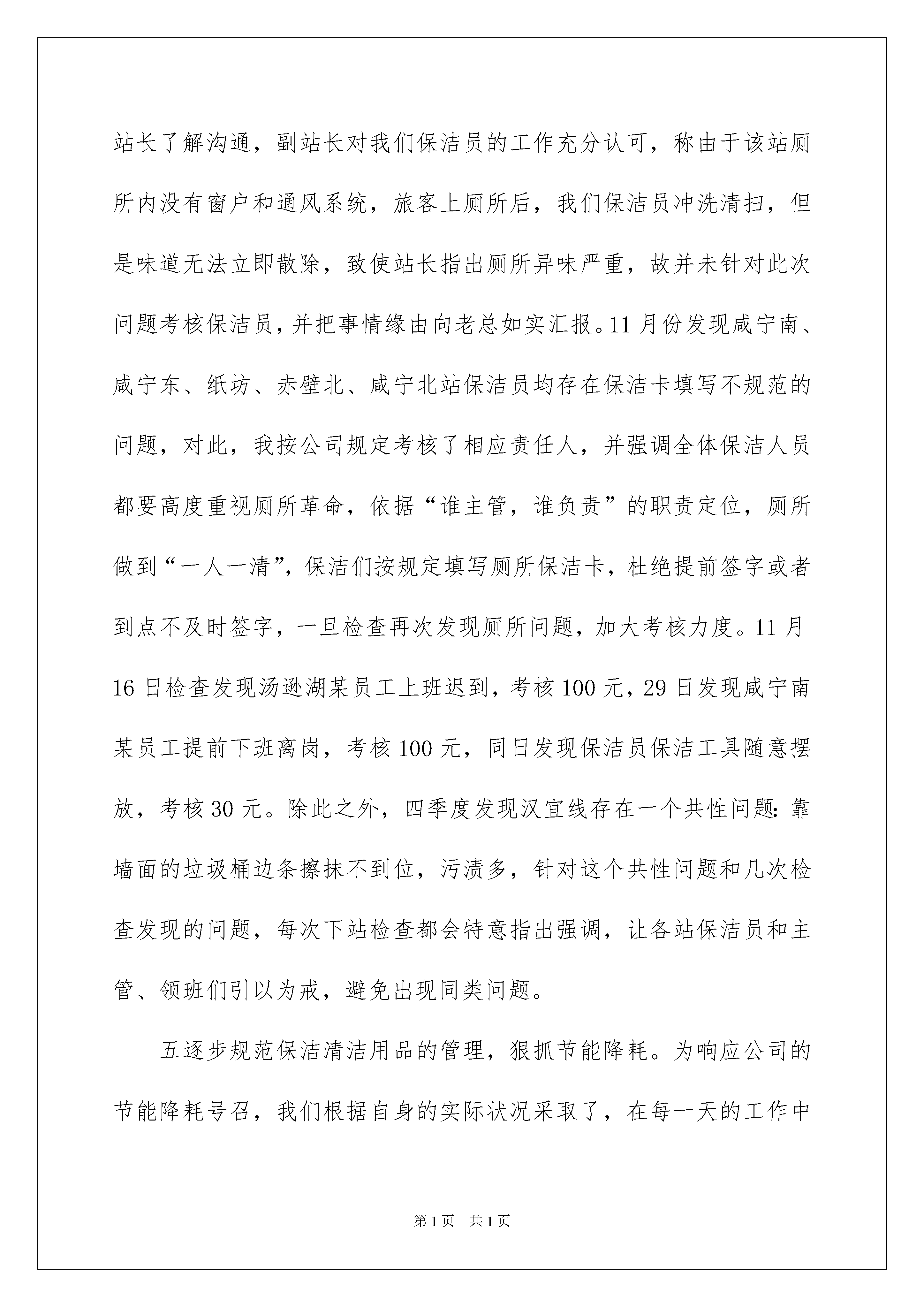 2022物业工作个人工作报告物业工作个人工作报告在人们素养不断提高的今天,报告十分的重要,报告包含标题、正文、结尾等。一听到写报告马上头昏脑涨?以下是我收集整理的物业工作个人工作报告,供大家参考借鉴,希望可以帮助到有需要的朋友。物业工作个人工作报告1感谢公司的信任,我作为品质部部长,负责监管武东线沿途各站保洁工作,回顾即将过去的20xx年四季度,始终按照公司的工作要求,本着“您的满意,我们永远的追求”的物业服务宗旨,认真抓好保洁队伍的整体素质建设,加强员工的思想教育工作,让每名保洁员工都能认识到“公司是我家”、“我们大家是一个整体”,现将四季度的工作汇报如下:一抓保洁员的仪表、仪容和安全管理。根据甲方和公司的要求,统一员工着装,检查规范员工的仪表仪容,使保洁队伍做到了着装整齐、有礼节有礼貌、精神饱满,以相关的规章制度来严格规范每位员工的日常工作、行为准则。二注重搞好与甲方的关系。搞好与甲方的关系,是工作开展的基础,便于我们工作。每次去各站检查时,经常与甲方沟通,积极征求甲方的站长、主任们的意见,增进感情。对于提出的问题,根据站区的实际状况,依据定人、定岗、定位,做到了人人有事做,人人有职责区,根据划分的职责区状况,每一天进行检查,发现问题立即指出整改,始终持续了各站区卫生干净、整洁,并请甲方检查,让站方满意。三作为管理人员,以身作则做到“五勤”:眼勤、口勤、手勤、身勤以及心勤,能以自我的形像力去影响每一们员工,在对她们严格要求的同时,做到生活上关心她们,体贴她们,有困难及时帮忙她们,解决她们的后顾之忧。让她们放下包袱,轻装上阵,一心一意扑在保洁工作上。四十分重视上级的定期和不定期的检查。现在各级检查次数多,要求严,标准高。对此状况,我们高度重视,及时组织人力和物力,确保每一次检查,让甲方满意。即便如此,还是有疏漏的地方,某日,站长下汉宜线检查,指出沿线某站厕所异味大,次日我前往该站和副站长了解沟通,副站长对我们保洁员的工作充分认可,称由于该站厕所内没有窗户和通风系统,旅客上厕所后,我们保洁员冲洗清扫,但是味道无法立即散除,致使站长指出厕所异味严重,故并未针对此次问题考核保洁员,并把事情缘由向老总如实汇报。11月份发现咸宁南、咸宁东、纸坊、赤壁北、咸宁北站保洁员均存在保洁卡填写不规范的问题,对此,我按公司规定考核了相应责任人,并强调全体保洁人员都要高度重视厕所革命,依据“谁主管,谁负责”的职责定位,厕所做到“一人一清”,保洁们按规定填写厕所保洁卡,杜绝提前签字或者到点不及时签字,一旦检查再次发现厕所问题,加大考核力度。11月16日检查发现汤逊湖某员工上班迟到,考核100元,29日发现咸宁南某员工提前下班离岗,考核100元,同日发现保洁员保洁工具随意摆放,考核30元。除此之外,四季度发现汉宜线存在一个共性问题:靠墙面的垃圾桶边条擦抹不到位,污渍多,针对这个共性问题和几次检查发现的问题,每次下站检查都会特意指出强调,让各站保洁员和主管、领班们引以为戒,避免出现同类问题。五逐步规范保洁清洁用品的管理,狠抓节能降耗。为响应公司的节能降耗号召,我们根据自身的实际状况采取了,在每一天的工作中对各保洁工具要勤检查多清理,从而减少因保洁工具保养不到位引起的报修;每位保洁员要做到从一点一滴的小事做起,新领拖布扫把,先用东西绑扎好,拖布用钉子钉好加固,精心维护,尽可能延长设备的使用寿命,袋子,抹布等,精心使用,能用三次,决不只用二次。在统计请领下季度保洁用品时,按计划请领,从不多领,为公司节约开支。综上,四季度的工作汇报完毕。在公司领导的指导下,在全体主管、领班和保洁员的努力下,我们将在明年有更好的表现。汇报人:XXX物业工作个人工作报告220xx年度工作在xx家园全体员工的忙碌中匆匆而过,甚至来不及等我们回首一眸。20xx年全年工作是公司寻求发展的重要而关键的一年。年前,公司提出“紧抓目标、紧盯利润、想方设法经营创收,千方百计服务客户,适时参与市场竟争”的经营理念,使管理处认识到了在市场经济体制下竟争的残酷性。xx家园是集团公司开发较早的一个楼盘,各类公共设备设施已处于老化阶段,有些老化的设施必须要更换。这样一来就增加了管理难度,同时也增加了各项日常维修费用的支出。为了使xx家园管理处能紧跟公司步伐,并承受市场经济竟争机制的洗礼。20xx年初,家园管理处制订了“管理有序,服务规范,创建品牌,提高效益”的工作目标,管理处全体员工认真遵循这一原则,同心协力、开拓进取,积极寻找新的利润增长点,全方位展开各种有偿服务,xx年工作在全体员工的不懈努力下,诸方面工作均取得了突破性和实质性进展,为管理处以