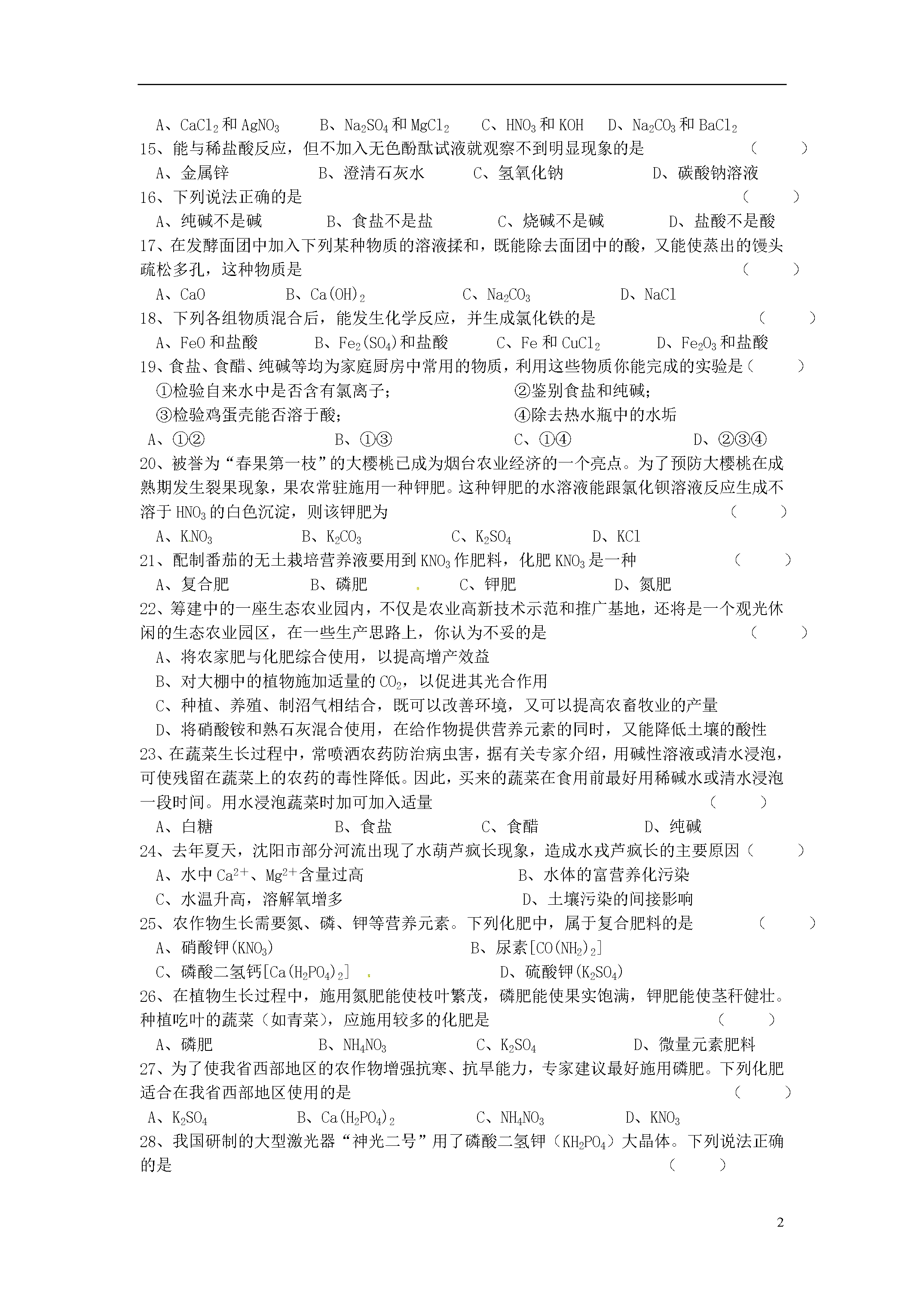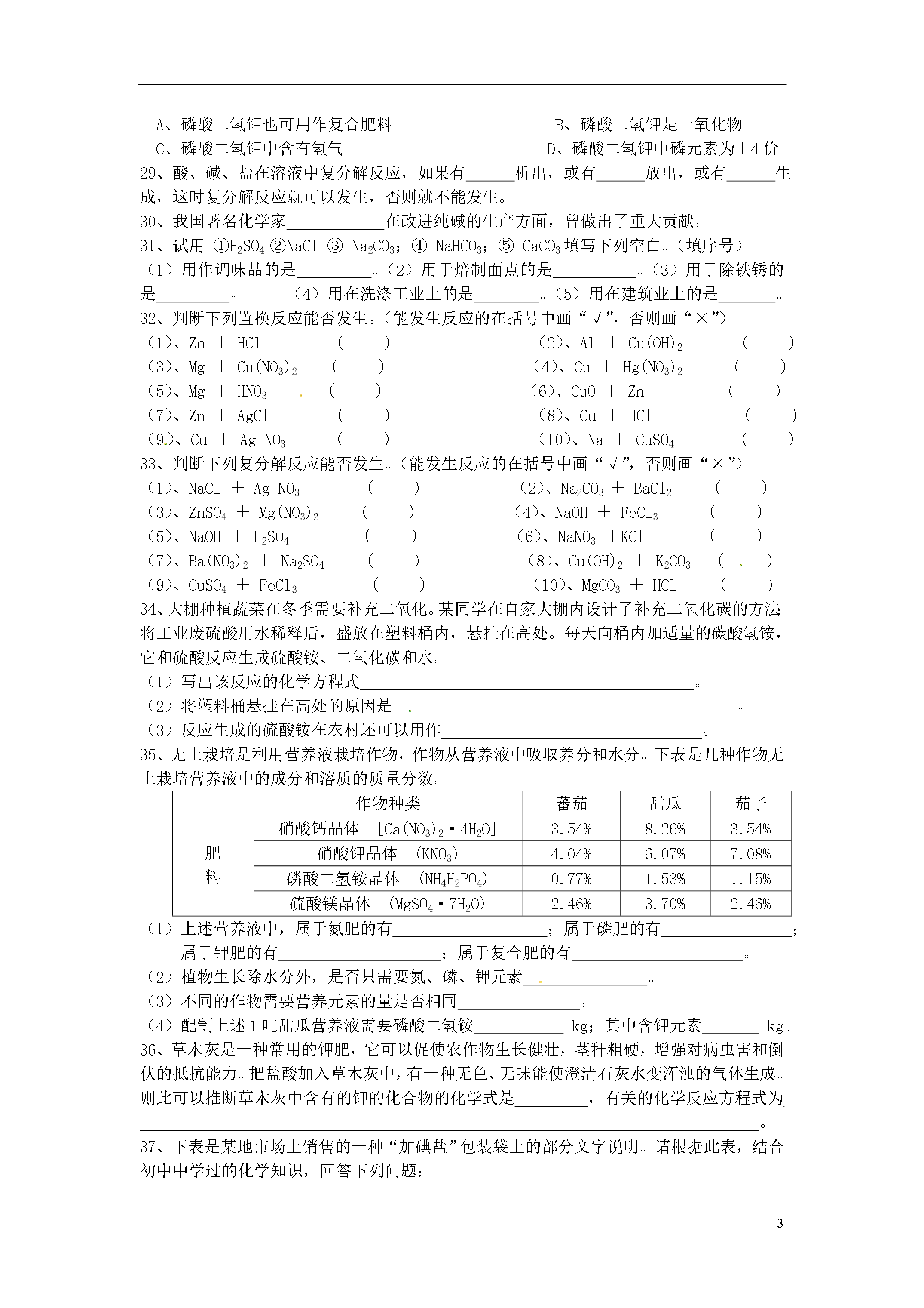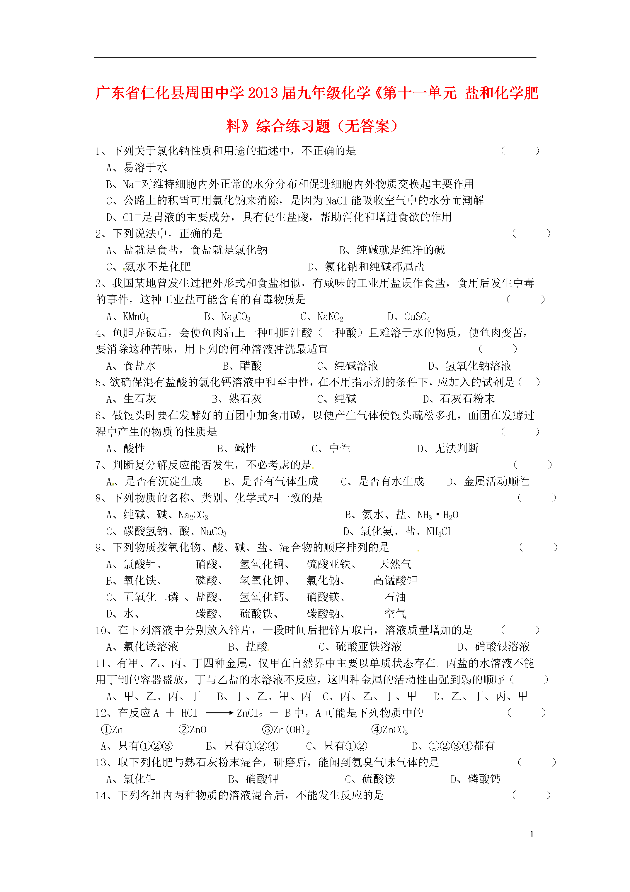 试题-广东-2013_广东省仁化县周田中学2013届九年级化学《第十一单元 盐和化学肥料》综合练习题(无答案).rar