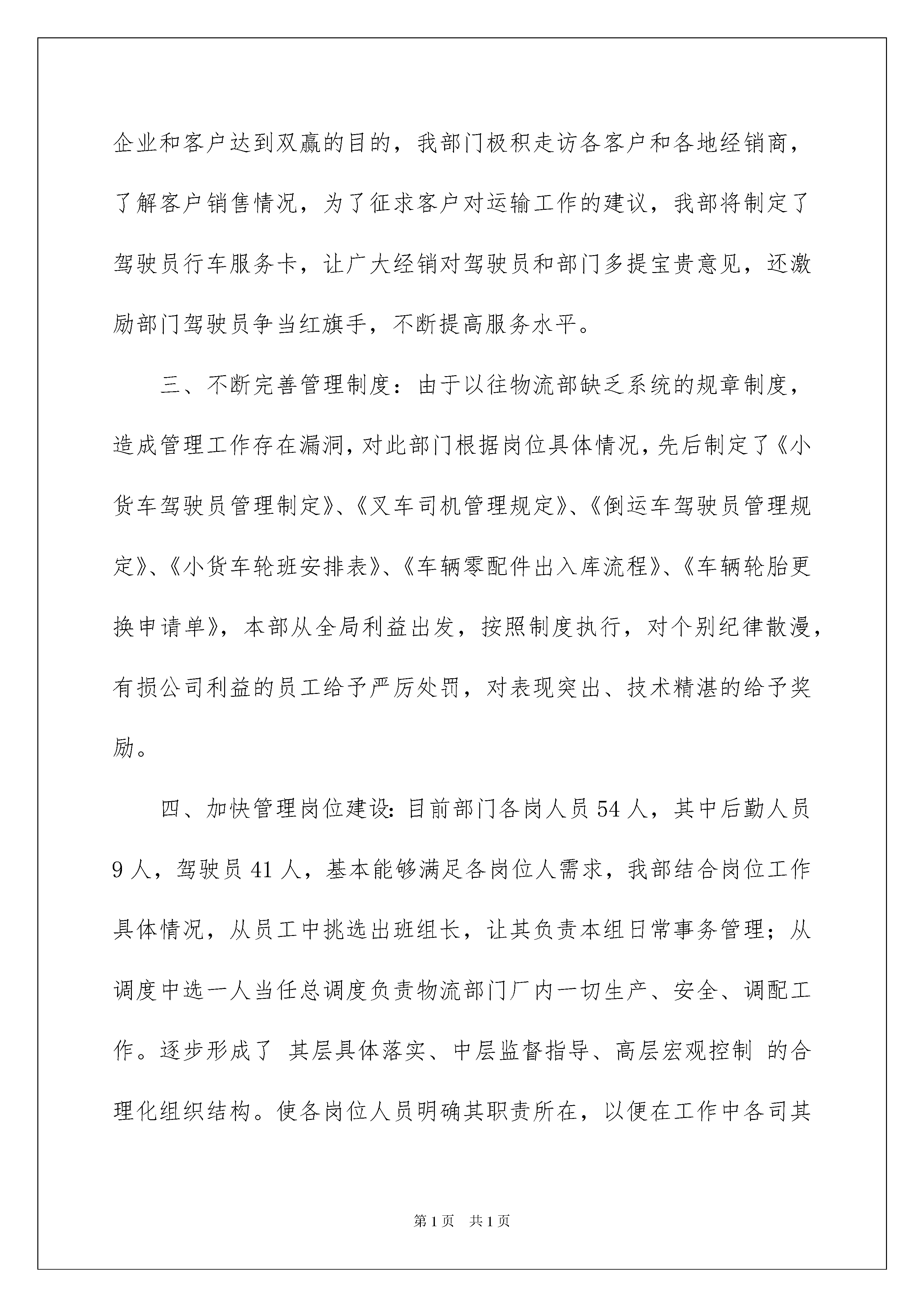 2022班组年度工作计划班组年度工作计划时间过得太快,让人猝不及防,我们的工作又进入新的阶段,为了今后更好的工作发展,此时此刻我们需要开始制定一个计划。那么计划怎么拟定才能发挥它最大的作用呢?下面是我帮大家整理的班组年度工作计划,欢迎阅读与收藏。班组年度工作计划1回顾XX年年走过的历程,不禁感概万千。展望未来,在20xx年的工作中,物流部将继往开来全体员工围绕着公司的发展。以中国名牌产品称号的获得为契机,努力奋斗,强化管理、深化改革、增创效益应做好以下几点方面工作:一、继续提高员工素质:我部门坚持组织学习《机动车驾驶员安全教育辅导》、《岗位培训》教材,使广大驾驶员热爱本职工作,在本职上精益上求精。提倡行车讲究语言美,礼让三先风格高的思想品质。二、加强部门服务水平:为了提高客户对物流配送的满意度,使企业和客户达到双赢的目的,我部门极积走访各客户和各地经销商,了解客户销售情况,为了征求客户对运输工作的建议,我部将制定了驾驶员行车服务卡,让广大经销对驾驶员和部门多提宝贵意见,还激励部门驾驶员争当红旗手,不断提高服务水平。三、不断完善管理制度:由于以往物流部缺乏系统的规章制度,造成管理工作存在漏洞,对此部门根据岗位具体情况,先后制定了《小货车驾驶员管理制定》、《叉车司机管理规定》、《倒运车驾驶员管理规定》、《小货车轮班安排表》、《车辆零配件出入库流程》、《车辆轮胎更换申请单》,本部从全局利益出发,按照制度执行,对个别纪律散漫,有损公司利益的员工给予严厉处罚,对表现突出、技术精湛的给予奖励。四、加快管理岗位建设:目前部门各岗人员54人,其中后勤人员9人,驾驶员41人,基本能够满足各岗位人需求,我部结合岗位工作具体情况,从员工中挑选出班组长,让其负责本组日常事务管理;从调度中选一人当任总调度负责物流部门厂内一切生产、安全、调配工作。逐步形成了其层具体落实、中层监督指导、高层宏观控制的合理化组织结构。使各岗位人员明确其职责所在,以便在工作中各司其职,各尽其责,继而争先创优。五、降低运营成本核算:为了降低运营成本,本部先后采取了一系列有效措施,随着成本率的提高,普通轮胎使用寿命过短,易破易爆,不仅费用较高,也给行车安全埋下隐患,经过市场摸底调查,货比三家,决定改用质量可靠,价格合理的佳通系列轮胎,并且签约定点守信合同,有力地控制驾驶员随意更换轮胎和附带件。同时对零配件也进行了货比三家,选购质价更为合理的零配件,一定程度上减少了运营成本,而高额的耗油费用直接影响了车辆的运营效益,因此建立自己的油库成了最佳的解决方案。班组年度工作计划2光阴似箭日如梭,转眼间半年已经过去。回顾我们保安队在扬州国际珠宝城半年来的工作,可以说是成绩多多,受益多多,体会多多,但存在的问题也不少。为了更好地做好今后的各项工作,根据领导的要求,现对半年来保安队工作总结如下:一是抓队伍建设。一支过硬的队伍是做好工作的重要保证,从保安队组建开始,我们在队伍建设上就坚持两手抓:一手抓人员的配备,一手抓素质的提高。在人员的配备上,我们从xx警官学校招聘了21名学生队员;同时,我们还注意从部队人中招聘优秀队员。通过半年的努力,我们团队的人数从当初的7个人,增加到现在的39人,是刚开始时的5倍之多。在队伍建设上,我们把相马、赛马、驯马、养马相结合。在多渠道引进队员的同时,高度重视队员综合素质的提高。凡新队员进来后,我们都要组织为期半个月的保安业务素质的训练。同时我们还专门邀请扬州市消防大队的专家,来为队员讲授消防方面的知识和技能,使队员都能尽快掌握各项基本的本领,达到上岗的要求。队员上岗后,我们还坚持每周2天的技能训练,风雨无阻,冷热不断,使队员的业务素质不断提高。半年来,我们保安队已成为一支拉得出,打得响,有较强执行力和战斗力,能出色完成任务的队伍。二是抓制度建设。工作的规范有序、卓有成效的关键是靠科学适用的制度作保证,不以规矩,不成方圆。团队组建后,我们对值班、交接班、学习、训练等方面都出台了一整套严格、实用的制度,对团队实行准军事化管理,用制度来规范大家的行为,用制度来保证工作任务的完成。如值班队员必须提前15分钟到岗进行交接;队员上下班都必须列队行进。三是抓思想建设。由于我们的队员来自不同的地方,不同的岗位,各人的综合素质、性格、爱好均不相同。更重要的是他们都刚20出头,血气方刚,这既是我们保安工作的需要,同时,也是我们在日常工作、生活中需要注意的。可塑性很大,但是可变性也很大。因此,我们在队伍建设工作中,要把思想道德建设贯穿始终,紧抓不放。在工作方法上,我们根椐不同队员,不同情况,灵活机动地在班会、业务会上插入思想教育的