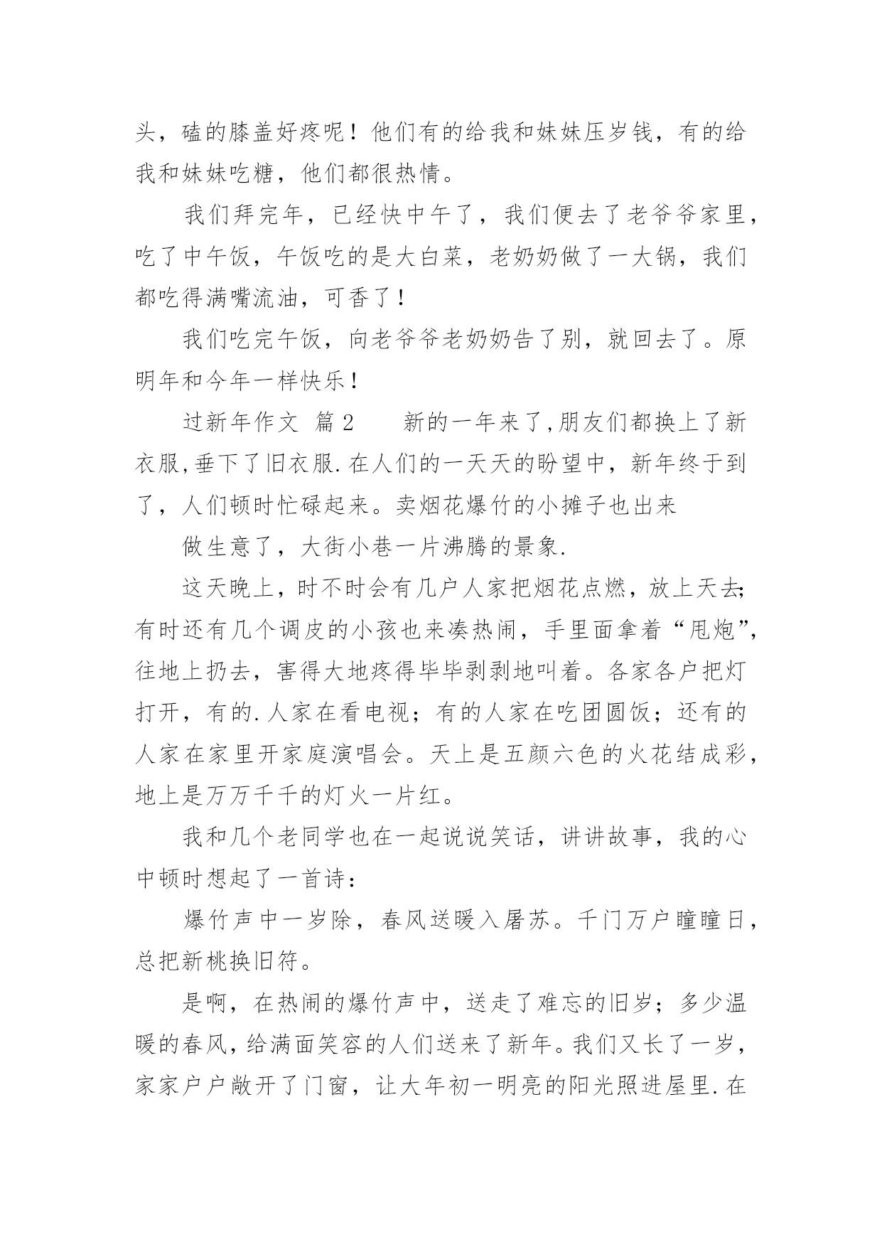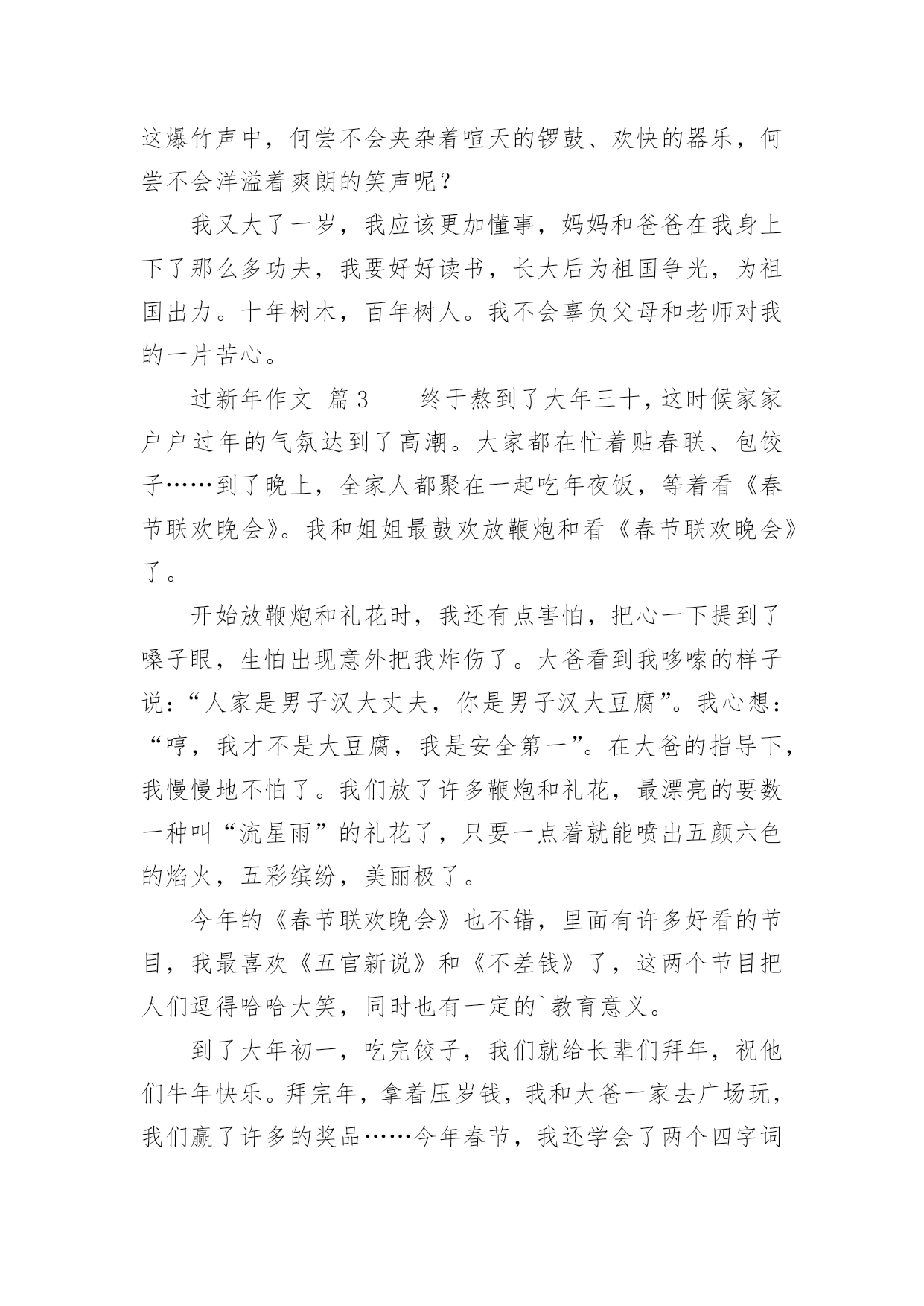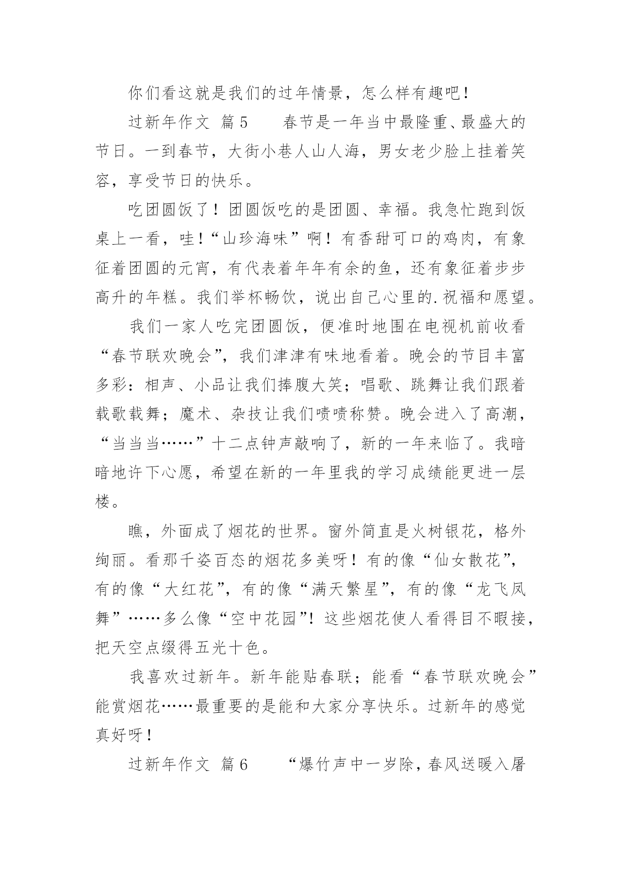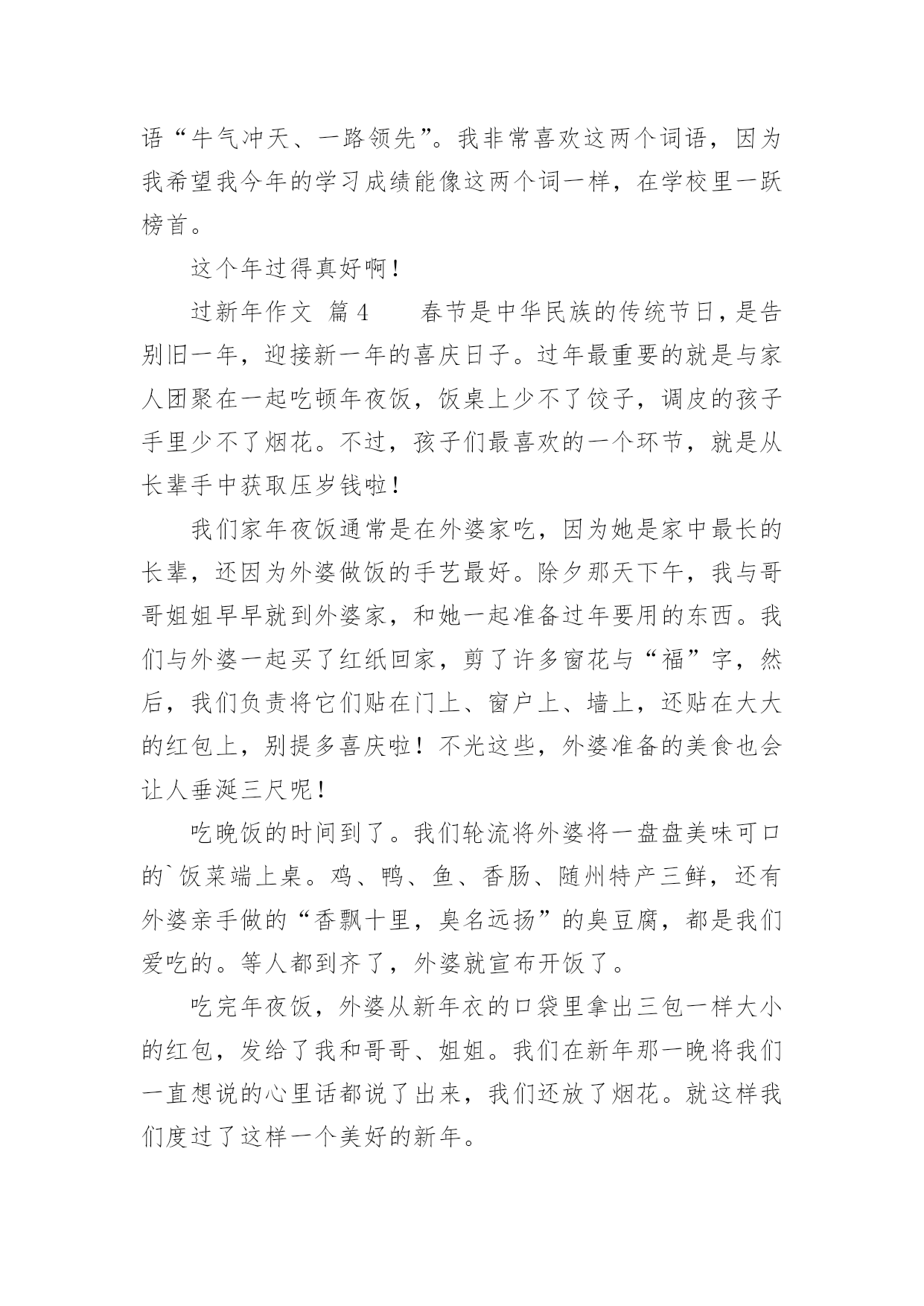 过新年作文 最新过新年作文450字(通用31篇)无论在学习、工作或是生活中,大家都经常看到作文的身影吧,根据写作命题的特点,作文可以分为命题作文和非命题作文。那么你知道一篇好的作文该怎么写吗?以下是小编为大家收集的最新过新年作文450字(通用31篇),欢迎大家借鉴与参考,希望对大家有所帮助。过新年作文篇1新的一年已经来临,咱们都又长大了一岁,应该更懂事了。过年咱们应该高兴一点,我们一家人过年是在老家农村丁庄过的年,好高兴呢!我们大年30那天晚上看春节联欢晚会看到很晚,快1点才睡得觉,好晚呢!虽然睡得很晚,但是,早上也不能起晚了,因为过年嘛!30早上,我们5点钟就起来了,我还是很困,哈欠连天阿!但是,我马上又精神了,因为,今天过年啊!我们早上吃的饺子,饺子是素陷的`,吃起来热别香!我们吃过早饭,就像老家出发了。在路上,我们谈笑风生,好高兴呢!到了老家,我们提着东西就往老爷爷家跑,老爷爷他们已经在等着我们了,我们进去,说着祝福的话,脸上荡漾着愉快的笑容。我们先坐了一会,然后,我们就跟着爷爷奶奶去别的人家拜年。我们一家一户的走,我们去年龄比较大的人家必须要磕头,磕的膝盖好疼呢!他们有的给我和妹妹压岁钱,有的给我和妹妹吃糖,他们都很热情。我们拜完年,已经快中午了,我们便去了老爷爷家里,吃了中午饭,午饭吃的是大白菜,老奶奶做了一大锅,我们都吃得满嘴流油,可香了!我们吃完午饭,向老爷爷老奶奶告了别,就回去了。原明年和今年一样快乐!过新年作文篇2新的一年来了,朋友们都换上了新衣服,垂下了旧衣服.在人们的一天天的盼望中,新年终于到了,人们顿时忙碌起来。卖烟花爆竹的小摊子也出来做生意了,大街小巷一片沸腾的景象.这天晚上,时不时会有几户人家把烟花点燃,放上天去;有时还有几个调皮的小孩也来凑热闹,手里面拿着“甩炮”,往地上扔去,害得大地疼得毕毕剥剥地叫着。各家各户把灯打开,有的.人家在看电视;有的人家在吃团圆饭;还有的人家在家里开家庭演唱会。天上是五颜六色的火花结成彩,地上是万万千千的灯火一片红。我和几个老同学也在一起说说笑话,讲讲故事,我的心中顿时想起了一首诗:爆竹声中一岁除,春风送暖入屠苏。千门万户瞳瞳日,总把新桃换旧符。是啊,在热闹的爆竹声中,送走了难忘的旧岁;多少温暖的春风,给满面笑容的人们送来了新年。我们又长了一岁,家家户户敞开了门窗,让大年初一明亮的阳光照进屋里.在这爆竹声中,何尝不会夹杂着喧天的锣鼓、欢快的器乐,何尝不会洋溢着爽朗的笑声呢?我又大了一岁,我应该更加懂事,妈妈和爸爸在我身上下了那么多功夫,我要好好读书,长大后为祖国争光,为祖国出力。十年树木,百年树人。我不会辜负父母和老师对我的一片苦心。过新年作文篇3终于熬到了大年三十,这时候家家户户过年的气氛达到了高潮。大家都在忙着贴春联、包饺子……到了晚上,全家人都聚在一起吃年夜饭,等着看《春节联欢晚会》。我和姐姐最鼓欢放鞭炮和看《春节联欢晚会》了。开始放鞭炮和礼花时,我还有点害怕,把心一下提到了嗓子眼,生怕出现意外把我炸伤了。大爸看到我哆嗦的样子说:“人家是男子汉大丈夫,你是男子汉大豆腐”。我心想:“哼,我才不是大豆腐,我是安全第一”。在大爸的指导下,我慢慢地不怕了。我们放了许多鞭炮和礼花,最漂亮的要数一种叫“流星雨”的礼花了,只要一点着就能喷出五颜六色的焰火,五彩缤纷,美丽极了。今年的《春节联欢晚会》也不错,里面有许多好看的节目,我最喜欢《五官新说》和《不差钱》了,这两个节目把人们逗得哈哈大笑,同时也有一定的`教育意义。到了大年初一,吃完饺子,我们就给长辈们拜年,祝他们牛年快乐。拜完年,拿着压岁钱,我和大爸一家去广场玩,我们赢了许多的奖品……今年春节,我还学会了两个四字词语“牛气冲天、一路领先”。我非常喜欢这两个词语,因为我希望我今年的学习成绩能像这两个词一样,在学校里一跃榜首。这个年过得真好啊!过新年作文篇4春节是中华民族的传统节日,是告别旧一年,迎接新一年的喜庆日子。过年最重要的就是与家人团聚在一起吃顿年夜饭,饭桌上少不了饺子,调皮的孩子手里少不了烟花。不过,孩子们最喜欢的一个环节,就是从长辈手中获取压岁钱啦!我们家年夜饭通常是在外婆家吃,因为她是家中最长的长辈,还因为外婆做饭的手艺最好。除夕那天下午,我与哥哥姐姐早早就到外婆家,和她一起准备过年要用的东西。我们与外婆一起买了红纸回家,剪了许多窗花与“福”字,然后,我们负责将它们贴在门上、窗户上、墙上,还贴在大大的红包上,别提多喜庆啦!不光这些,外婆准备的美食也会让人垂涎三尺呢!吃晚饭的时间到了。我们轮流将外婆将一盘盘美味可口的`饭菜端上桌。鸡、鸭、鱼、香肠、随州特产三鲜,还有外婆亲手做的“香飘十里,臭名远扬”的臭豆腐,都是我们爱吃的。等人都到齐了,外婆就宣布开饭了。吃完年夜饭,外婆从新年衣的口袋里拿出三包一样大小的红包,发