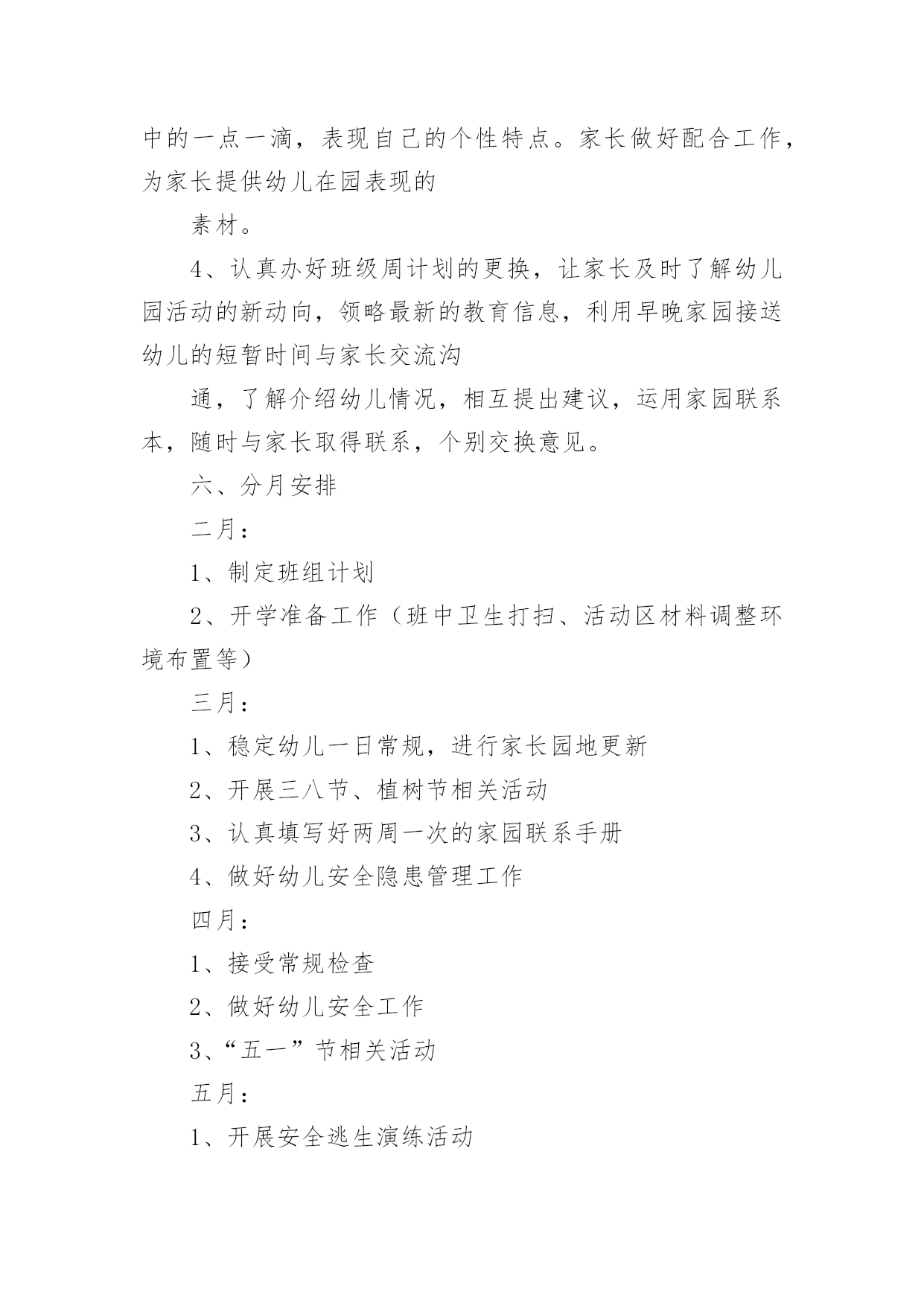 托班第二学期教学计划 托班第二学期教学计划日子如同白驹过隙,不经意间,我们又将迎来新的喜悦、新的收获,让我们对今后的工作做个计划吧。那么计划怎么拟定才能发挥它最大的作用呢?下面是小编精心整理的托班第二学期教学计划,希望能够帮助到大家。托班第二学期教学计划1一、班级情况分析:本学期我班共有20个幼儿左右。本班幼儿通过了上一学期的集体生活,大部分幼儿情绪都较稳定,但也有个别孩子尤其是新入园的幼儿,他们情绪的冲动和不稳定性仍非常突出。年龄比较小,自控能力差,和同伴交往时,经常出现攻击性行为。在本学期,要更加关注他们与同伴友好地相处,引导他们愿意与同伴分享,不再以自我为中心。二、教育教学总目标根据《纲要》的精神,结合本班幼儿的实际情况及年龄特点,采取多种形式,有机地渗透在一日活动各个环节中,尊重托班幼儿身心发展规律,合理地安排好幼儿的一日活动,并做到养中有教、教中有养、注重个体差异,培养幼儿参加各类活动的兴趣,发展其基本动作,培养良好的生活习惯;继续发展幼儿的认识能力和口语表达能力,提高幼儿各方面的能力。帮助每个孩子顺利地适应集体生活,为每个孩子提供充分表现其发展水平和特点的机会,观察、了解每位孩子各方面的发展情况,促进孩子身心和谐地发展。三、具体目标:(一)健康:(1)逐渐适应集体生活,对幼儿园生活有安全感。(2)愿意参加多种活动,情绪稳定、快乐。(3)有初步的进餐、睡眠、盥洗、排泄等生活习惯。(4)能接受健康检查。(5)在日常生活中,能根据成人的提醒注意安全。(6)愿意参加体育活动。(二)语言(1)愿意与老师、同伴交谈,会使用常用的礼貌用语。(2)能安静地倾听成人和同伴讲话,能理解日常用语。(3)能用简短的语言回答问题,表达自己的要求和想法。(4)喜欢听故事、念儿歌、爱看图书。(5)能听懂普通话。(三)社会(1)逐步适应新的生活环境,乐意参加集体活动。(2)愿意和老师、同伴交往。(3)了解幼儿园一日生活中最基本的规则,并学习遵守。(4)爱父母、长辈、老师和同伴。(四)科学:(1)对周围的事物、现象有兴趣和好奇心,愿意参加科学活动。(2)学习运用感官感知日常生活中的事物和现象。(3)学习用语言、动作表达探索过程。(4)对生活和游戏中事物的数量、形状等有兴趣。(五)艺术:(1)对环境、生活和艺术中的美有兴趣。(2)愿意参加艺术活动。(3)能学习用一些简单方法进行艺术表现活动。(六)游戏:(1)给幼儿创造游戏条件,增强幼儿游戏的兴趣。(2)充分发挥幼儿的主体作用,培养幼儿健康活泼的性格,形成幼儿健康、开朗、活泼但又有较强规则意识的特征。(3)提高幼儿进行游戏的安全意识,培养幼儿愿意和伙伴共同体验游戏的乐趣。四、具体措施l、体育活动:保证幼儿集体与个别活动相结合的原则,针对幼儿年龄特点,开展丰富地、促进幼儿动作全面发展的体育游戏,培养幼儿参加体育活动的兴趣。全面发展幼儿走、跑、跳、攀爬、投掷等动作。针对体质弱,年龄小的孩子,有针对性地发展其动作,鼓励他们勇敢地完成每个游戏任务,完成每一个动作要领,培养孩子的自信心,坚强的意志。2、教学活动:根据本班幼儿年龄和发展水平、兴趣特征,开展有目的、有准备的教学活动,为幼儿提供丰富、多样的操作环境,为幼儿提供充足地操作、锻炼的机会,在活动中坚持以幼儿为主体,让幼儿能充分运用多种感官适应周围事物,充分调动起幼儿的主动性、积极性,使幼儿在玩中学,在学中玩,逐步培养幼儿养成良好的学习习惯。4、保育工作:每天保证幼儿充足的饮水,教会幼儿口渴了及时饮水,督促幼儿养成早睡早起、按时入园的良好习惯,教给幼儿一些简单的自我保护方法。对幼儿进行饮食、午睡、盥洗、大小便、散步等一日活动中各个环节的常规培养,并以鼓励、表扬形式培养幼儿良好的生活习惯,做好春季传染病的'预防工作,保持室内外空气流通,每天坚持对幼儿的生活用品进行消毒,及时地帮助幼儿增减衣服,帮助幼儿逐步学会自己吃饭,并不断提高幼儿的生活自理能力。五、家长工作1、家长是孩子的第一任老师,家长的一言一行对孩子都会产生影响,因此重视家长工作是十分必要的。开学初对新生及体弱儿,充分与家长进行了解以及沟通,共同商讨孩子的教育问题,促进家园教育,并和家长一起同步前进。2、提出家长配合事项,听取家长意见和建议,以便班级保教工作的改进。3、老师为孩子制定“幼儿家园联系手”。记录幼儿日常中的一点一滴,表现自己的个性特点。家长做好配合工作,为家长提供幼儿在园表现的素材。4、认真办好班级周计划的更换,让家长及时了解幼儿园活动的新动向,领略最新的教育信息,利用早晚家园接送幼儿的短暂时间与家长交流沟通,了解介绍幼儿情况,相互提出建议,运用家园联系本,随时与家长取得联系,个别交换意见。六、分月安排二月:1、制定班组计划2、开学准备工作(班中卫生打扫、活动区材料调整环境布置等)三月:1