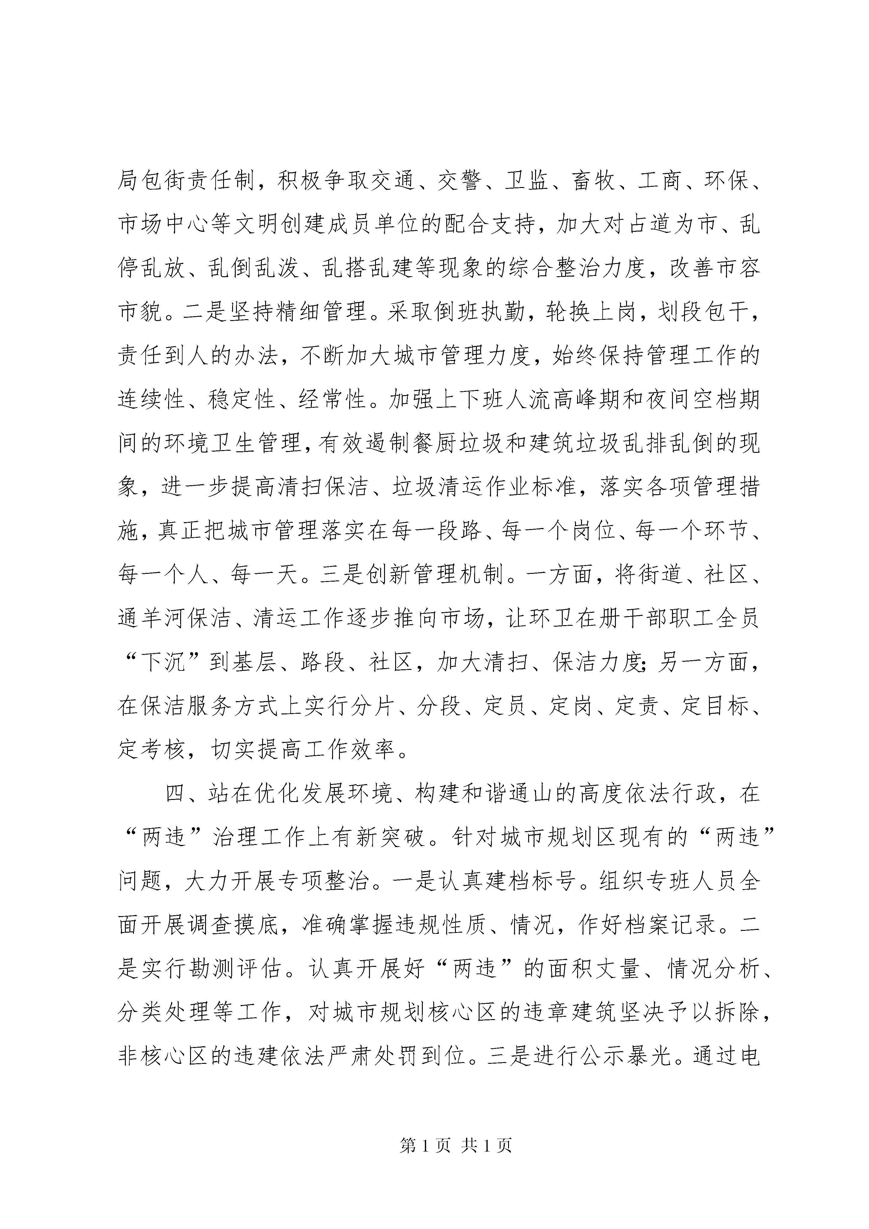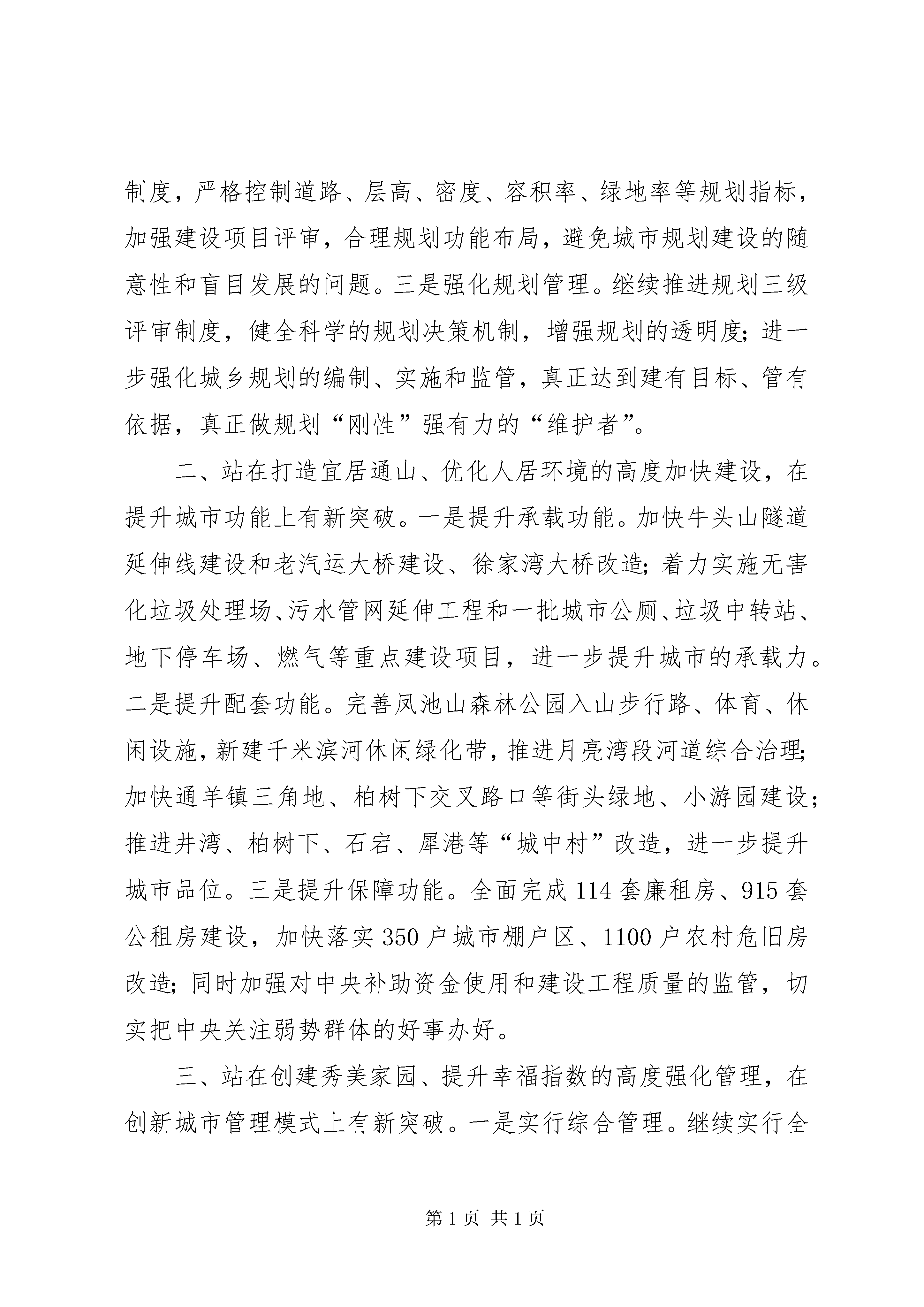 县住建局贯彻落实县委工作会议精神情况汇报我局2月3日迅速召开了局党组会议,认真传达学习了杜书记的重要讲话和胡县长关于贯彻落实县委工作会议精神。就如何建设“六型通山”,结合住建局工作实际,进行了认真讨论。局长朱新华对2012年工作进行了全面的部署安排。2012年,住建局将紧紧围绕“喜迎十八大,争创新业绩”主题实践活动这条工作主线,坚持自身建设和城市发展两手抓,突出规划、建设、管理三个工作重点,力争实现在编制咸宁次中心城市规划体系上有新突破,在提升城市功能上有新突破,在创新城市管理模式上有新突破,在“两违”治理工作上有新突破。一、站在融入武汉城市圈、打造咸宁次中心城市的高度谋远创新,在完善规划体系上有新突破。一是加快规划修编。着力抓好城市总体规划(XX县区用地规模为30平方公里,XX县区人口20万人,规划期限2012—2030年)、近期建设规划、XX县区控制性详规、城镇体系规划修编;抓好绕城路、通南工业走廊、百里新型城镇带“三线”控制;加快完成通羊河整治、综合交通、绿地系统、街道立面改造等专项规划;指导完成南林、大路、闯王、杨芳、洪港5个乡镇的总体规划和控制性详规,完成汪家畈、沙堤、官塘3个宜居村庄和15个中心村规划,促进总体与分区、建设与土地、产业与生态等各类规划相互衔接,促进城乡协调持续发展。二是提高规划质量。严格贯彻执行城市规划“一书两证”制度,严格控制道路、层高、密度、容积率、绿地率等规划指标,加强建设项目评审,合理规划功能布局,避免城市规划建设的随意性和盲目发展的问题。三是强化规划管理。继续推进规划三级评审制度,健全科学的规划决策机制,增强规划的透明度;进一步强化城乡规划的编制、实施和监管,真正达到建有目标、管有依据,真正做规划“刚性”强有力的“维护者”。二、站在打造宜居通山、优化人居环境的高度加快建设,在提升城市功能上有新突破。一是提升承载功能。加快牛头山隧道延伸线建设和老汽运大桥建设、徐家湾大桥改造;着力实施无害化垃圾处理场、污水管网延伸工程和一批城市公厕、垃圾中转站、地下停车场、燃气等重点建设项目,进一步提升城市的承载力。二是提升配套功能。完善凤池山森林公园入山步行路、体育、休闲设施,新建千米滨河休闲绿化带,推进月亮湾段河道综合治理;加快通羊镇三角地、柏树下交叉路口等街头绿地、小游园建设;推进井湾、柏树下、石宕、犀港等“城中村”改造,进一步提升城市品位。三是提升保障功能。全面完成114套廉租房、915套公租房建设,加快落实350户城市棚户区、1100户农村危旧房改造;同时加强对中央补助资金使用和建设工程质量的监管,切实把中央关注弱势群体的好事办好。三、站在创建秀美家园、提升幸福指数的高度强化管理,在创新城市管理模式上有新突破。一是实行综合管理。继续实行全局包街责任制,积极争取交通、交警、卫监、畜牧、工商、环保、市场中心等文明创建成员单位的配合支持,加大对占道为市、乱停乱放、乱倒乱泼、乱搭乱建等现象的综合整治力度,改善市容市貌。二是坚持精细管理。采取倒班执勤,轮换上岗,划段包干,责任到人的办法,不断加大城市管理力度,始终保持管理工作的连续性、稳定性、经常性。加强上下班人流高峰期和夜间空档期间的环境卫生管理,有效遏制餐厨垃圾和建筑垃圾乱排乱倒的现象,进一步提高清扫保洁、垃圾清运作业标准,落实各项管理措施,真正把城市管理落实在每一段路、每一个岗位、每一个环节、每一个人、每一天。三是创新管理机制。一方面,将街道、社区、通羊河保洁、清运工作逐步推向市场,让环卫在册干部职工全员“下沉”到基层、路段、社区,加大清扫、保洁力度;另一方面,在保洁服务方式上实行分片、分段、定员、定岗、定责、定目标、定考核,切实提高工作效率。四、站在优化发展环境、构建和谐通山的高度依法行政,在“两违”治理工作上有新突破。针对城市规划区现有的“两违”问题,大力开展专项整治。一是认真建档标号。组织专班人员全面开展调查摸底,准确掌握违规性质、情况,作好档案记录。二是实行勘测评估。认真开展好“两违”的面积丈量、情况分析、分类处理等工作,对城市规划核心区的违章建筑坚决予以拆除,非核心区的违建依法严肃处罚到位。三是进行公示暴光。通过电视、报纸、网络等媒介,加大规划宣传教育力度,提高公众参与、支持意识;同时对清理出来的“两违”户予以暴光,强化社会监督,维护规划的严肃性、权威性。四是严格依法处罚。对“两违”问题进行“消号”处理,做到不错过、不放过、不手软,坚持拆除违章建筑、依法追缴规费和严肃处罚等多措齐下,努力做到零发生、“决不下为例”和“斩立决”。