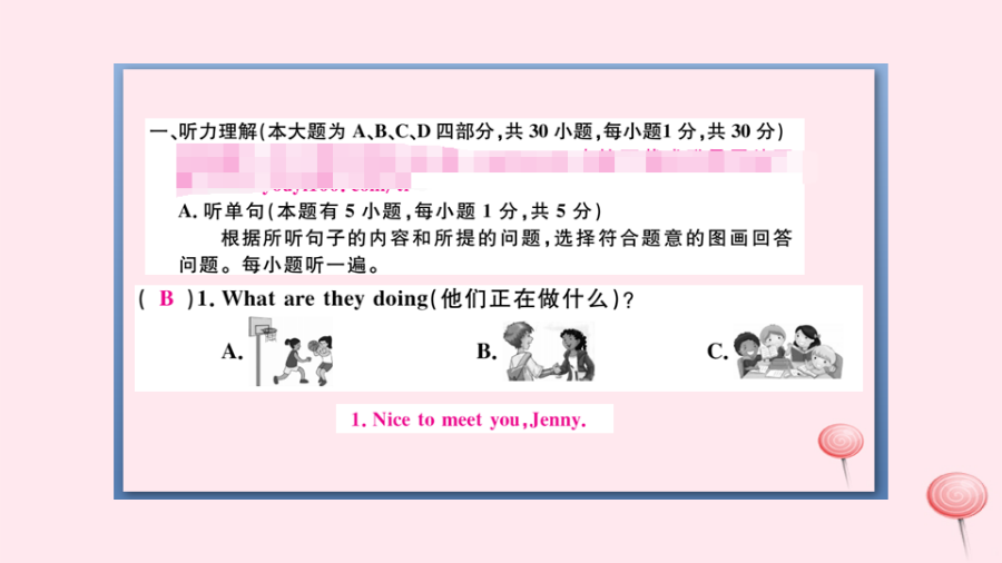 (广东专级英语上册 Unit 1 My name's Gina单元仿真模拟卷课件(新版)人教新目标版-(新版)人教新目标级上册英语课件.pptx