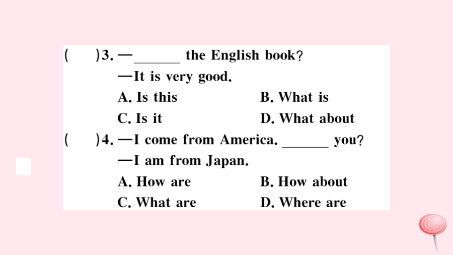 (广东专级英语上册 Unit 3 Is this your pencil第一课时习题课件(新版)人教新目标版-(新版)人教新目标级上册英语课件.pptx