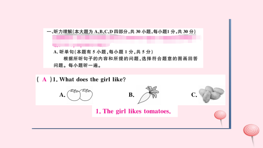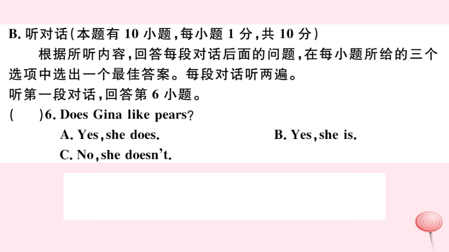(广东专级英语上册 Unit 6 Do you like bananas单元仿真模拟卷课件(新版)人教新目标版-(新版)人教新目标级上册英语课件.pptx