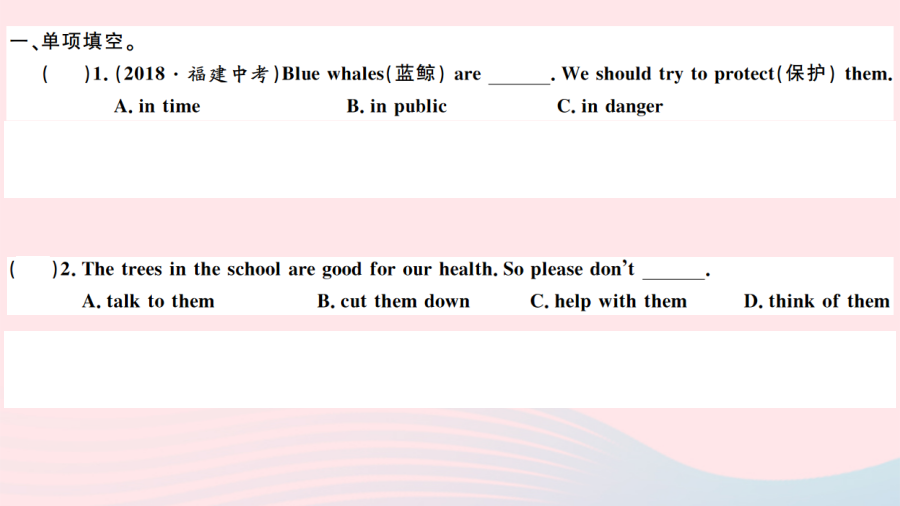 (广东专级英语下册 Unit 5 Why do you like pandas第四课时习题课件(新版)人教新目标版-(新版)人教新目标级下册英语课件.ppt