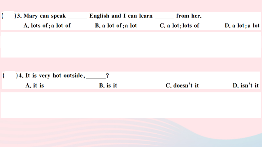 (广东专级英语下册 Unit 7 It’s raining第四课时习题课件(新版)人教新目标版-(新版)人教新目标级下册英语课件.ppt