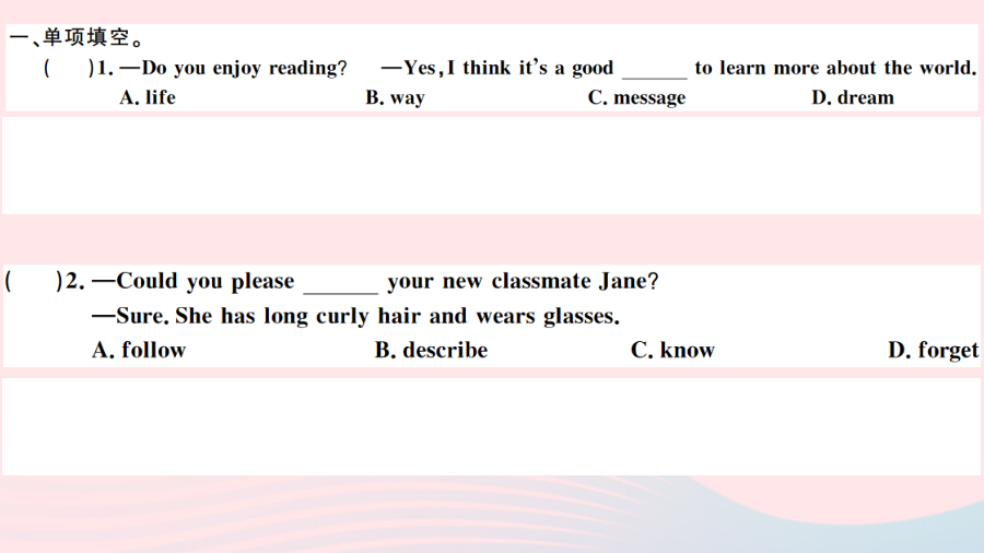 (广东专级英语下册 Unit 9 What does he look like第四课时习题课件(新版)人教新目标版-(新版)人教新目标级下册英语课件.ppt